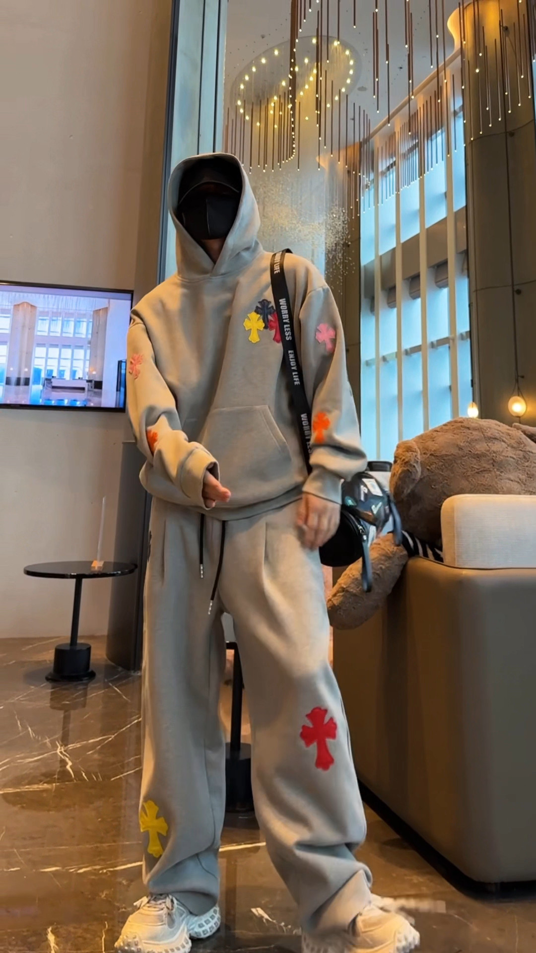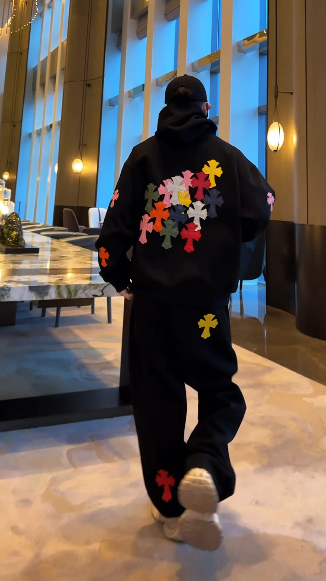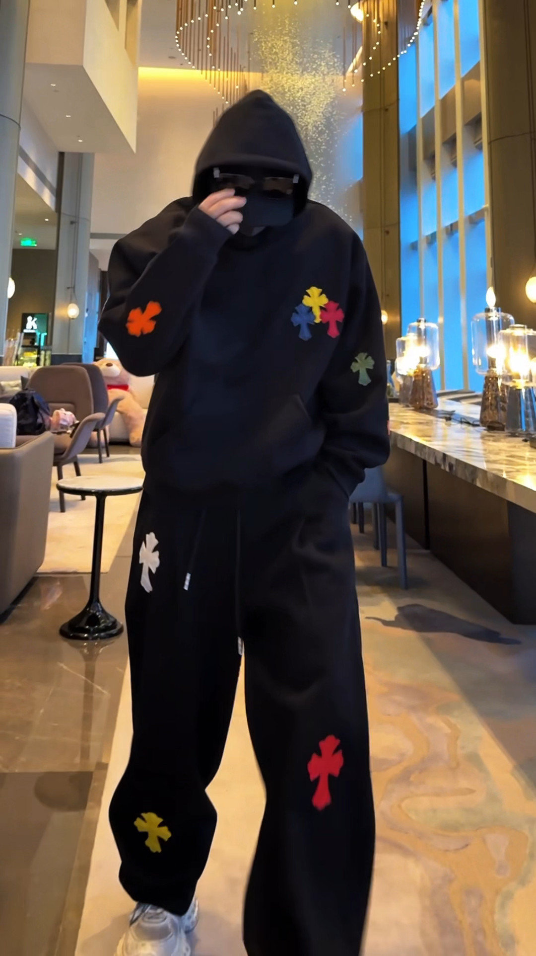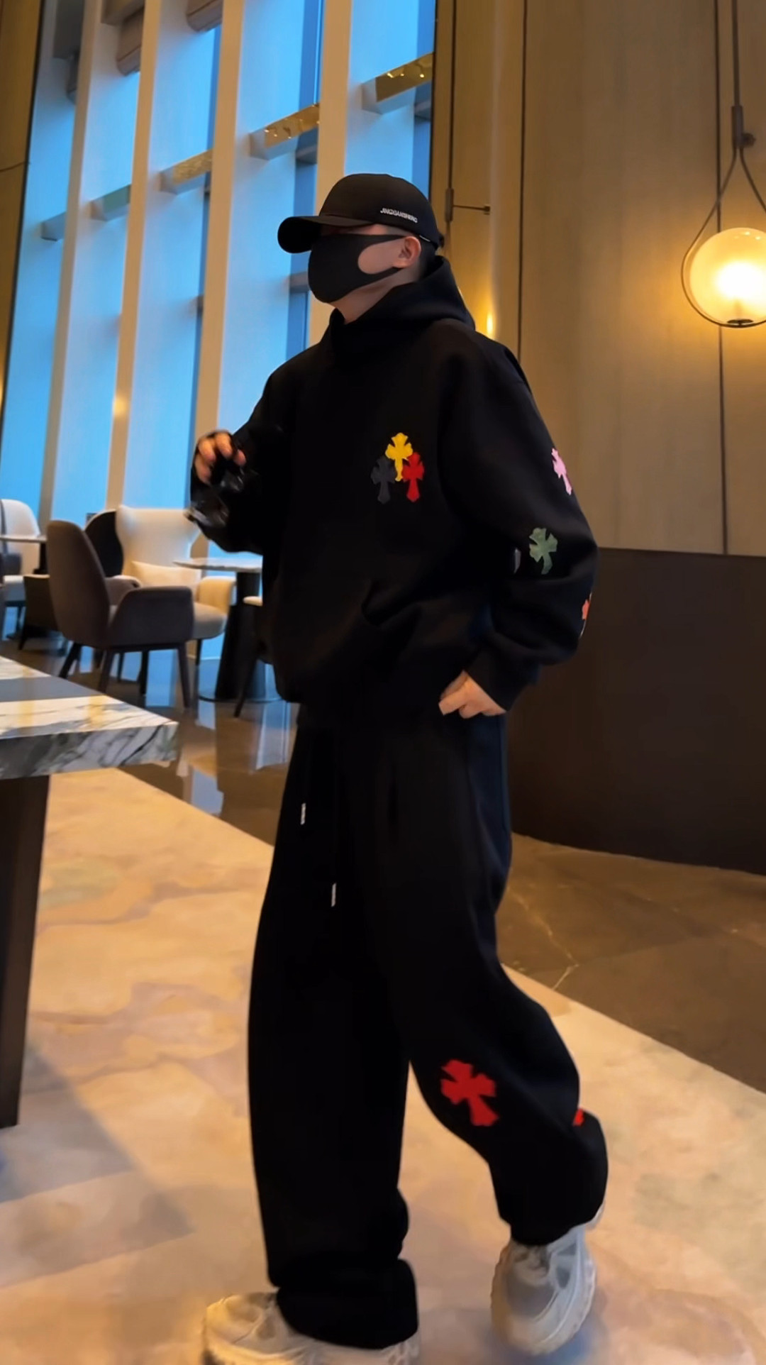 Colorful Cross Casual Suit, New Autumn Men's American Trendy High Street Style Personalized Hooded Sweatshirt and Sweatpants