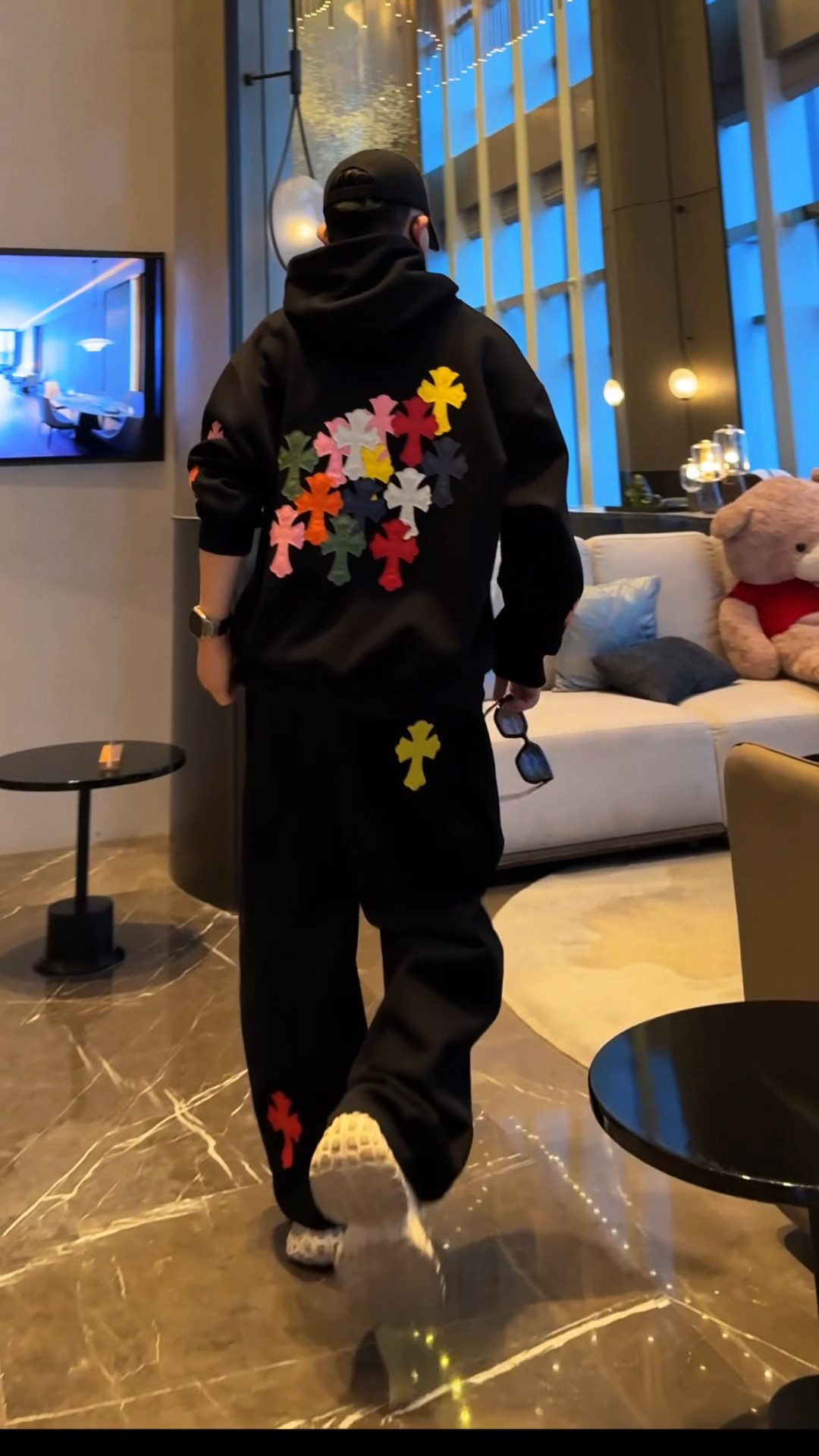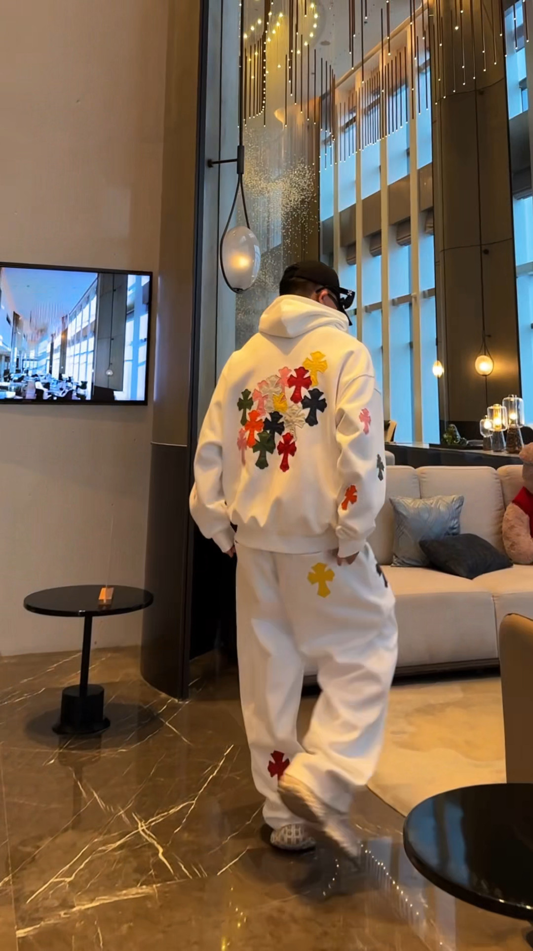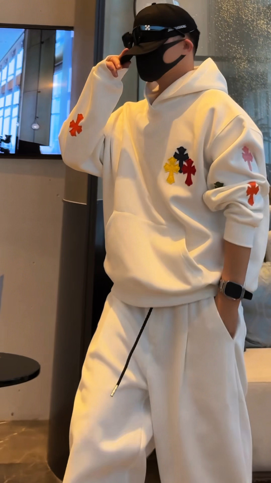 Colorful Cross Casual Suit, New Autumn Men's American Trendy High Street Style Personalized Hooded Sweatshirt and Sweatpants