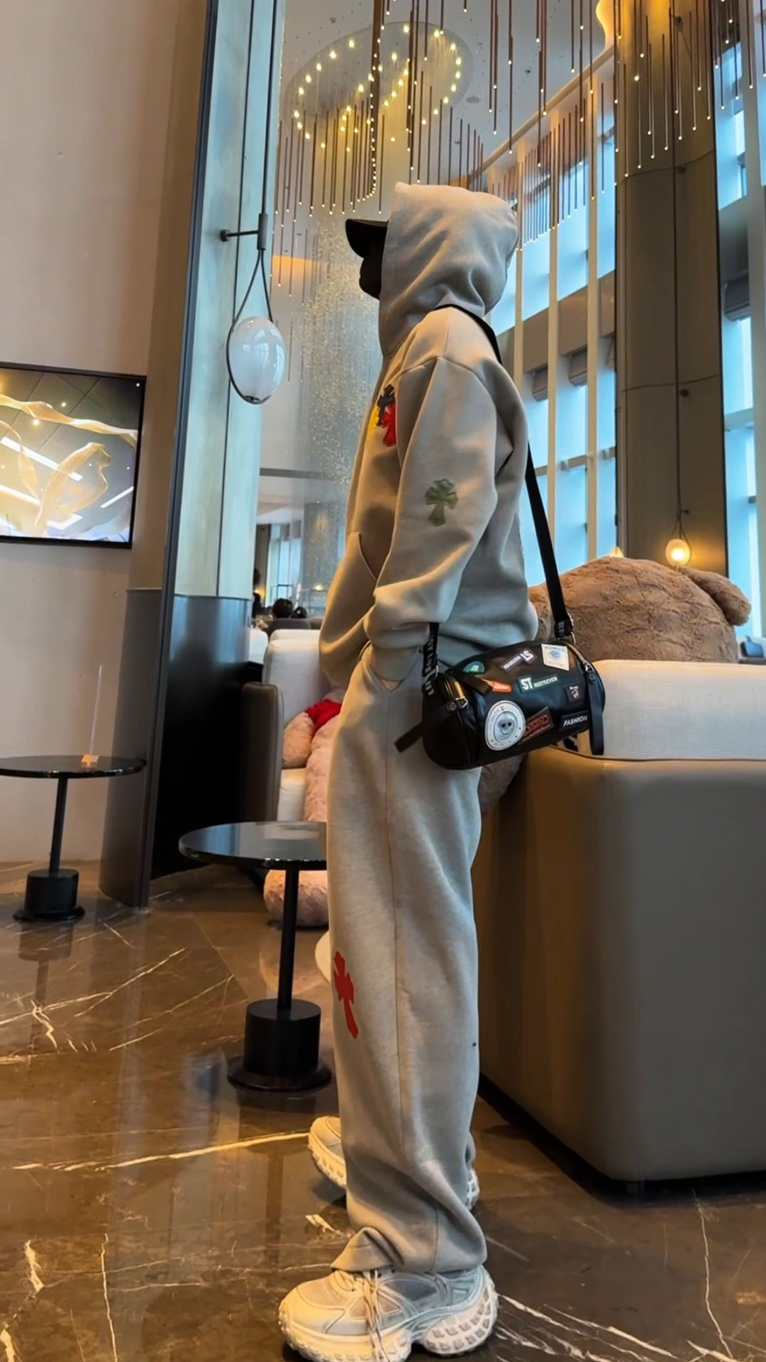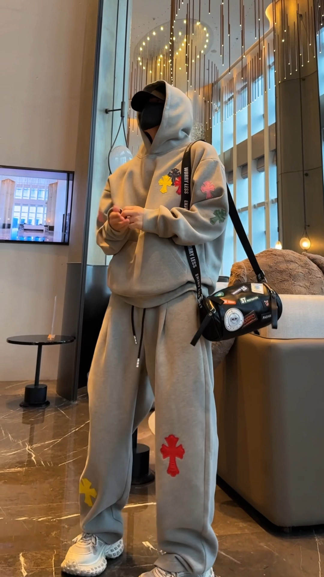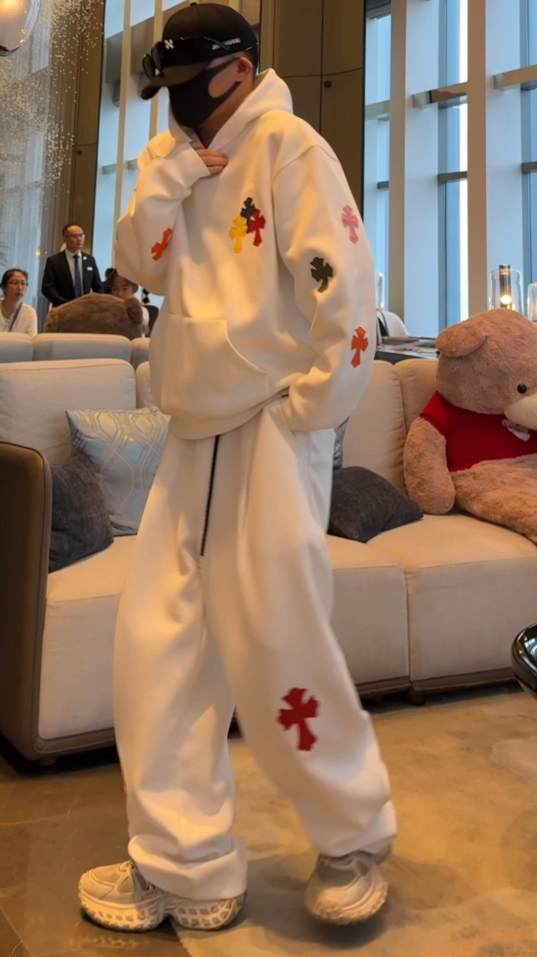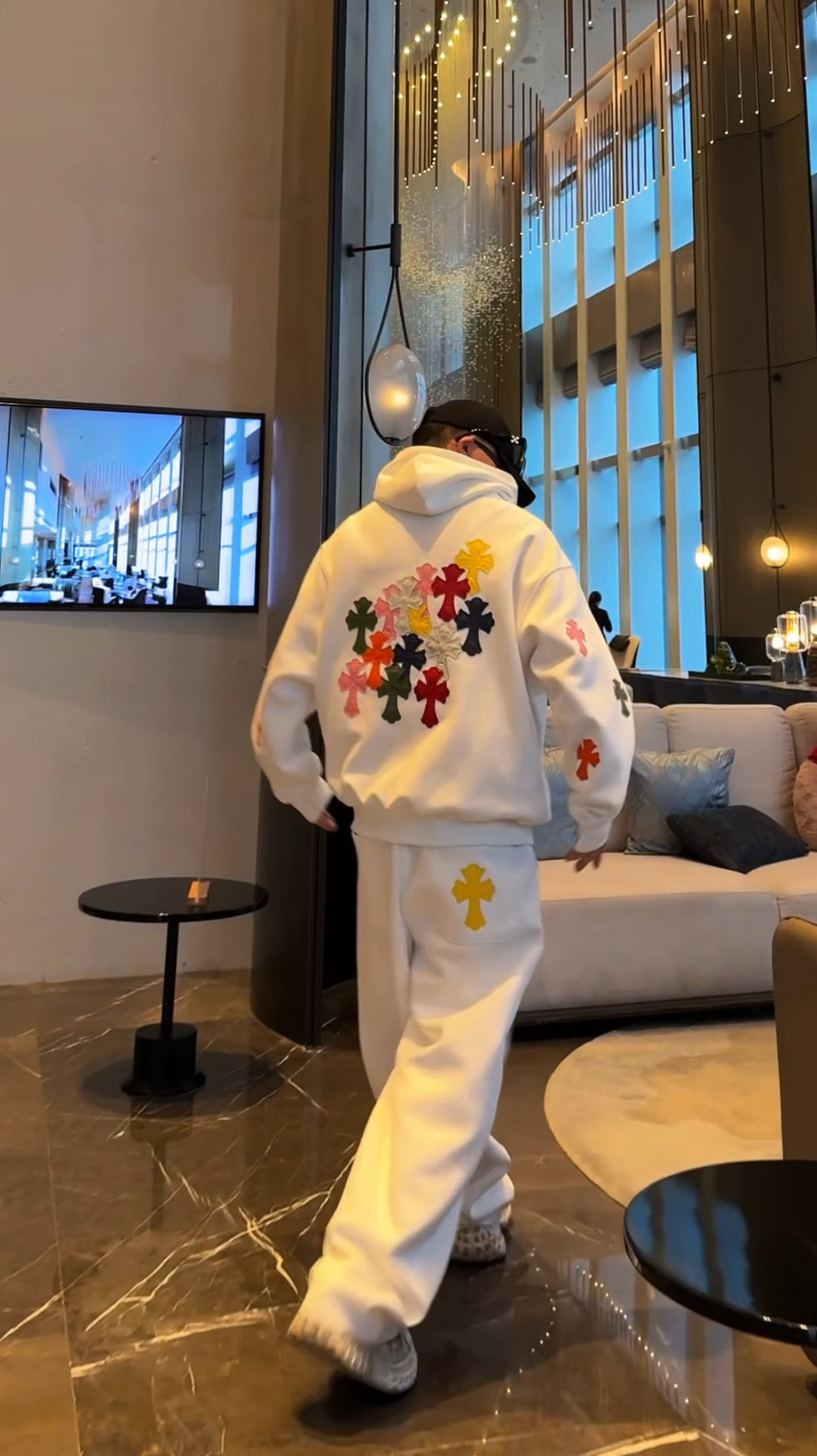 Colorful Cross Casual Suit, New Autumn Men's American Trendy High Street Style Personalized Hooded Sweatshirt and Sweatpants