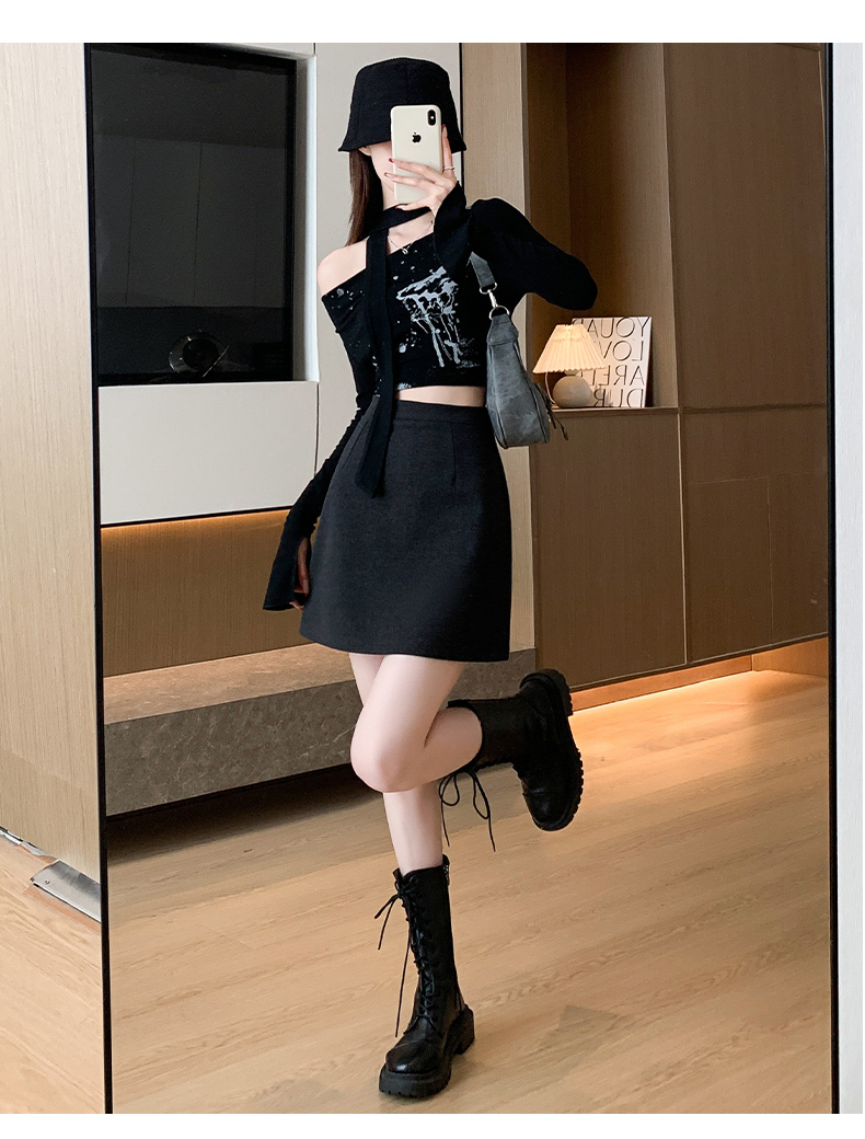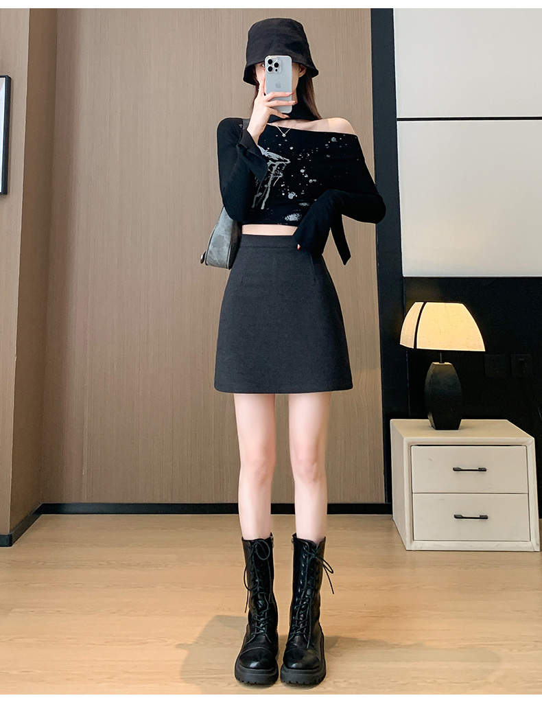 Brown Woolen Short Skirt for Women, Autumn and Winter 2025 New Style, High-Waisted, Slimming, Tight-Fitting, Hip-Hugging Skirt, Petite A-Line Skirt