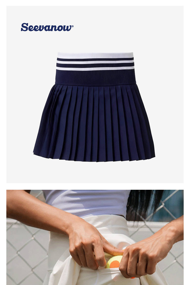 Seevanow Quick-Drying Tennis Skirt for Women with Pockets, Anti-Exposure, Suitable for Badminton, Outdoor Running, Sports Pleated Short Skirt Pants