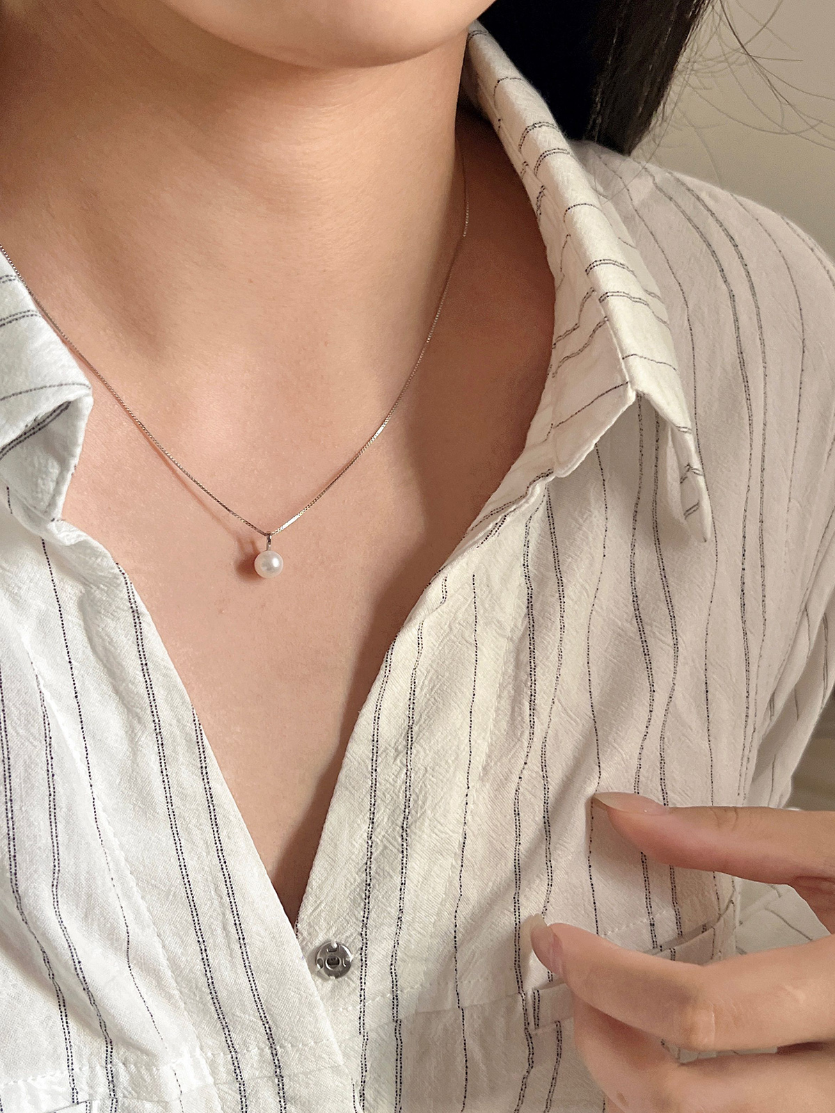 Pangbai Single Natural Freshwater Pearl S925 Sterling Silver Necklace Minimalist Versatile Collarbone Chain Gift for Girls
