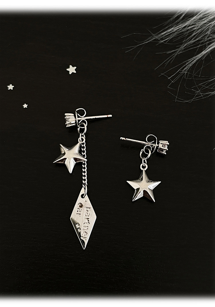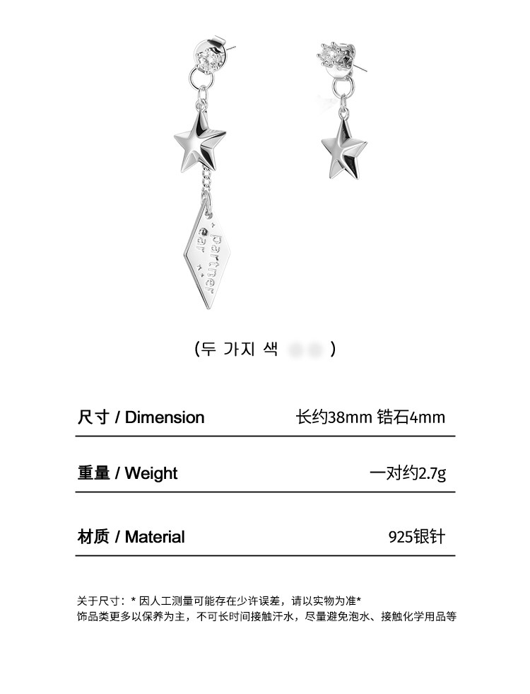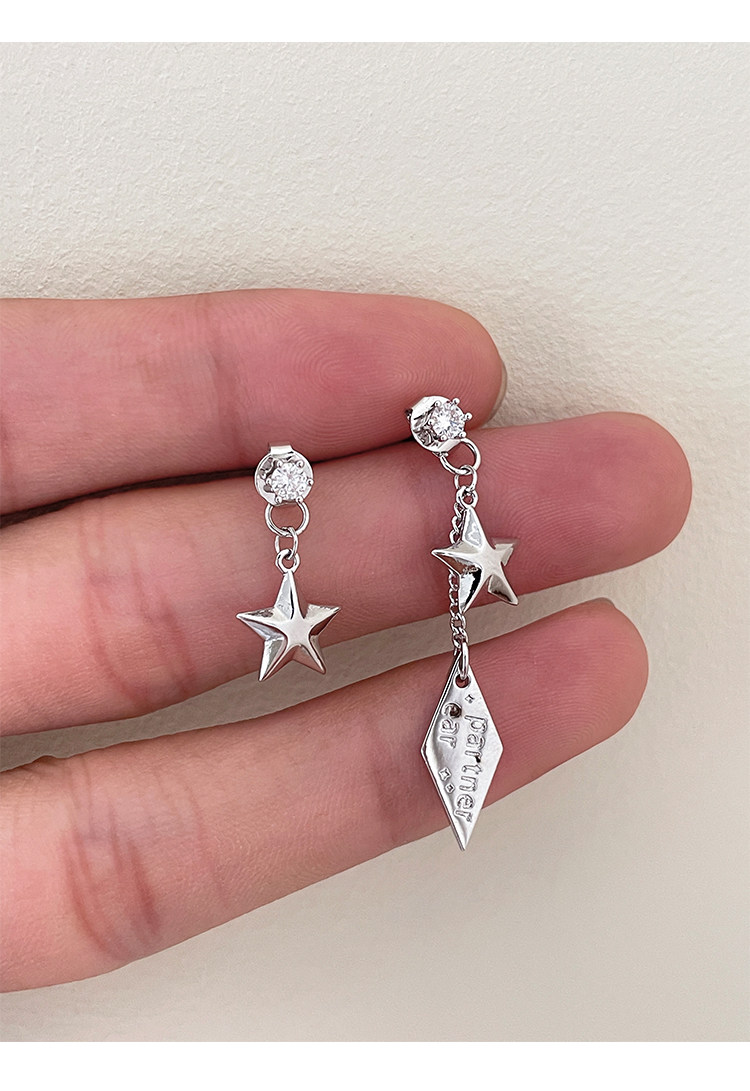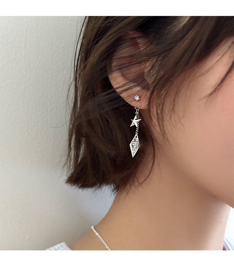 Asymmetrical Star Earrings for Women, Niche Design, Tassel, Light Luxury, Elegant, High-End Feel, 925 Sterling Silver Needle Earrings