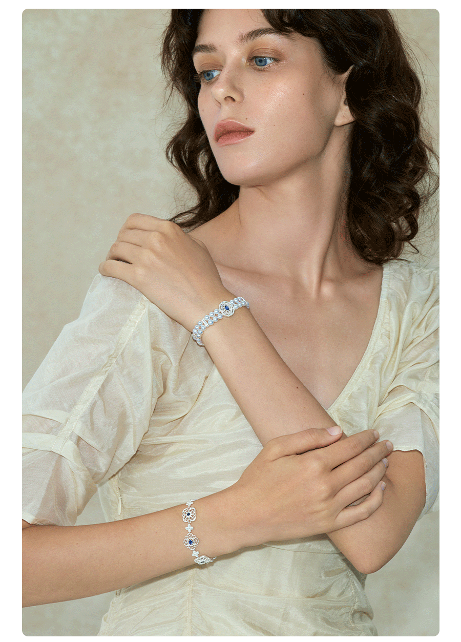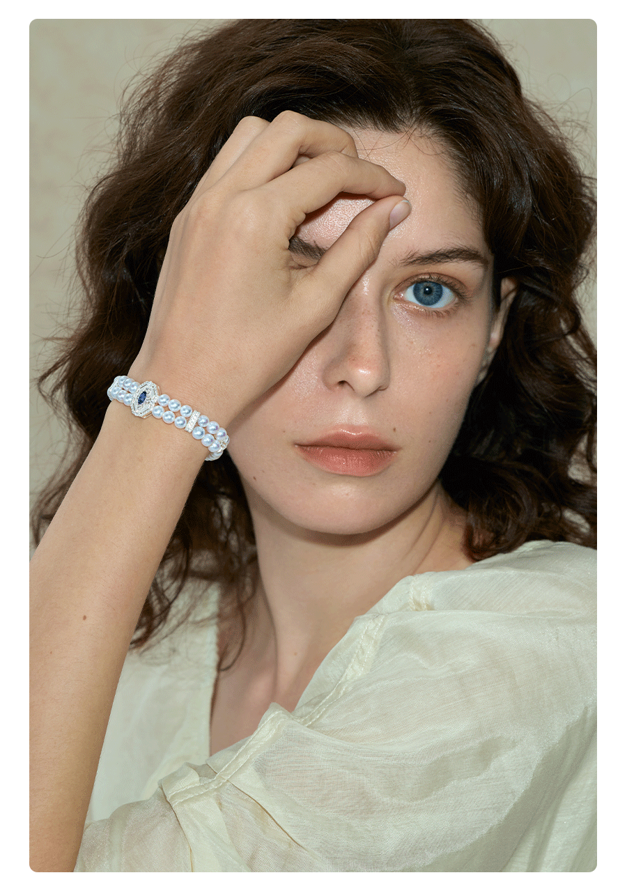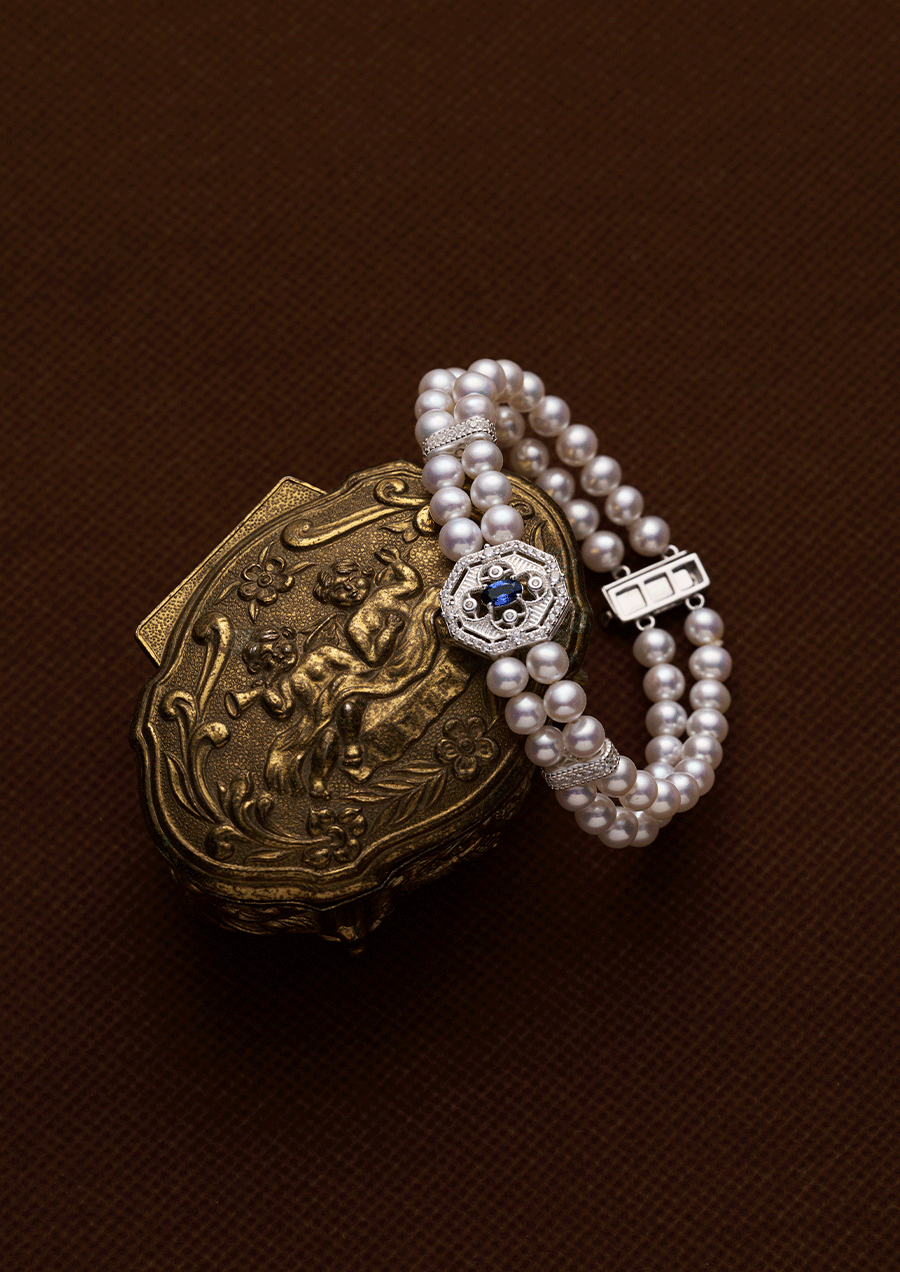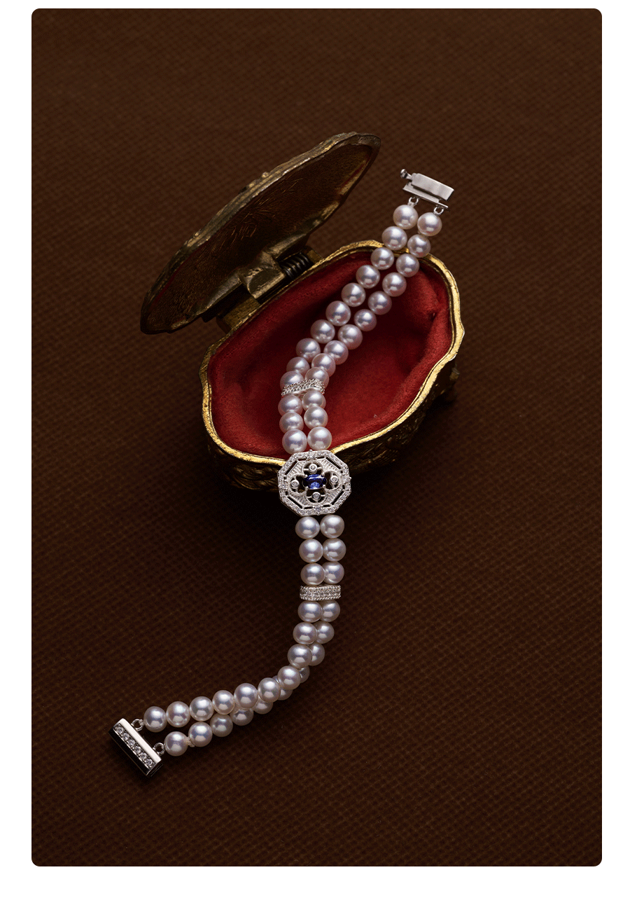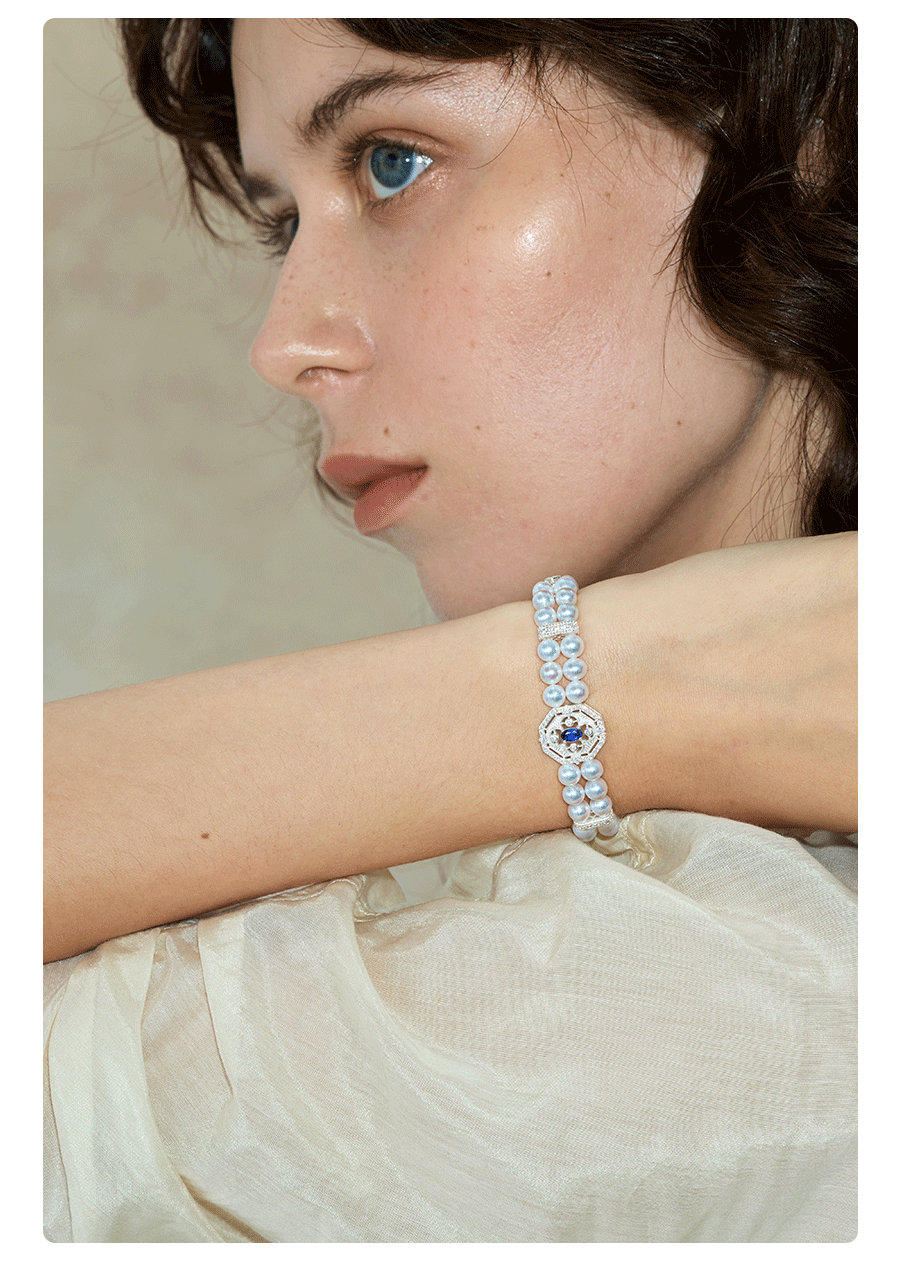 Retro Line《Lace Illustrated: Blue Velvet》Retro Design French Palace Style Natural Pearl Bracelet for Women