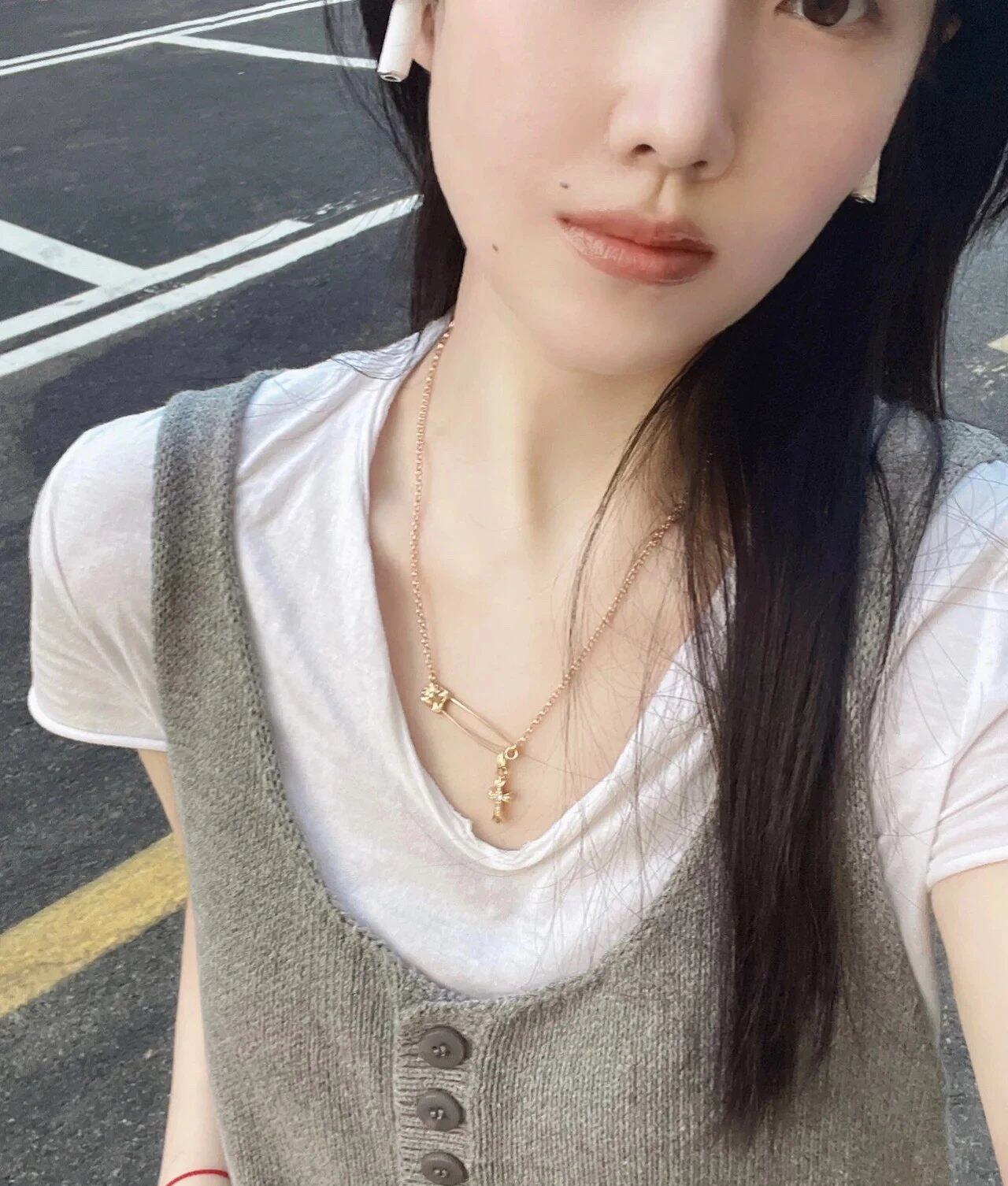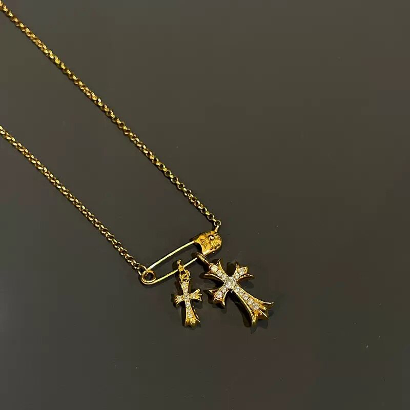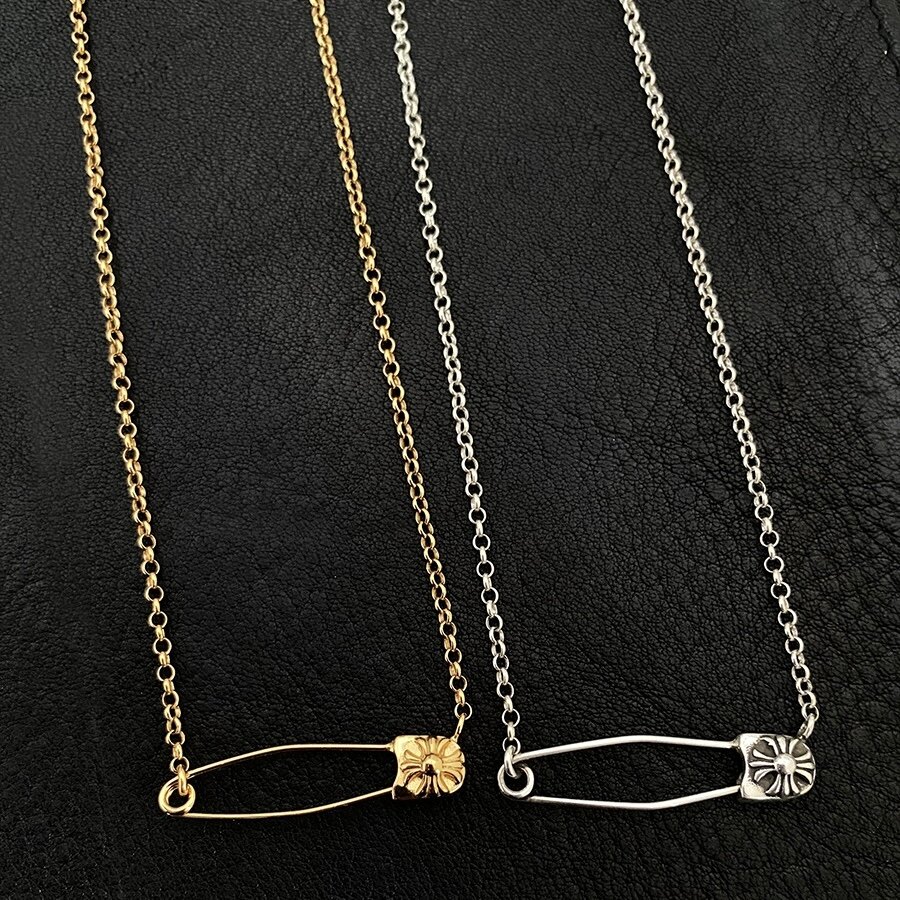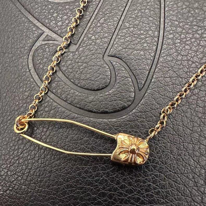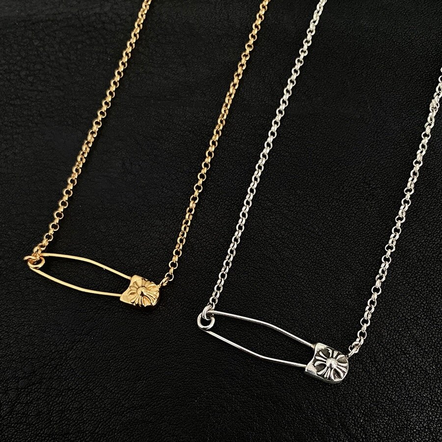Paperclip Brooch Necklace with Diamonds, Gold-Plated 925 Silver Clavicle Chain, Trendy, Unique, Versatile, European and American Punk Style for Men and Women