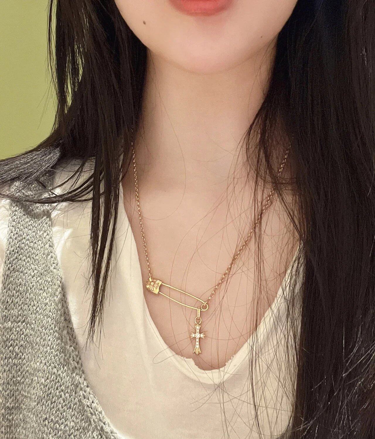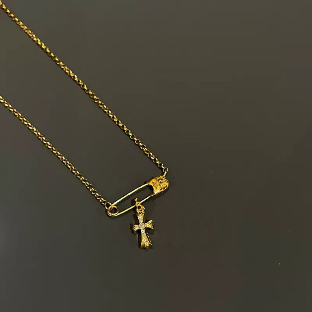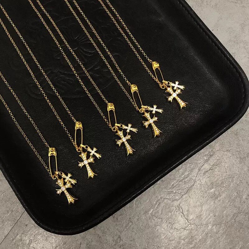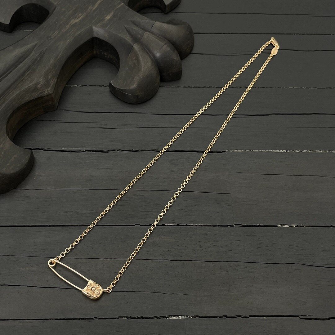 Paperclip Brooch Necklace with Diamonds, Gold-Plated 925 Silver Clavicle Chain, Trendy, Unique, Versatile, European and American Punk Style for Men and Women