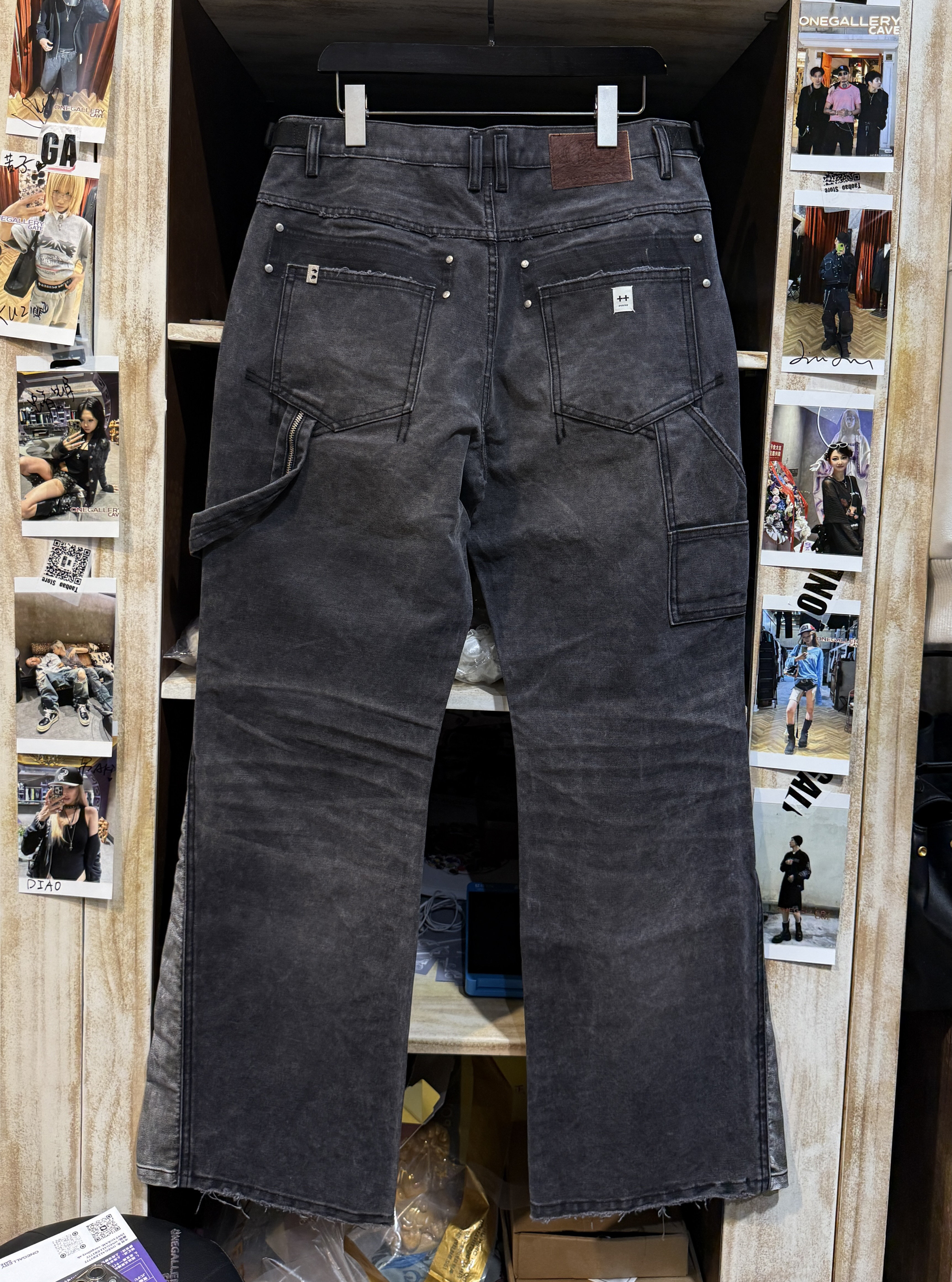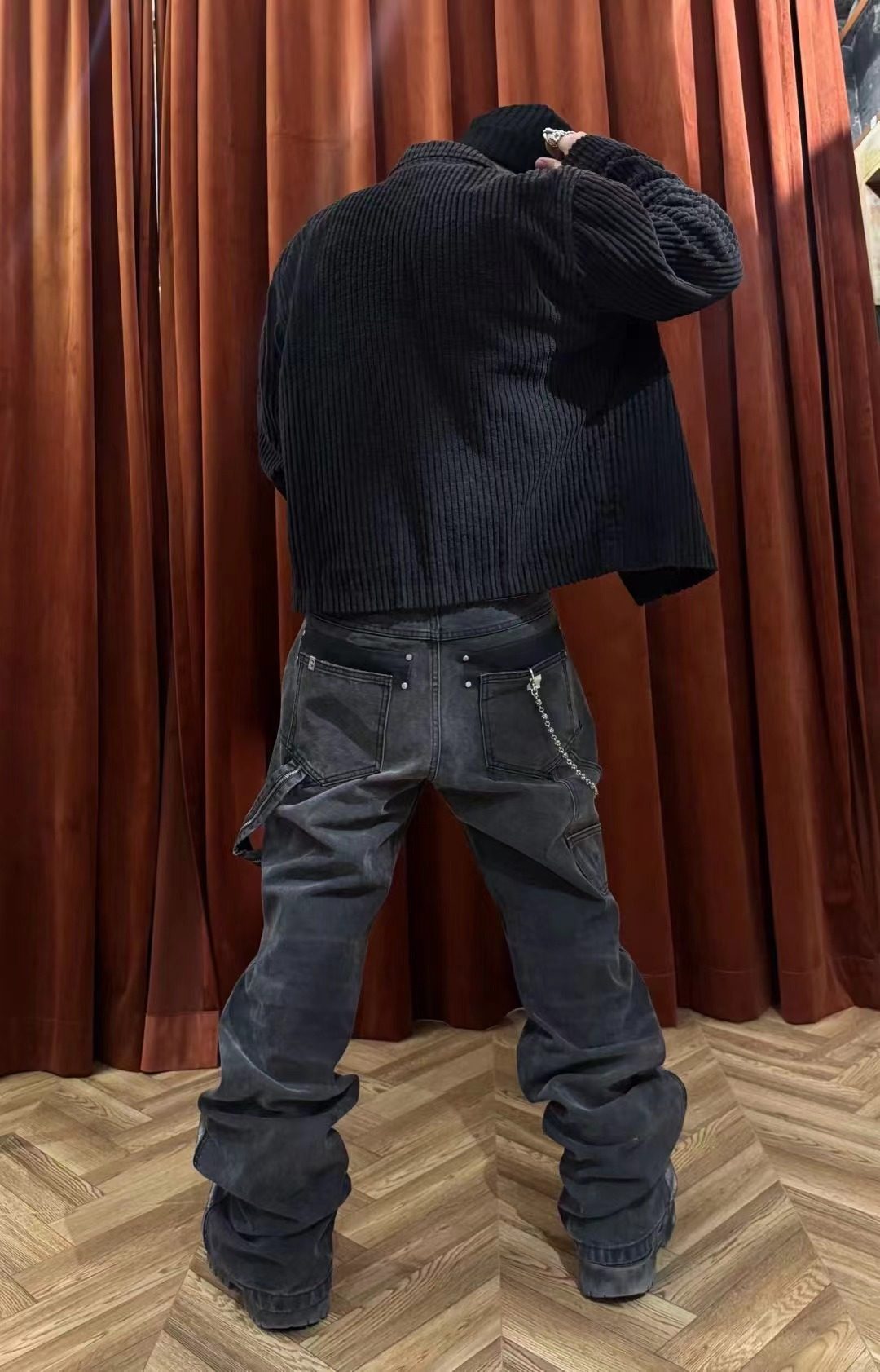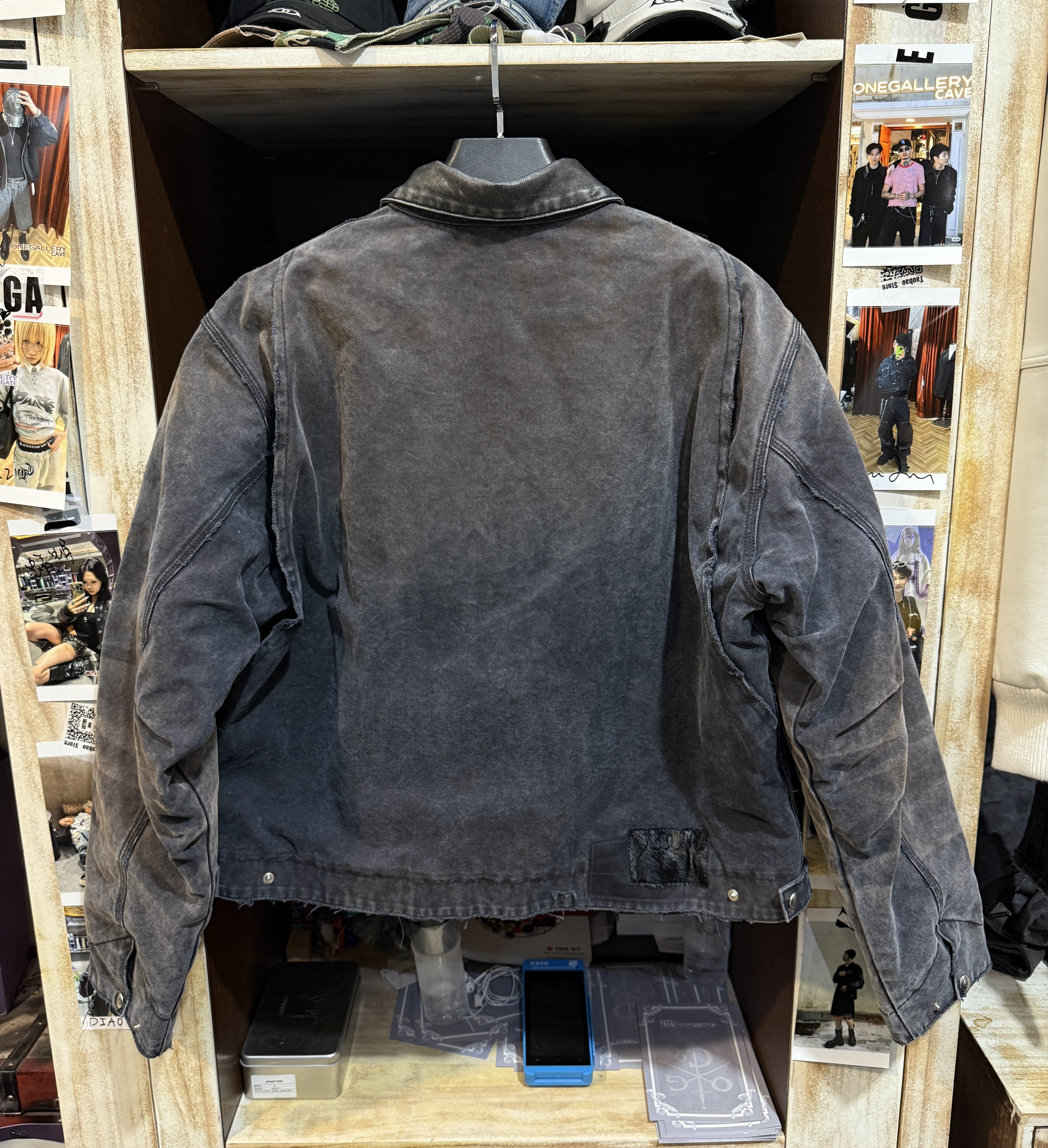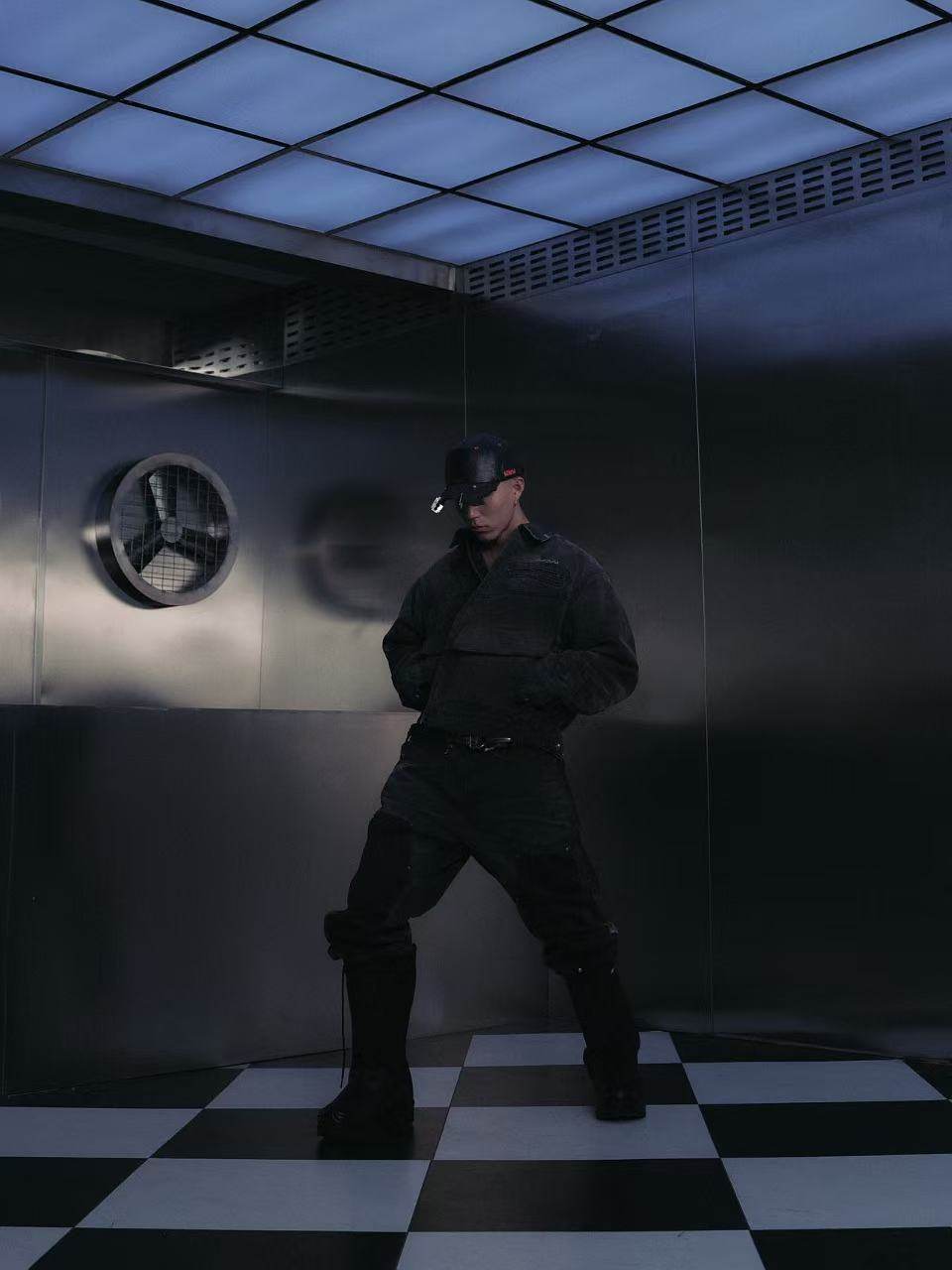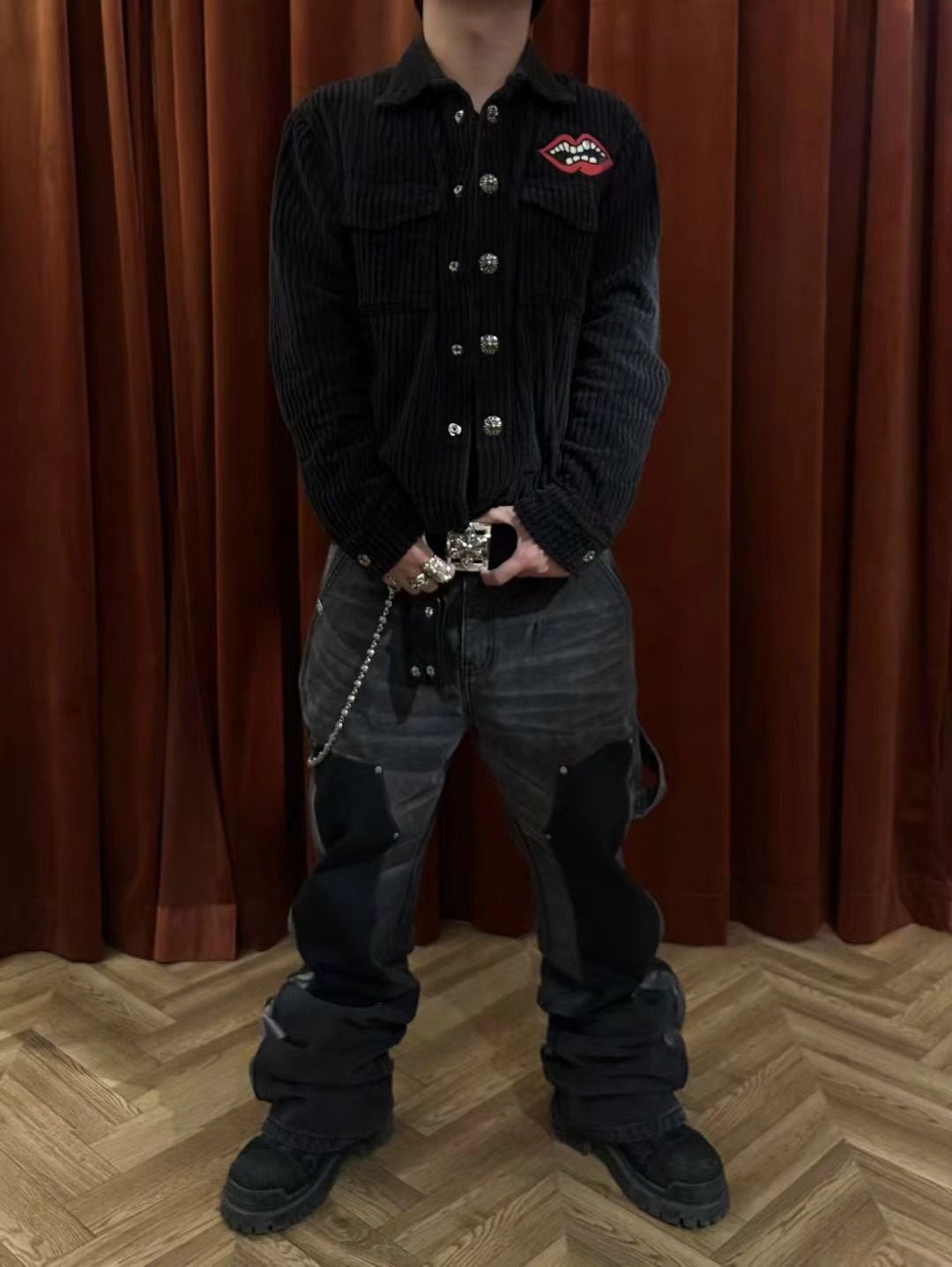 【Slum】Panq Space Japanese Washed Leather Patchwork Faded Distressed Detroit Jacket Casual Pants Set