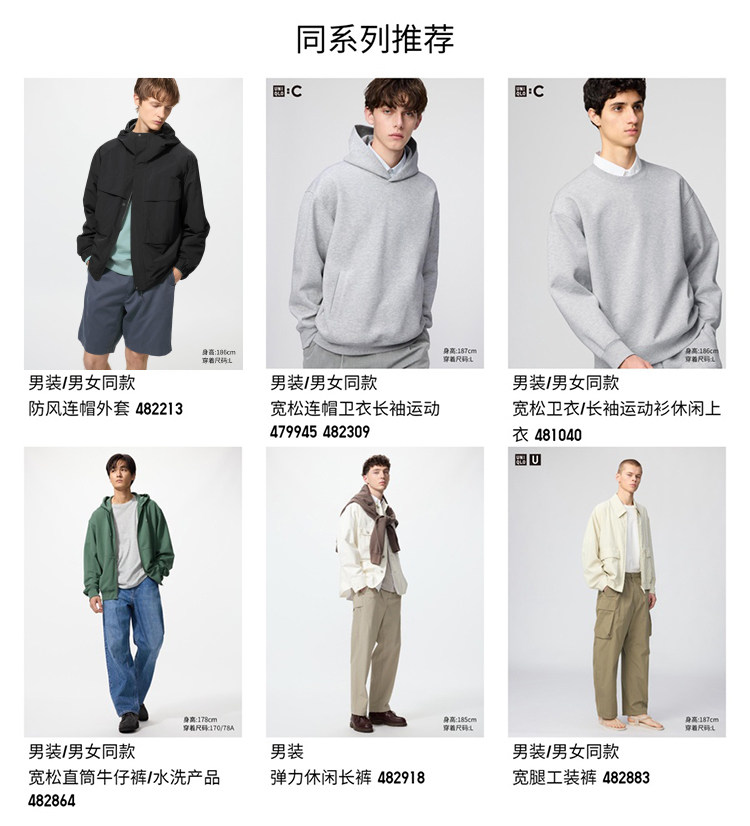 Regular Uniqlo Collaboration Style Unisex Loose-Fit Sports Pants with Drawstring Cuffs 482314