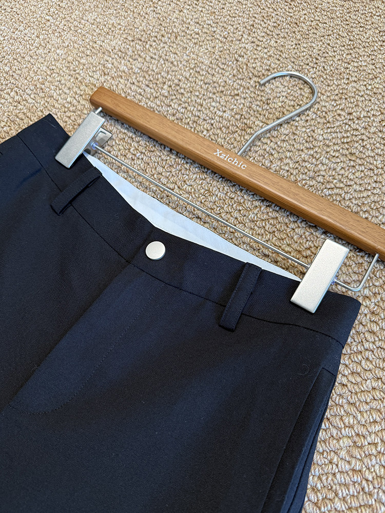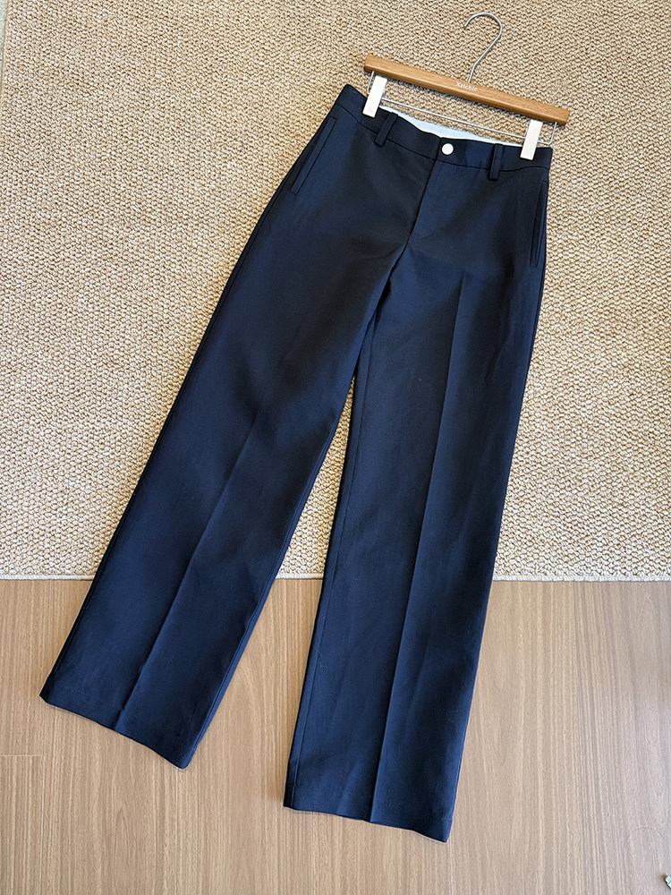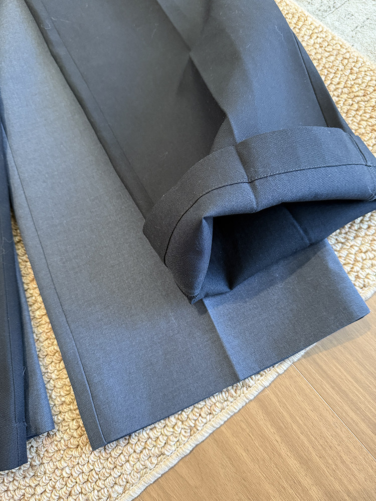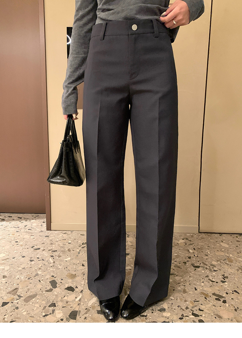 高阶大长腿 羊毛直筒压褶休闲西裤