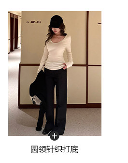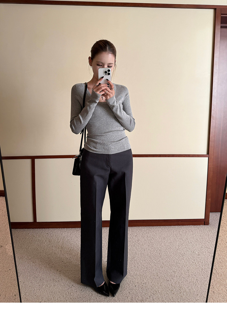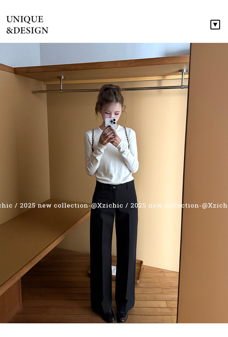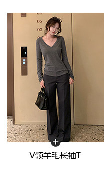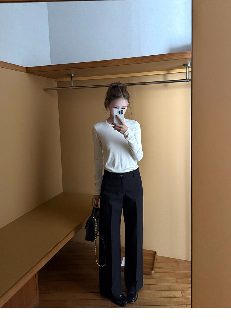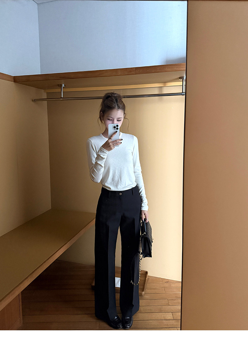 高阶大长腿 羊毛直筒压褶休闲西裤