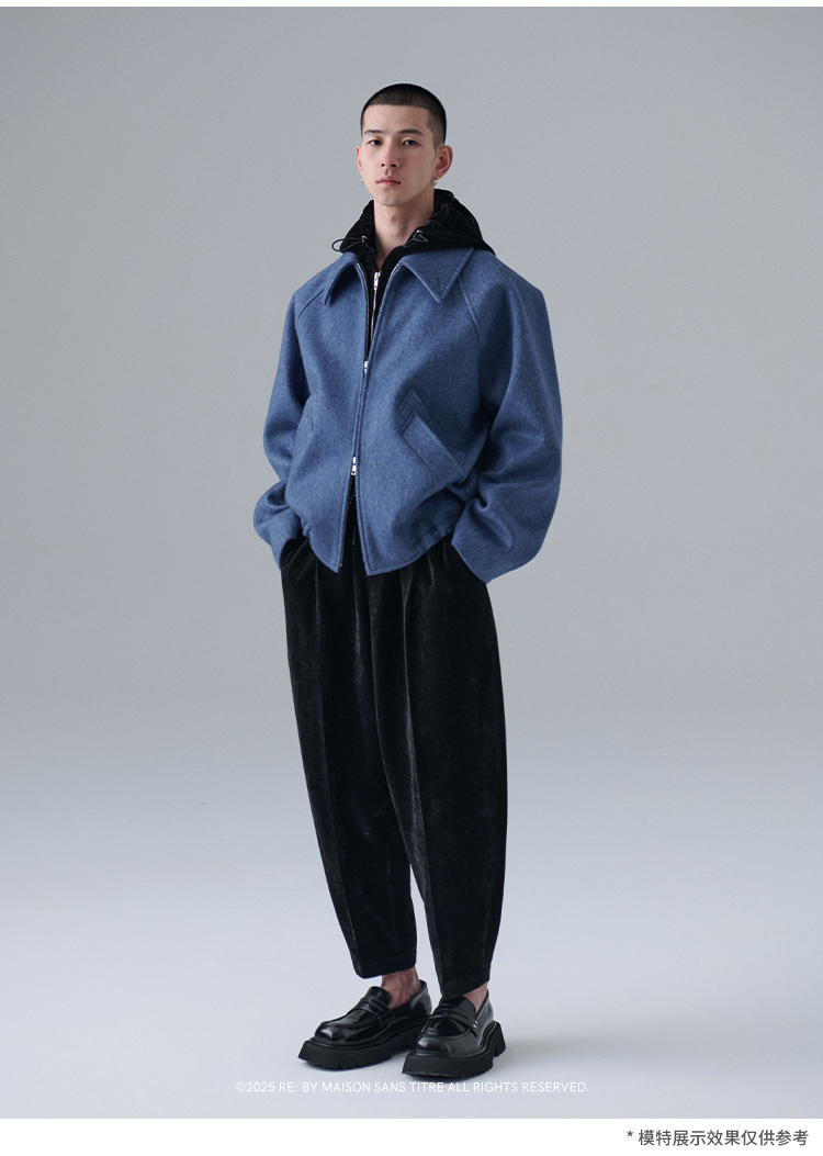 Re: by Maison Sans Titre Original Design Light Blue Raglan Sleeve Short Wool Coat with Lapel