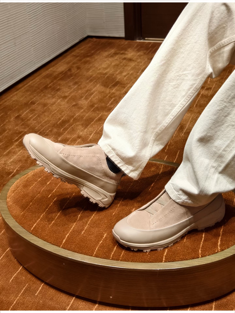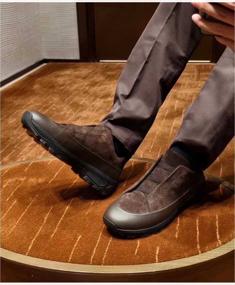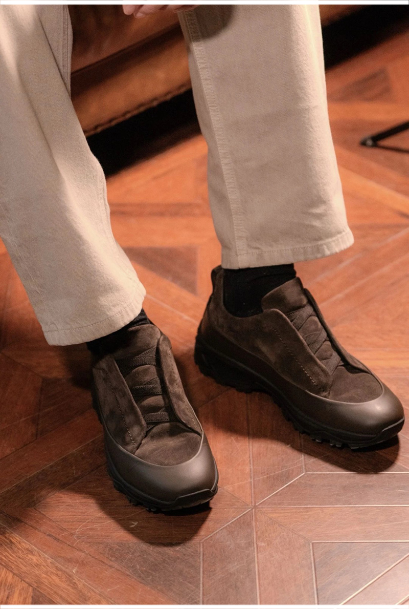 2025 Spring and Autumn Suede Business Casual Shoes Thick Sole Height Increasing Slip-On Lazy Cross Elastic Band Sports Men's Shoes