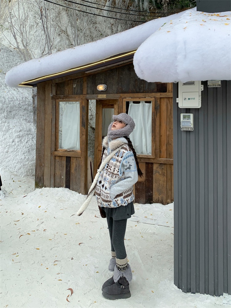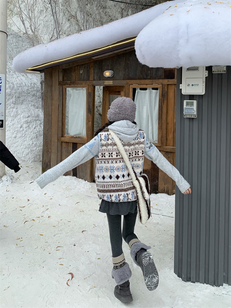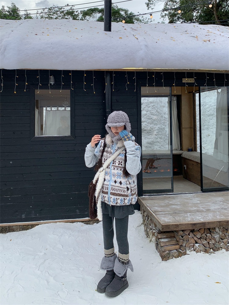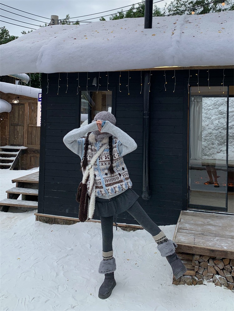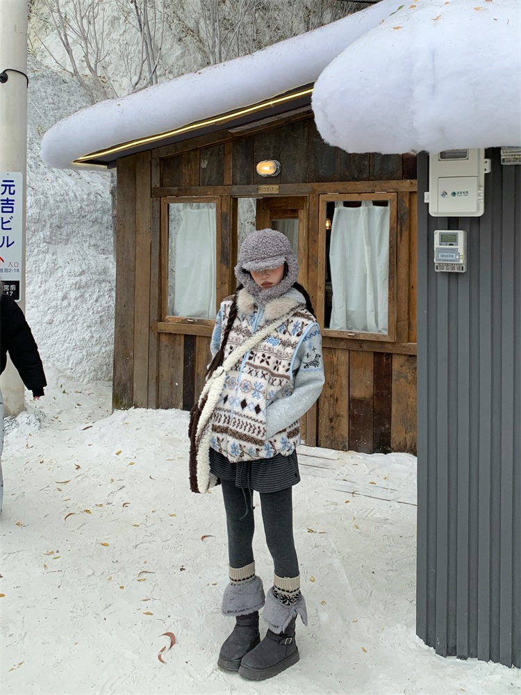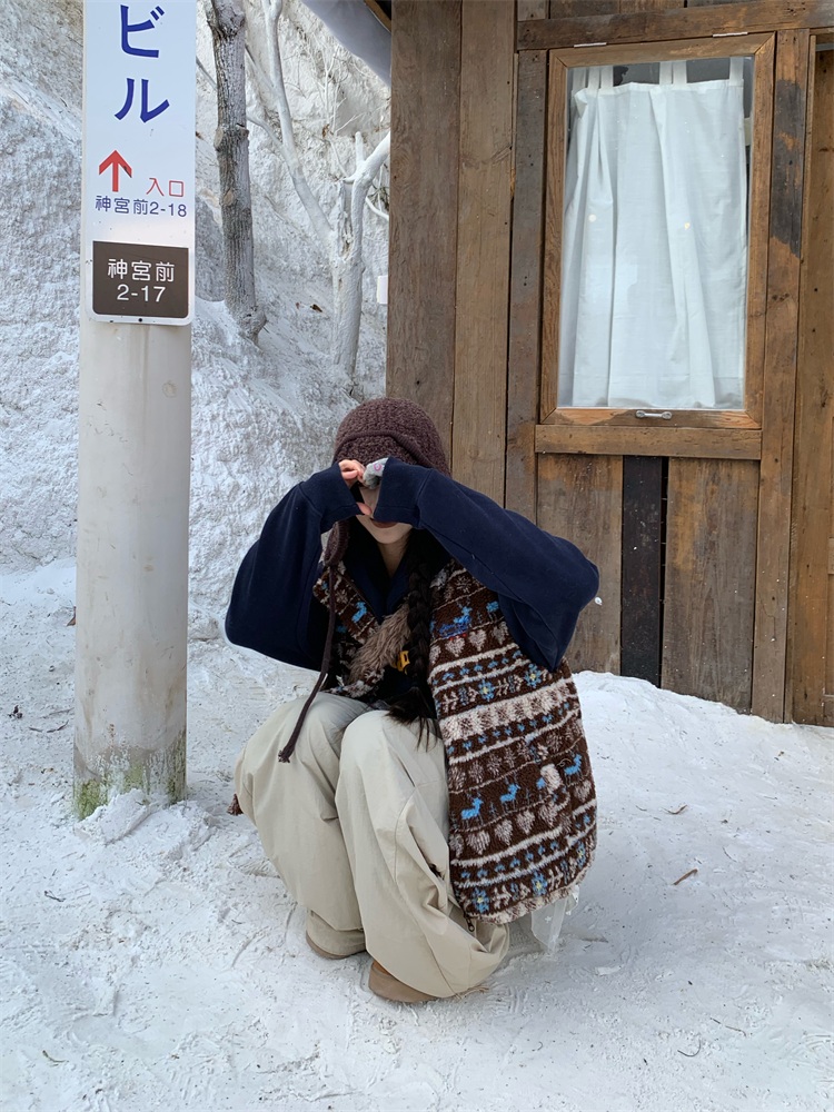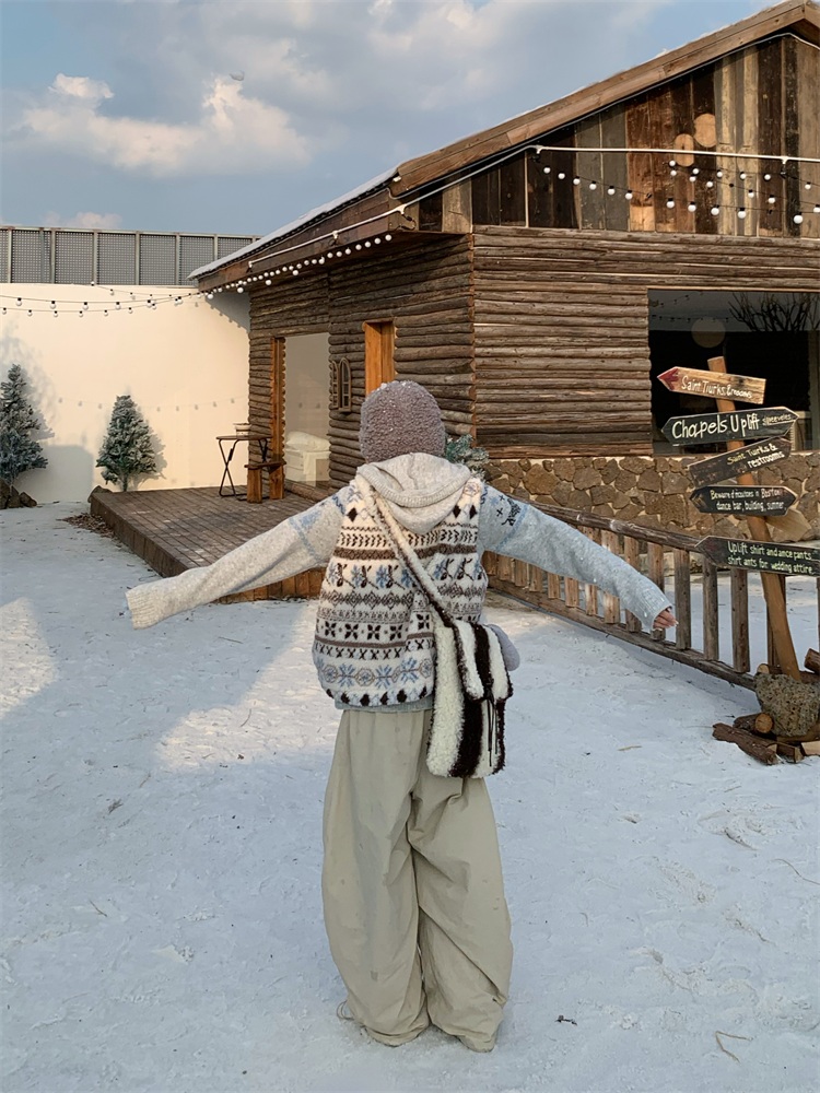 195 Daixi Fair Isle Lamb Wool Vest for Women, Autumn and Winter Layered Wear, Versatile, Loose, Casual Stand Collar Cotton Jacket, Trendy