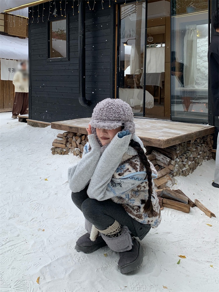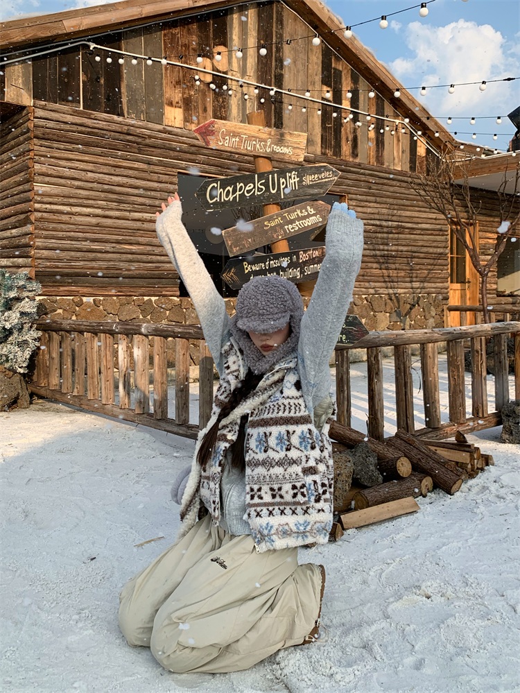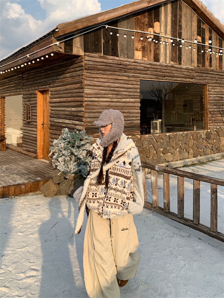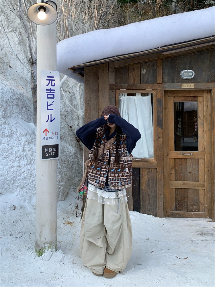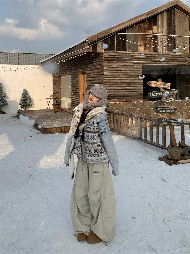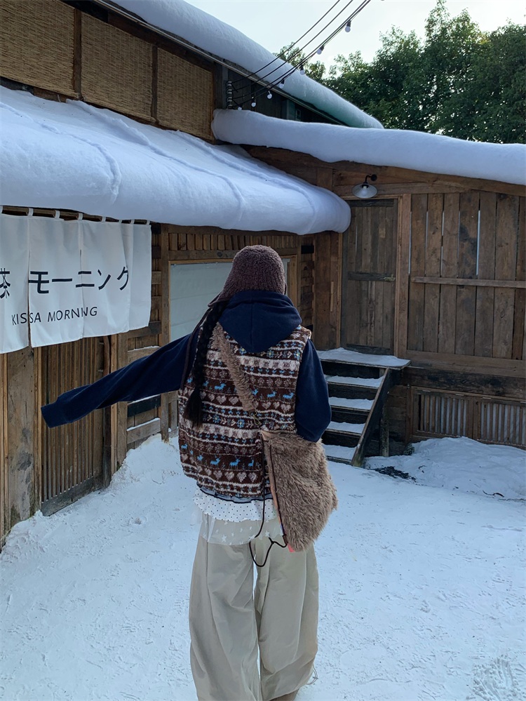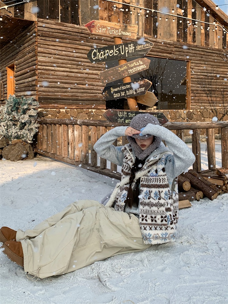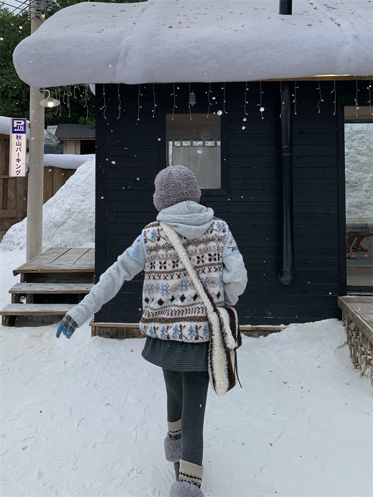 195 Daixi Fair Isle Lamb Wool Vest for Women, Autumn and Winter Layered Wear, Versatile, Loose, Casual Stand Collar Cotton Jacket, Trendy