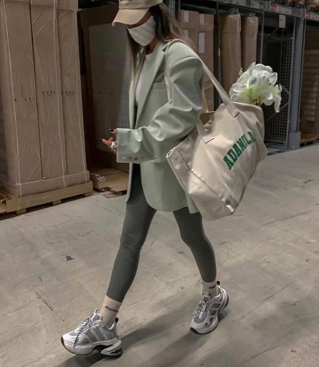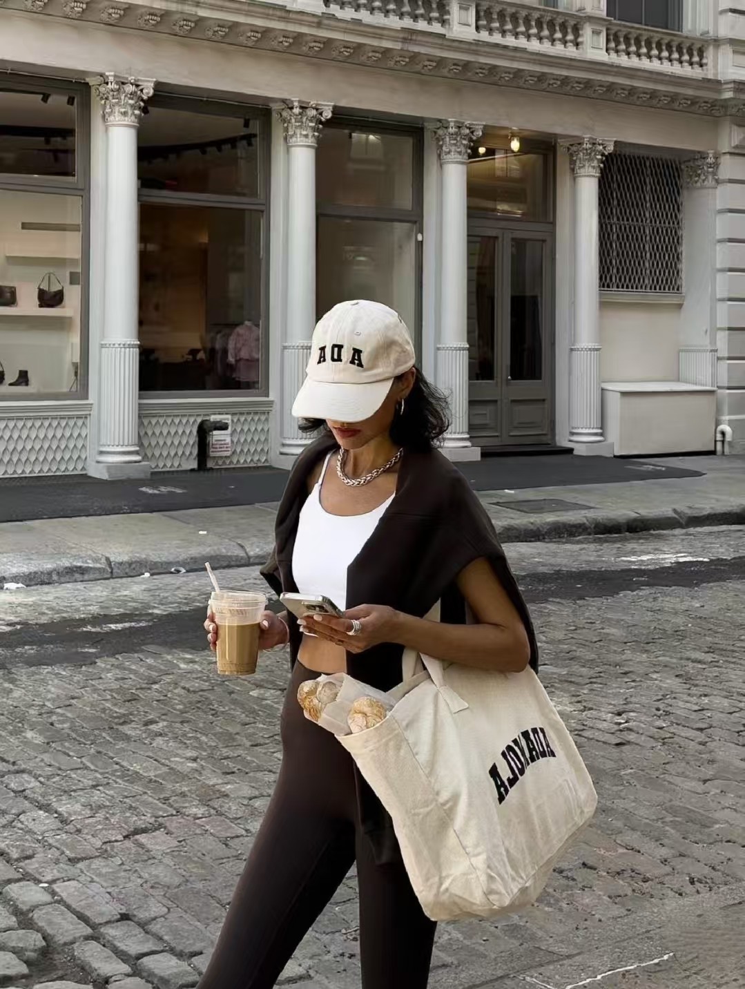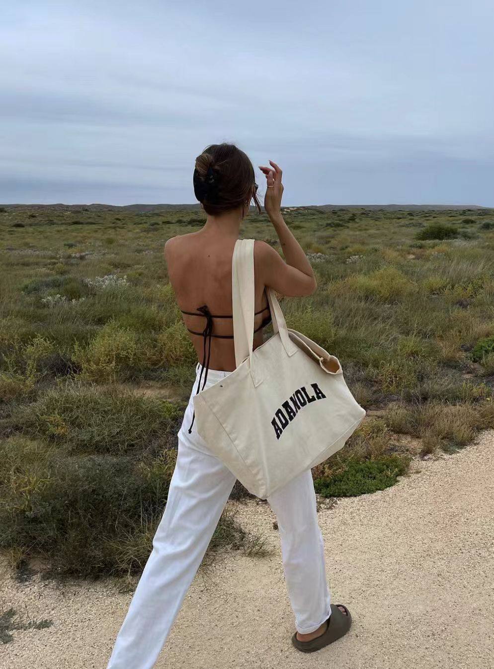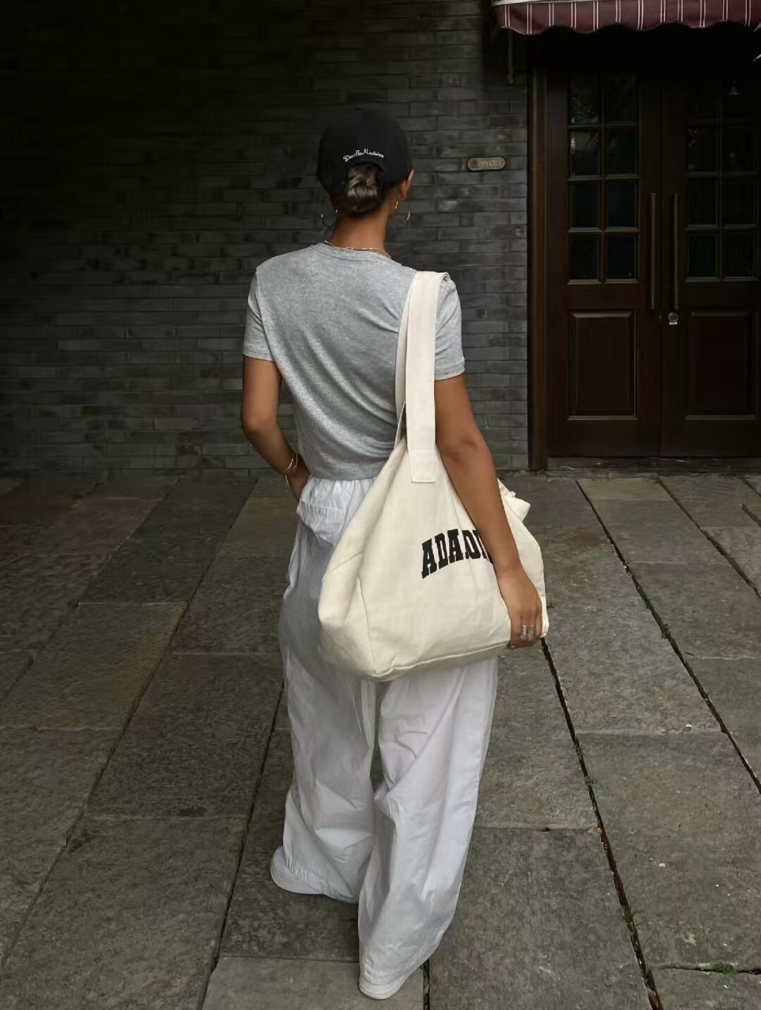 Adanola Niche Trendy Brand European and American Style ins Blogger Style Sports Shoulder Tote Large Capacity Letter Canvas Bag
