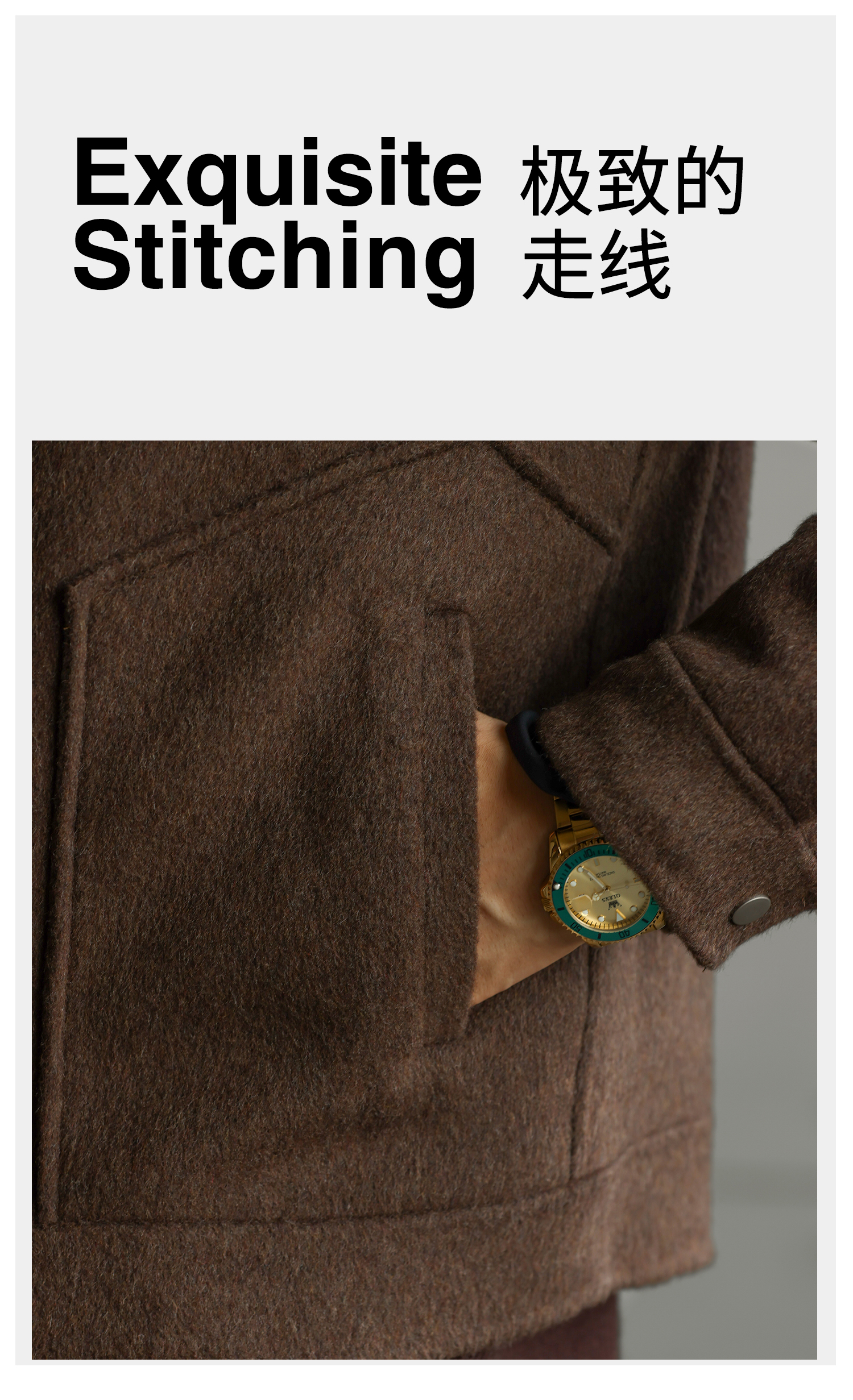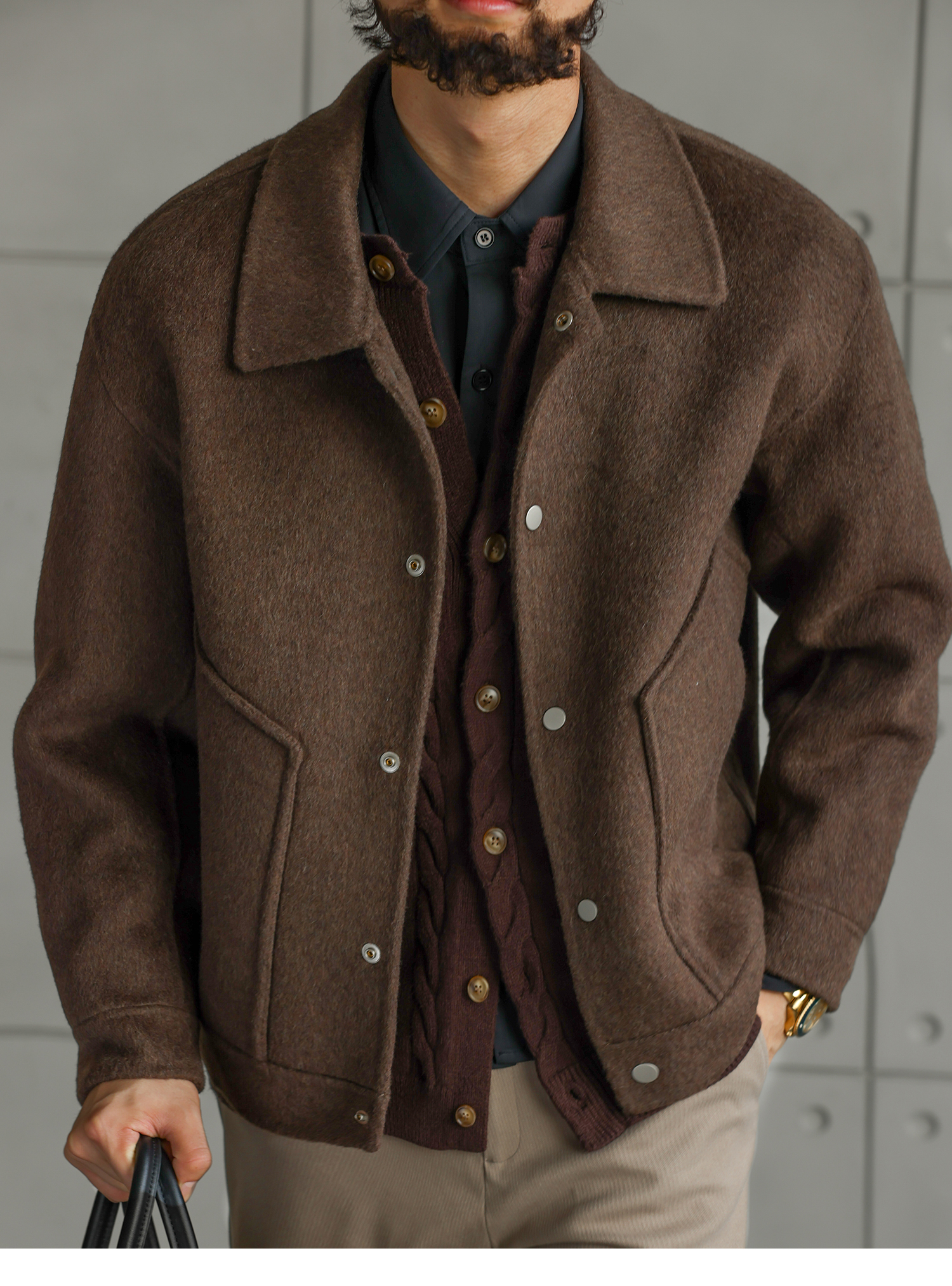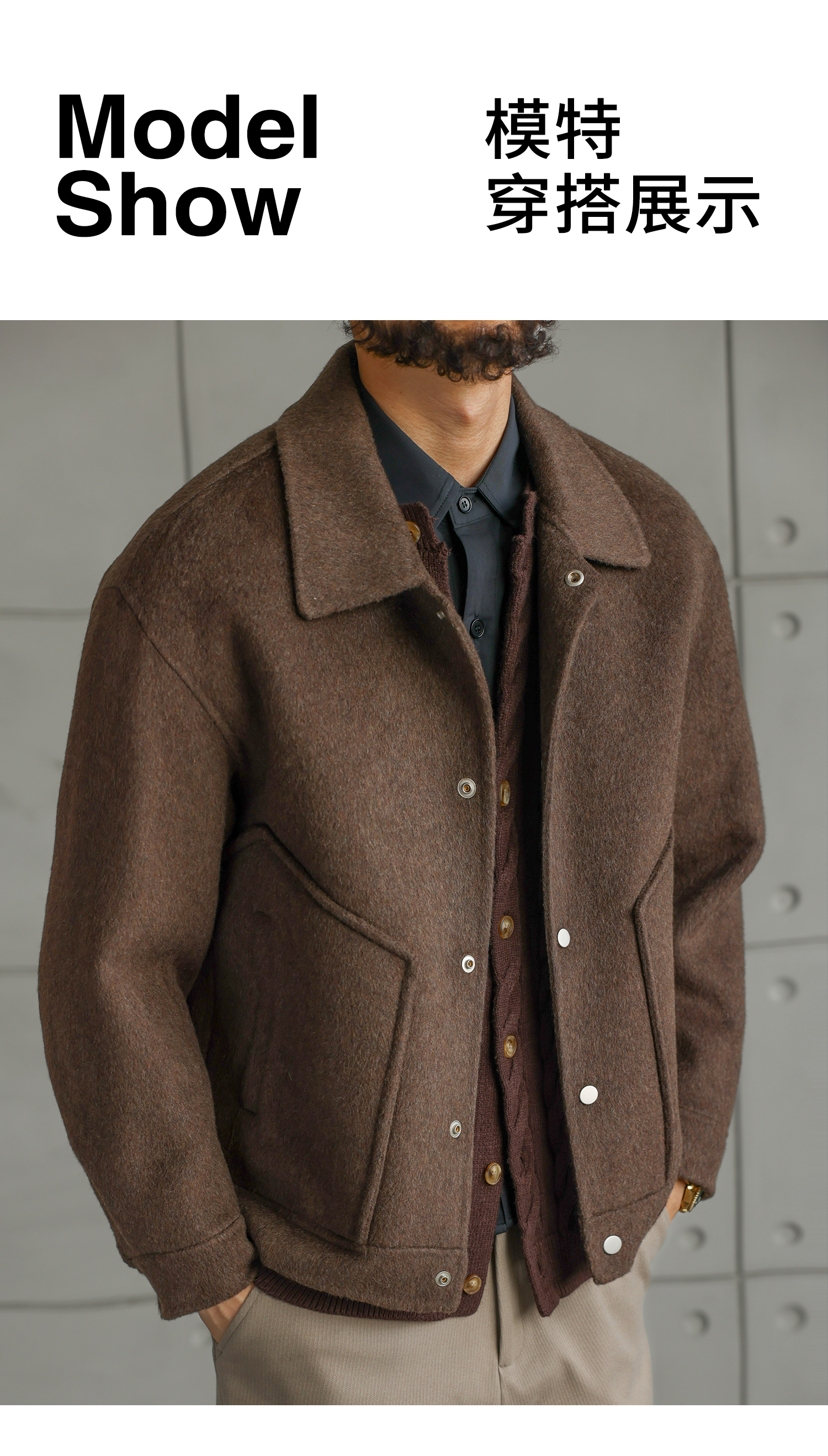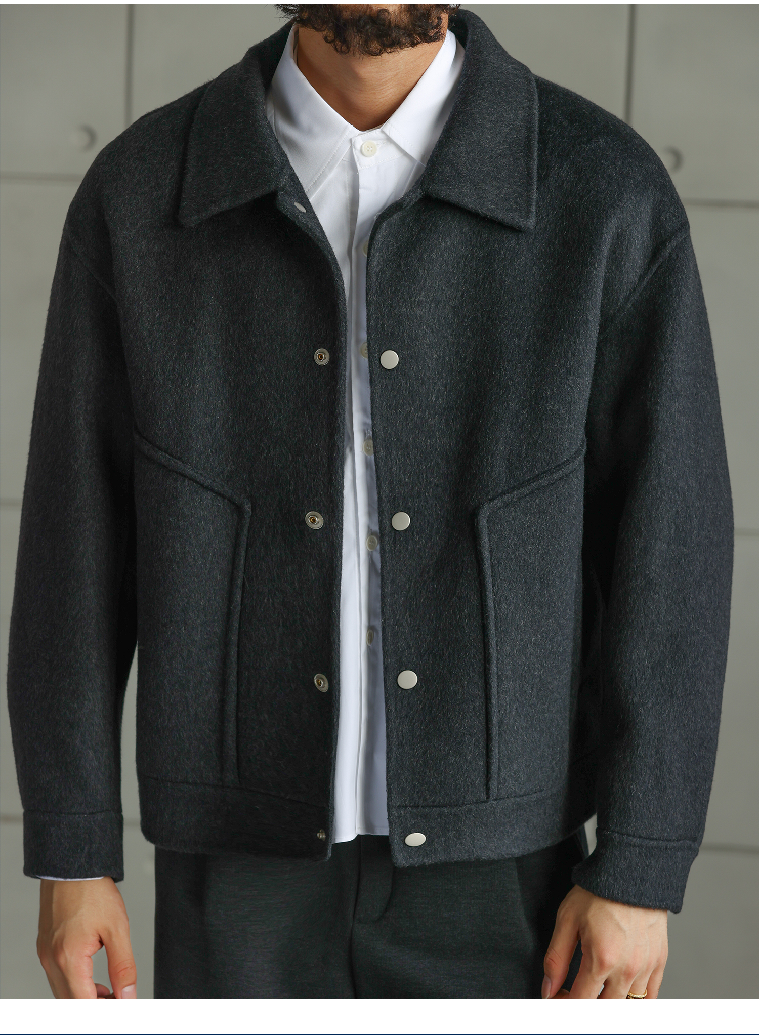 Iunclexi【Handmade Cashmere】Autumn and Winter Double-Sided Wool Cashmere Jacket Men's Short Woolen Coat Warm Outerwear