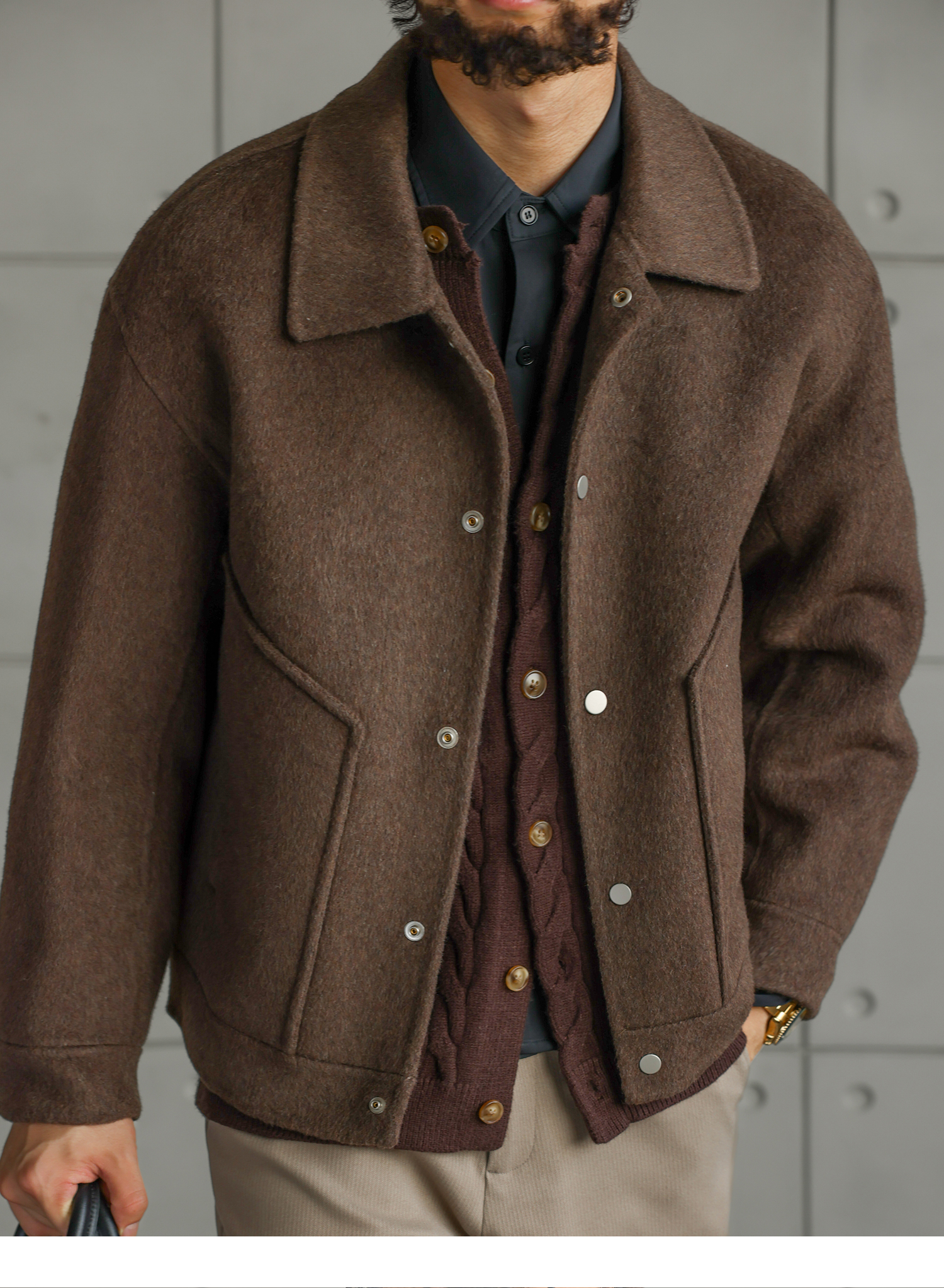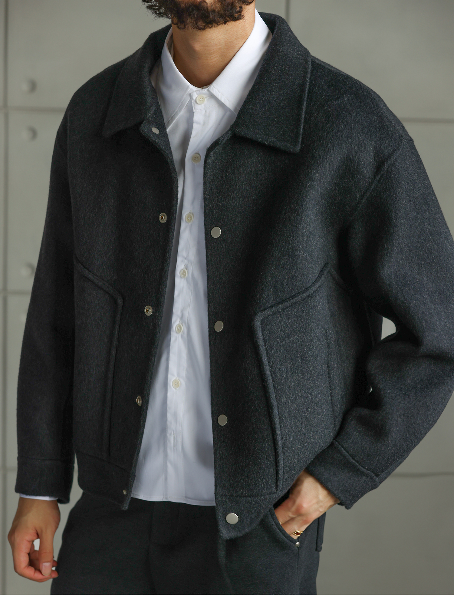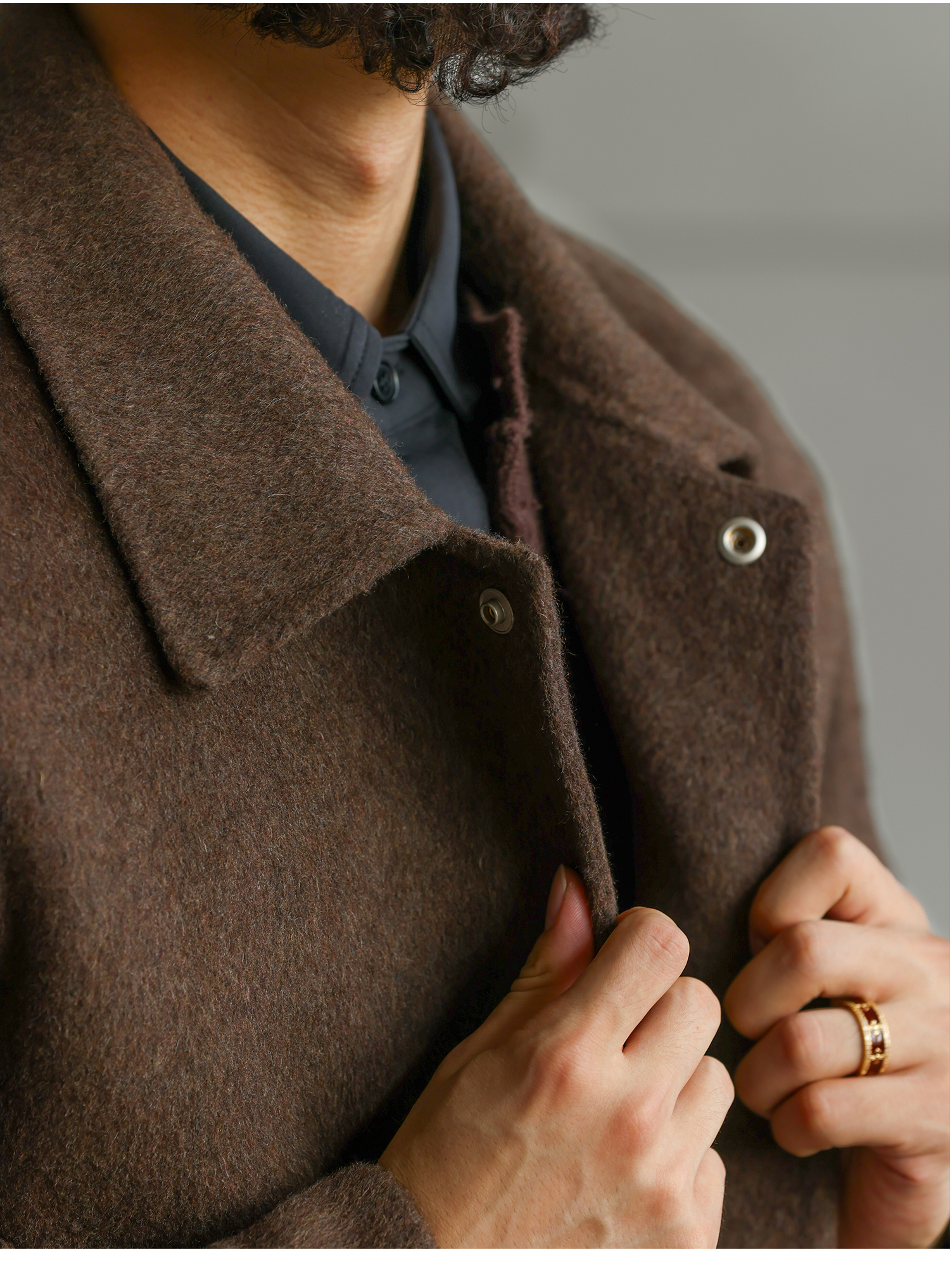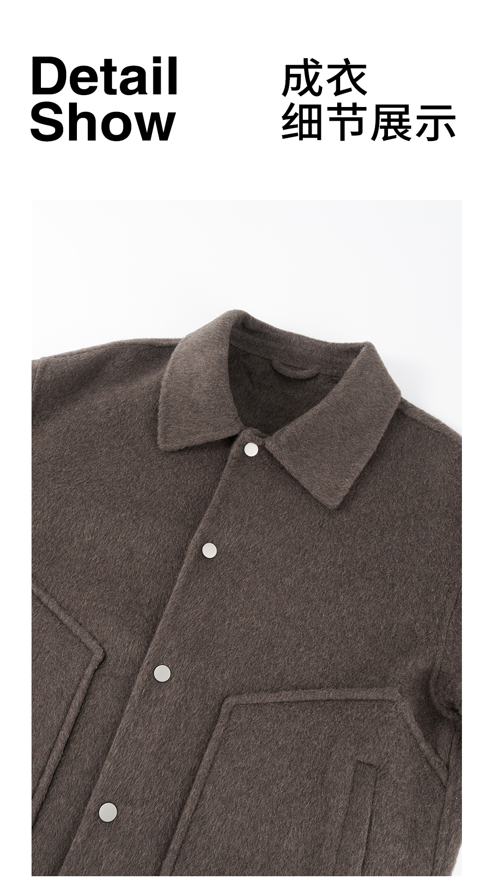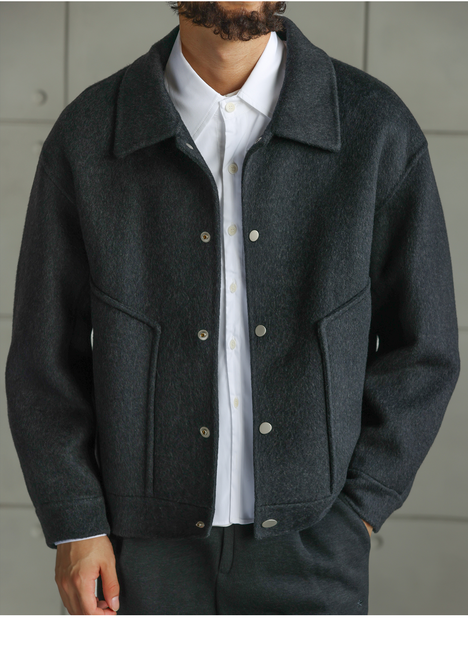 Iunclexi【Handmade Cashmere】Autumn and Winter Double-Sided Wool Cashmere Jacket Men's Short Woolen Coat Warm Outerwear