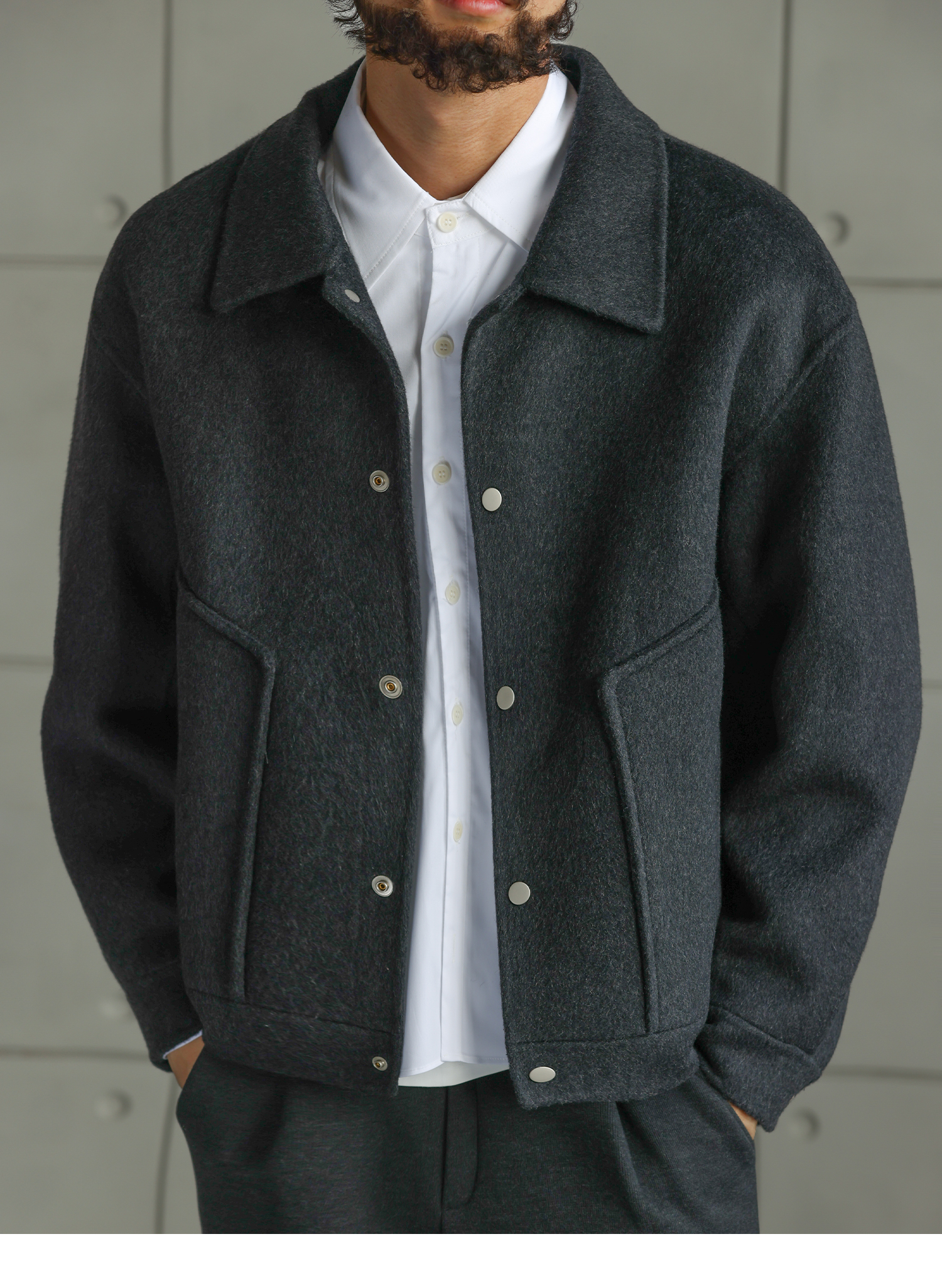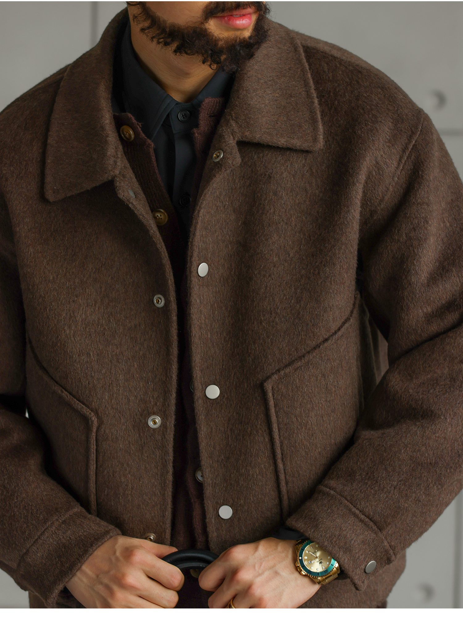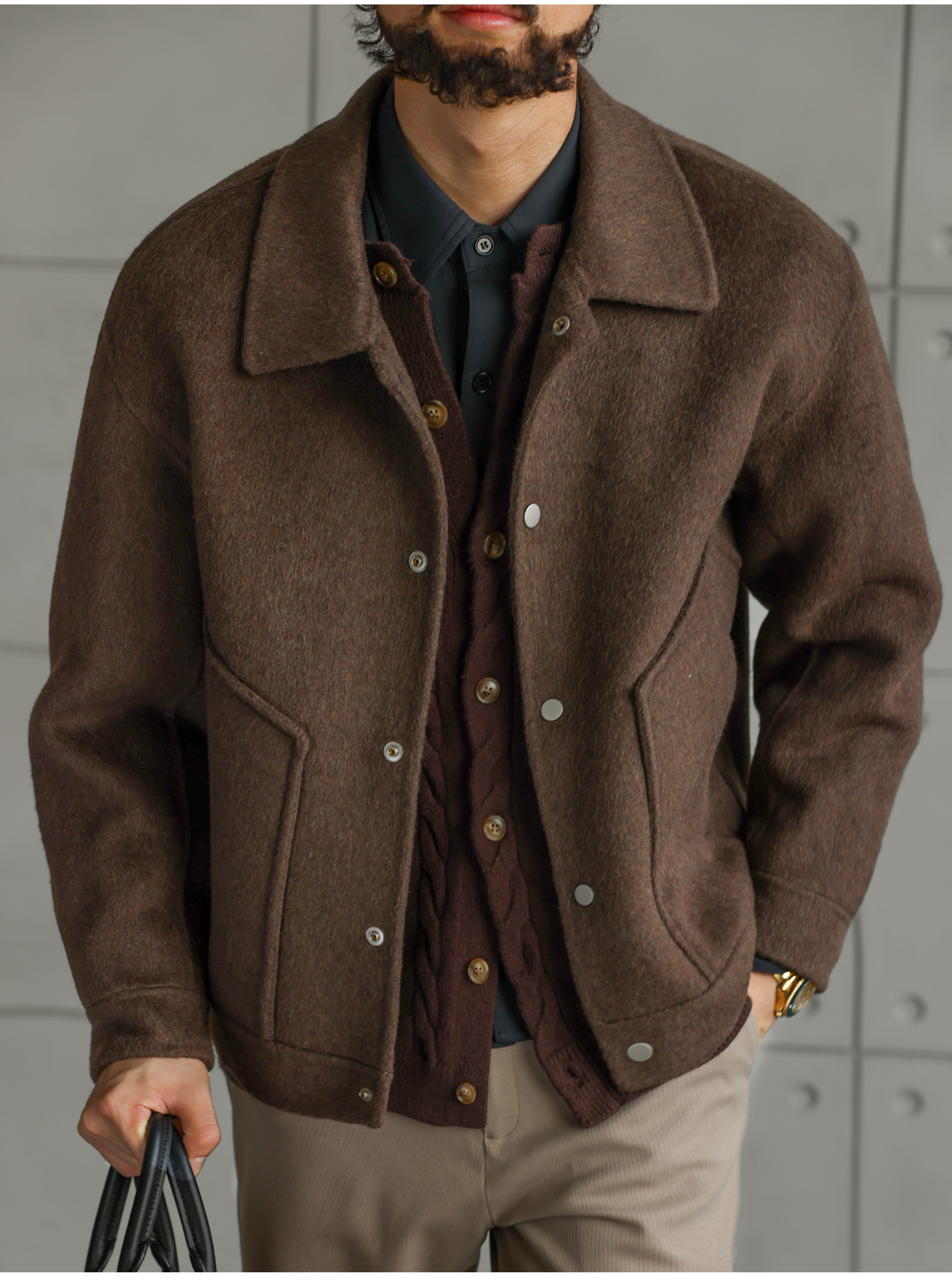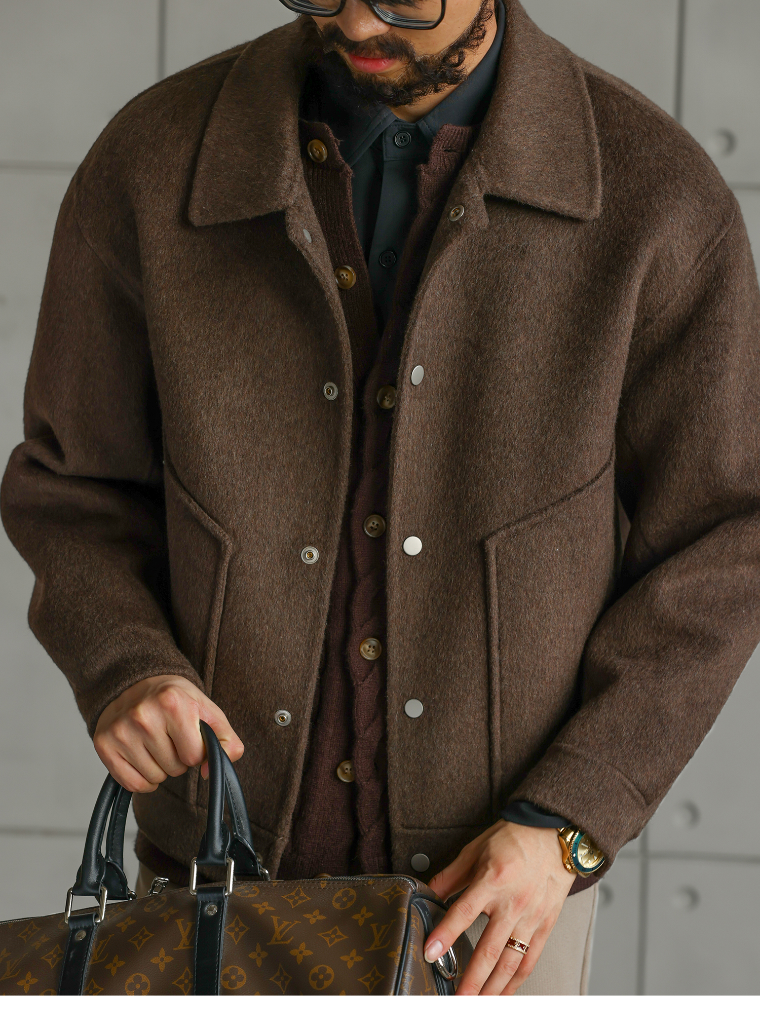 Iunclexi【Handmade Cashmere】Autumn and Winter Double-Sided Wool Cashmere Jacket Men's Short Woolen Coat Warm Outerwear