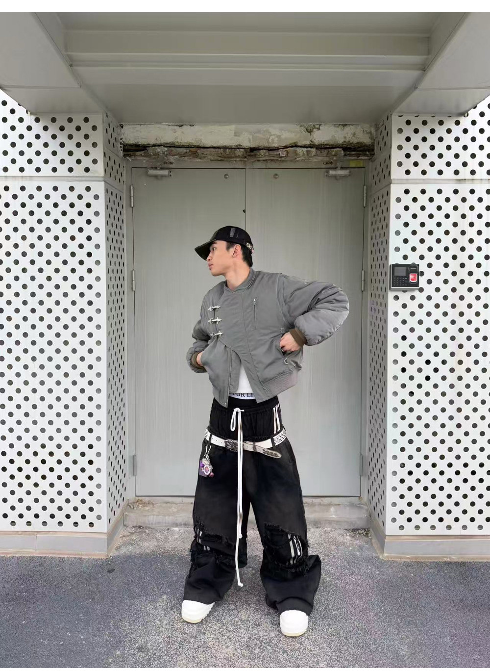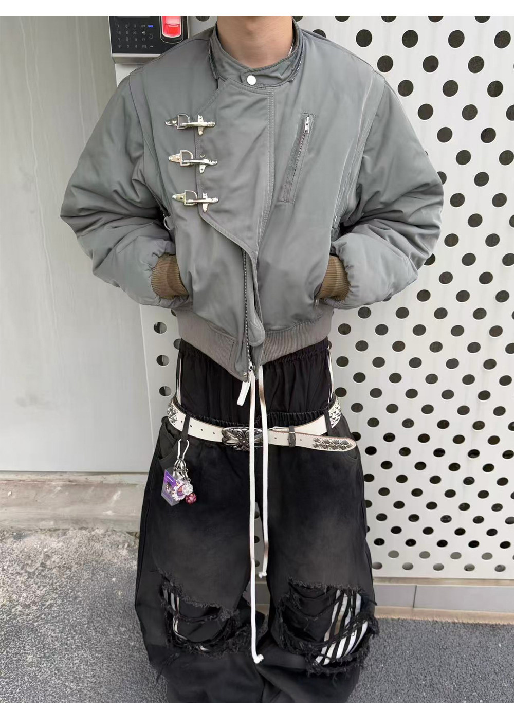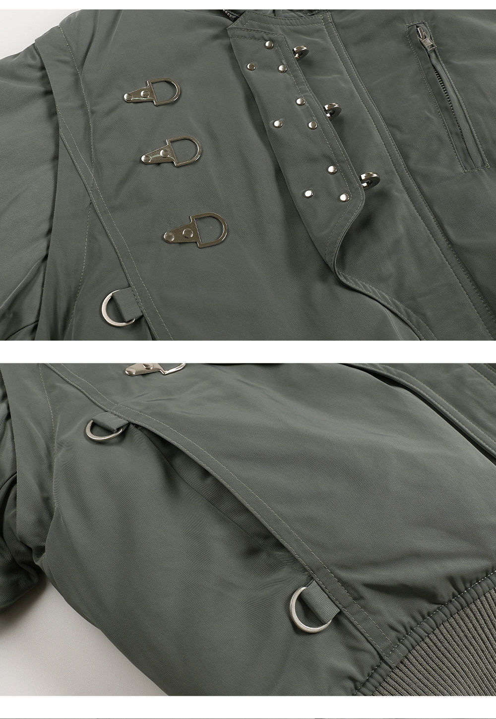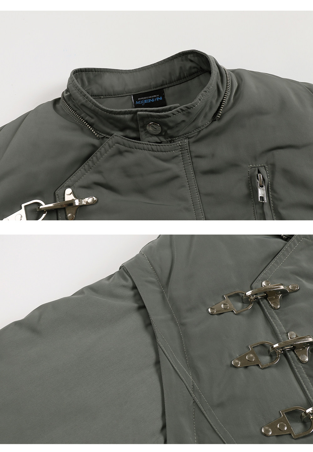 Mat Jenin Detachable Sleeve Bomber Jacket with Snap Buttons, Thick Pilot Jacket for Men