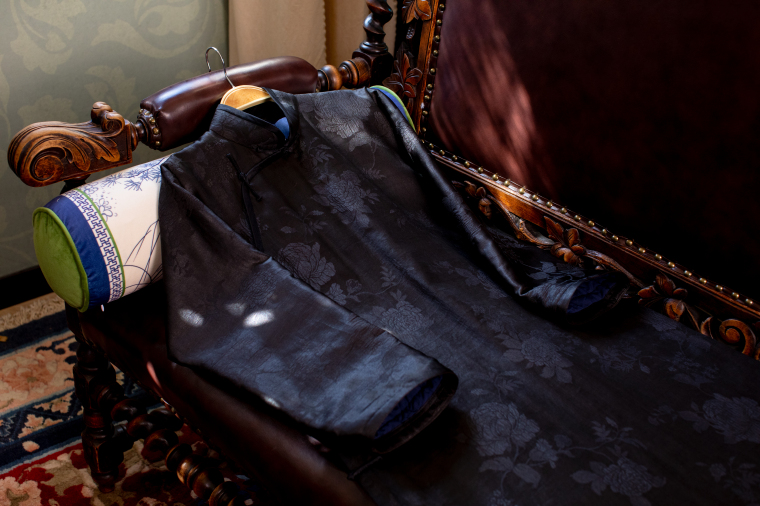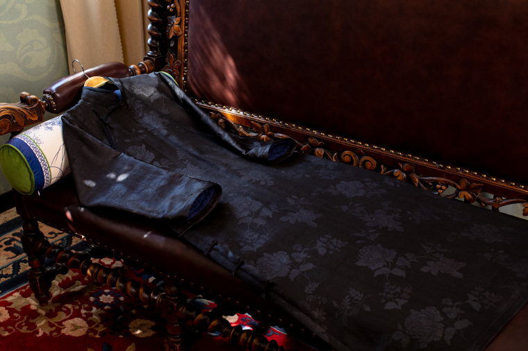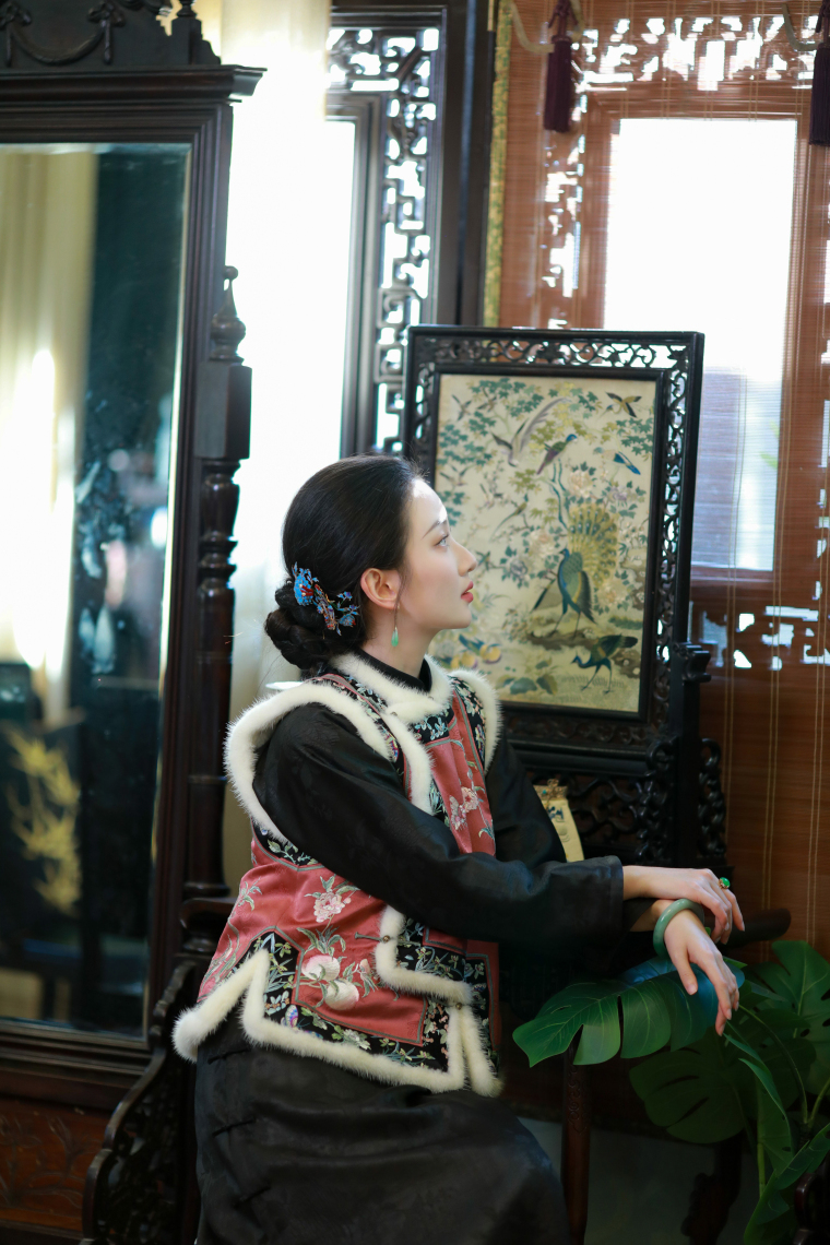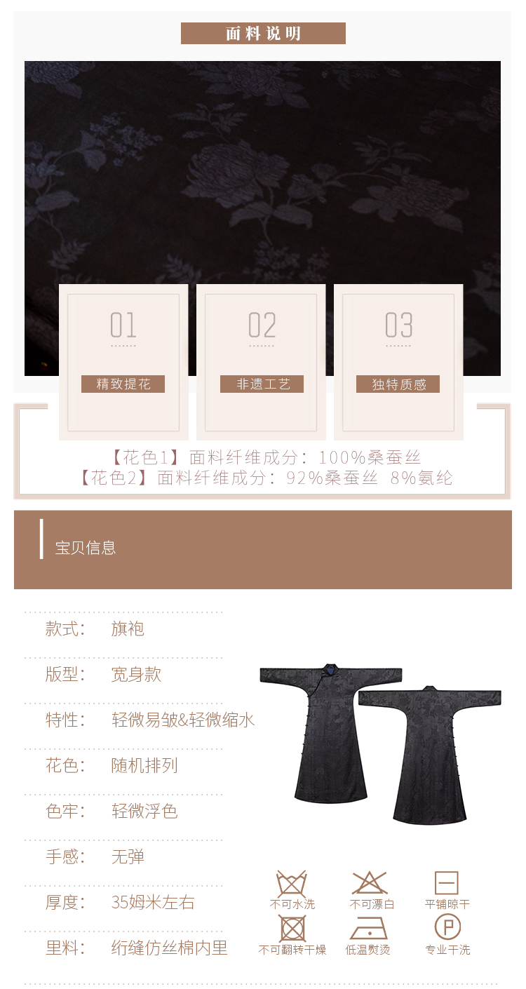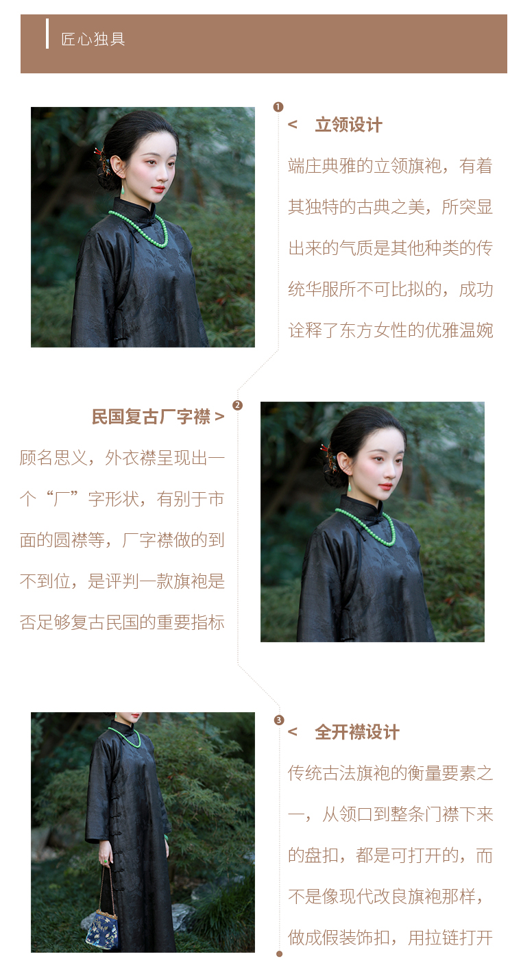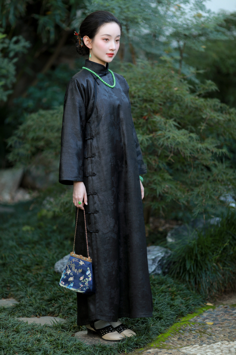 Huaximuwan丨2025 Autumn/Winter New Collection丨Silk Heavy Satin Xiangyunsha Black Vintage Robe Chinese Style Cheongsam Dress
