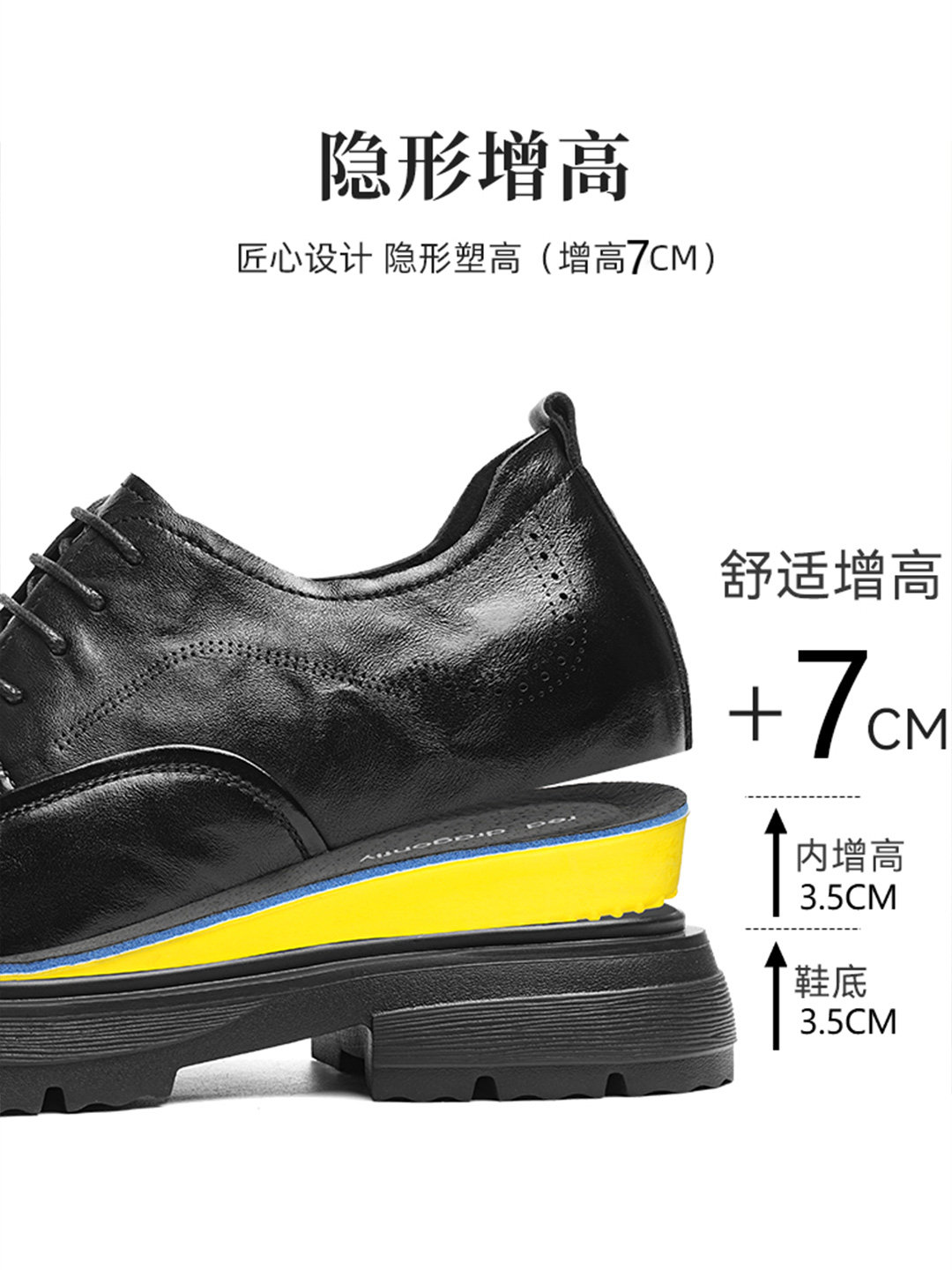 Red Dragonfly Men's Shoes [Height Increase 7cm] Leather Shoes for Men Korean Style Business Formal Genuine Leather Wedding Shoes Height Increasing Shoes