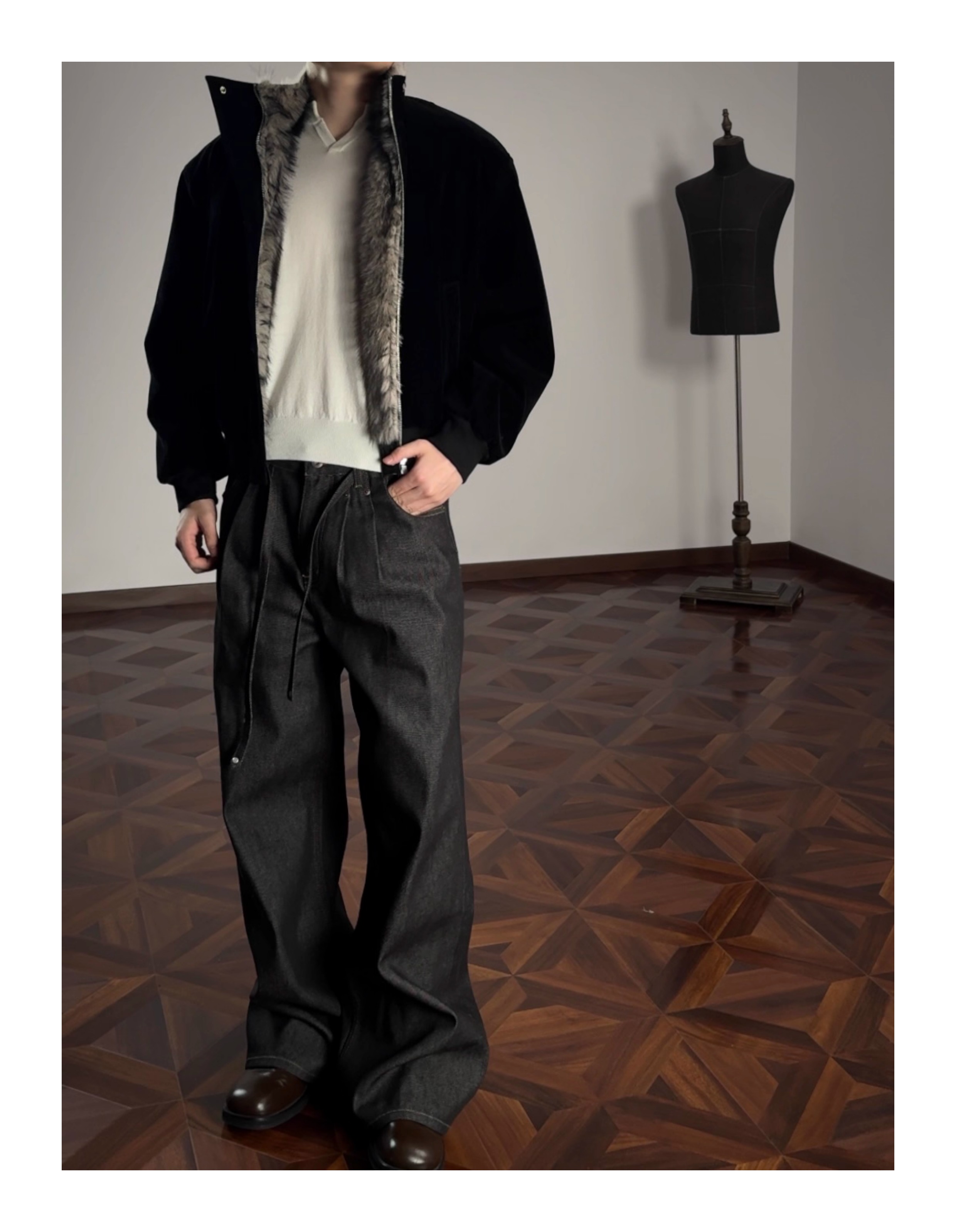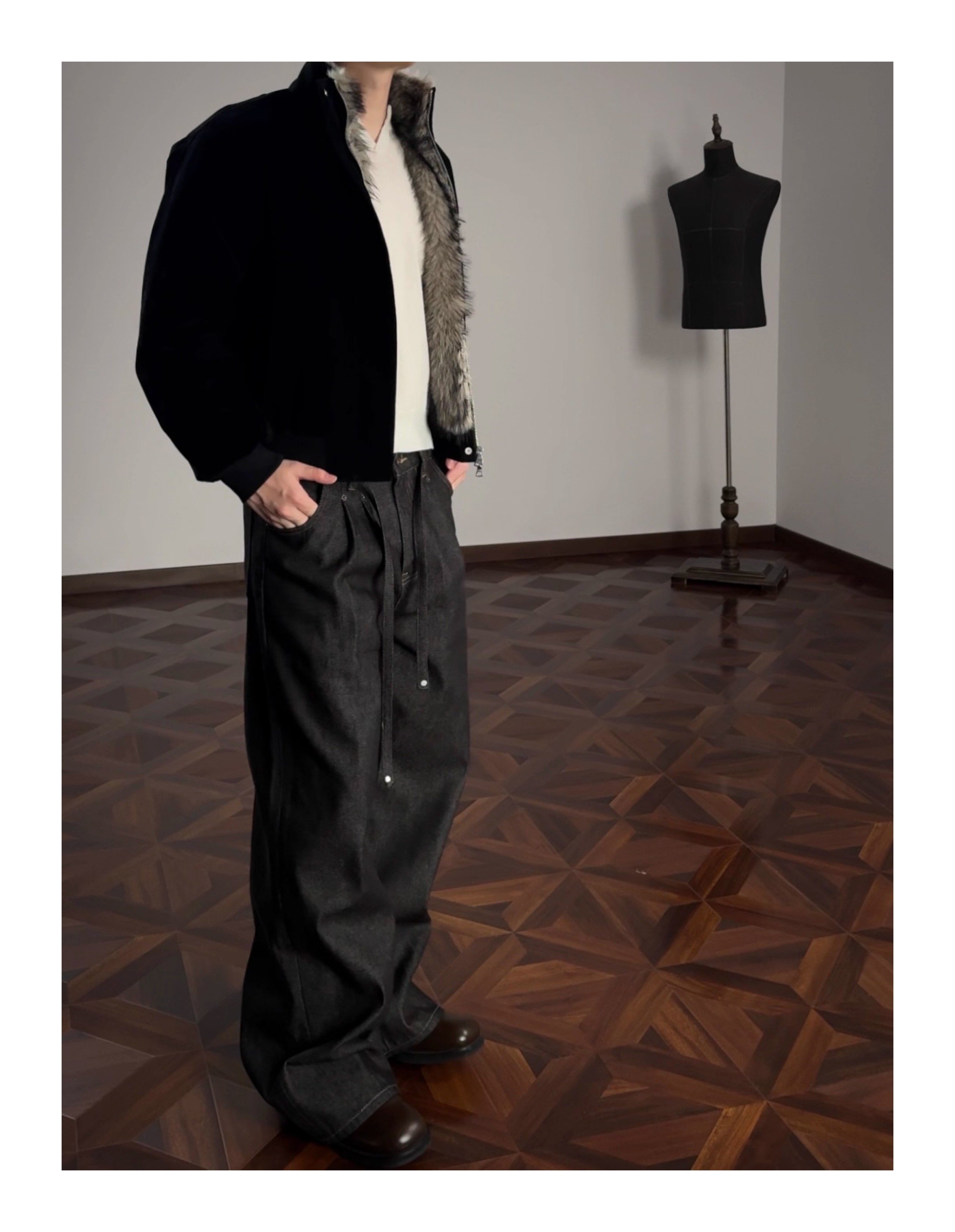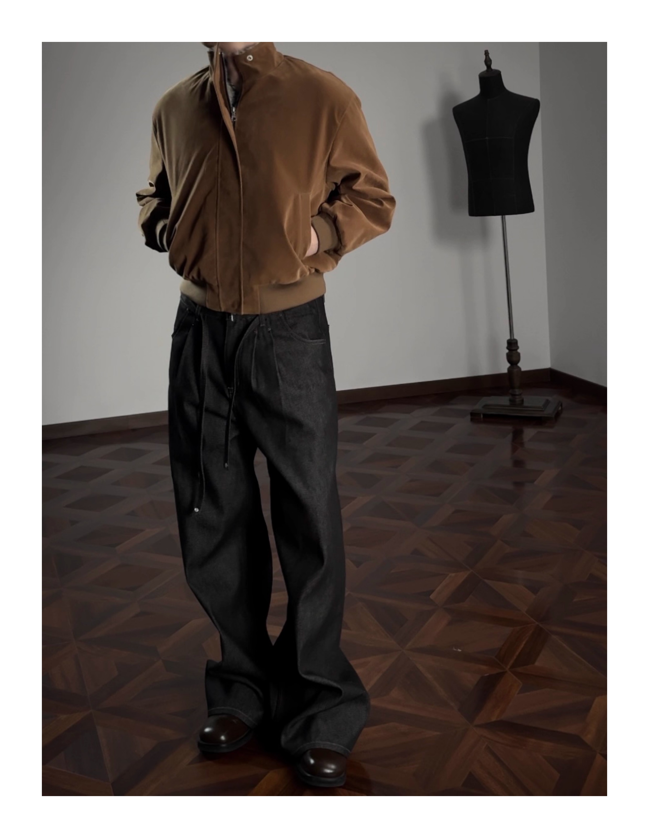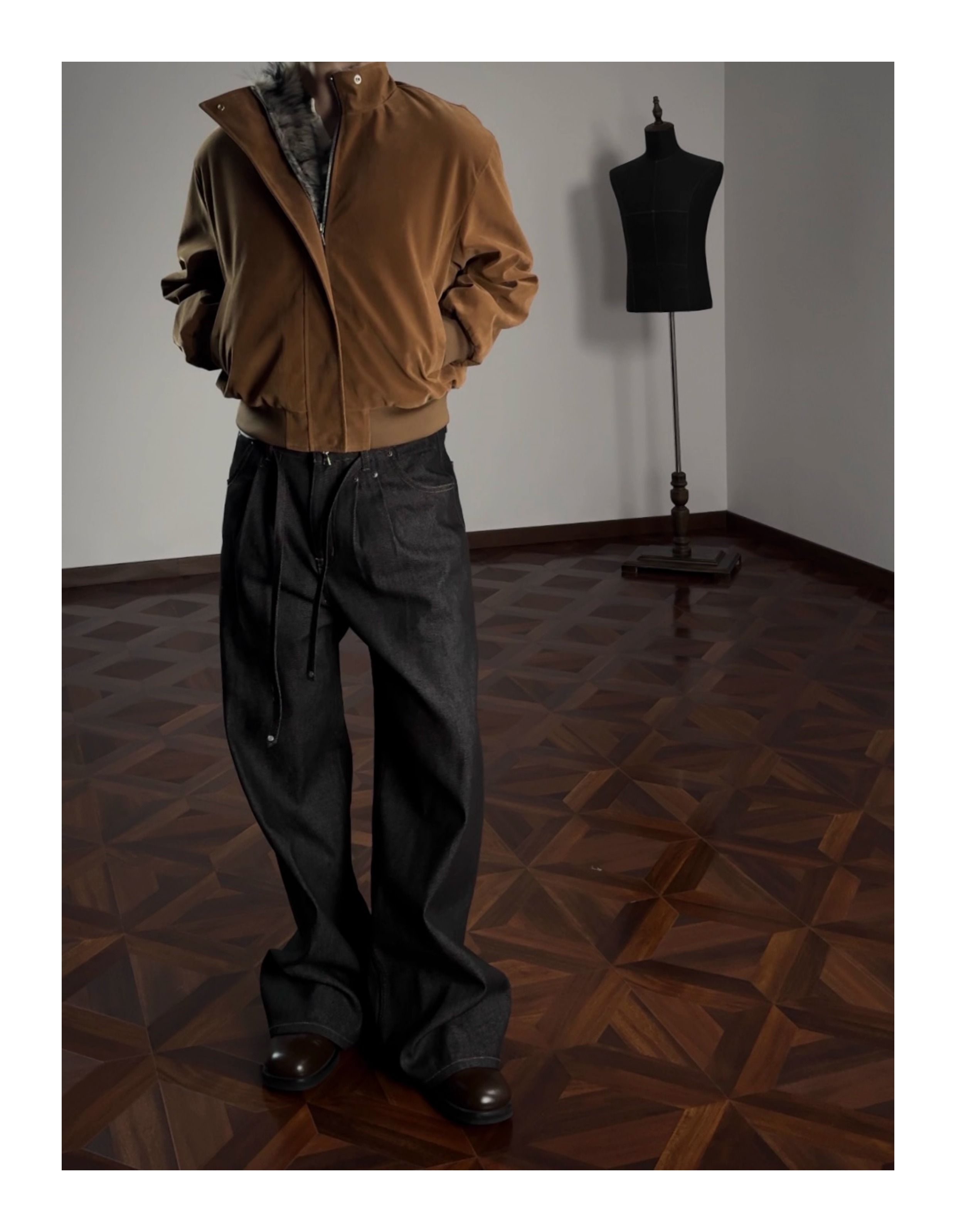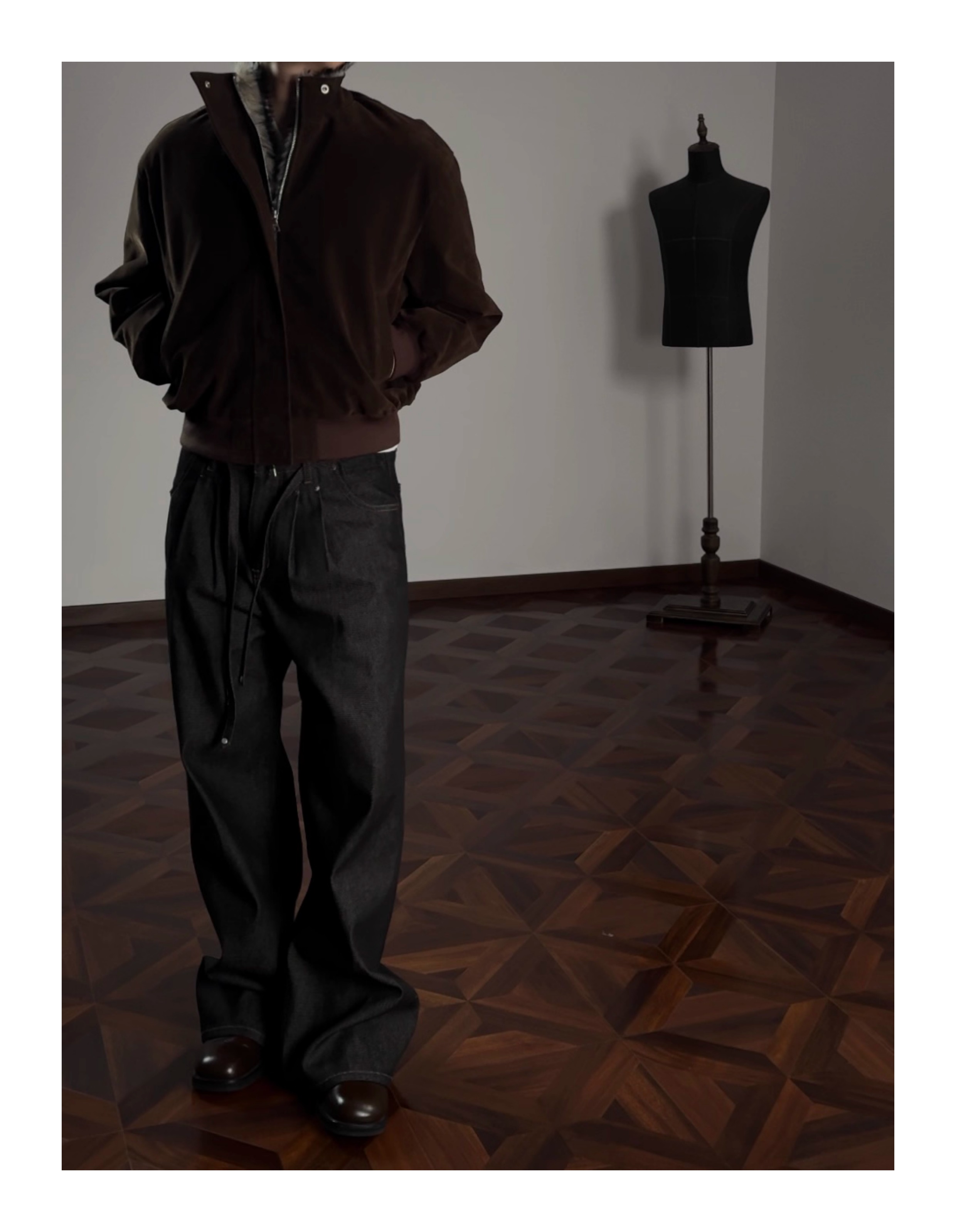 Oclin Hunting-Style Wolf King Jacket, Suede Leather, Mountain Eagle Design, Regular Shoulder, Slightly Oversized Silhouette, Diagonal Placket, Stand Collar, Unique Carved Design