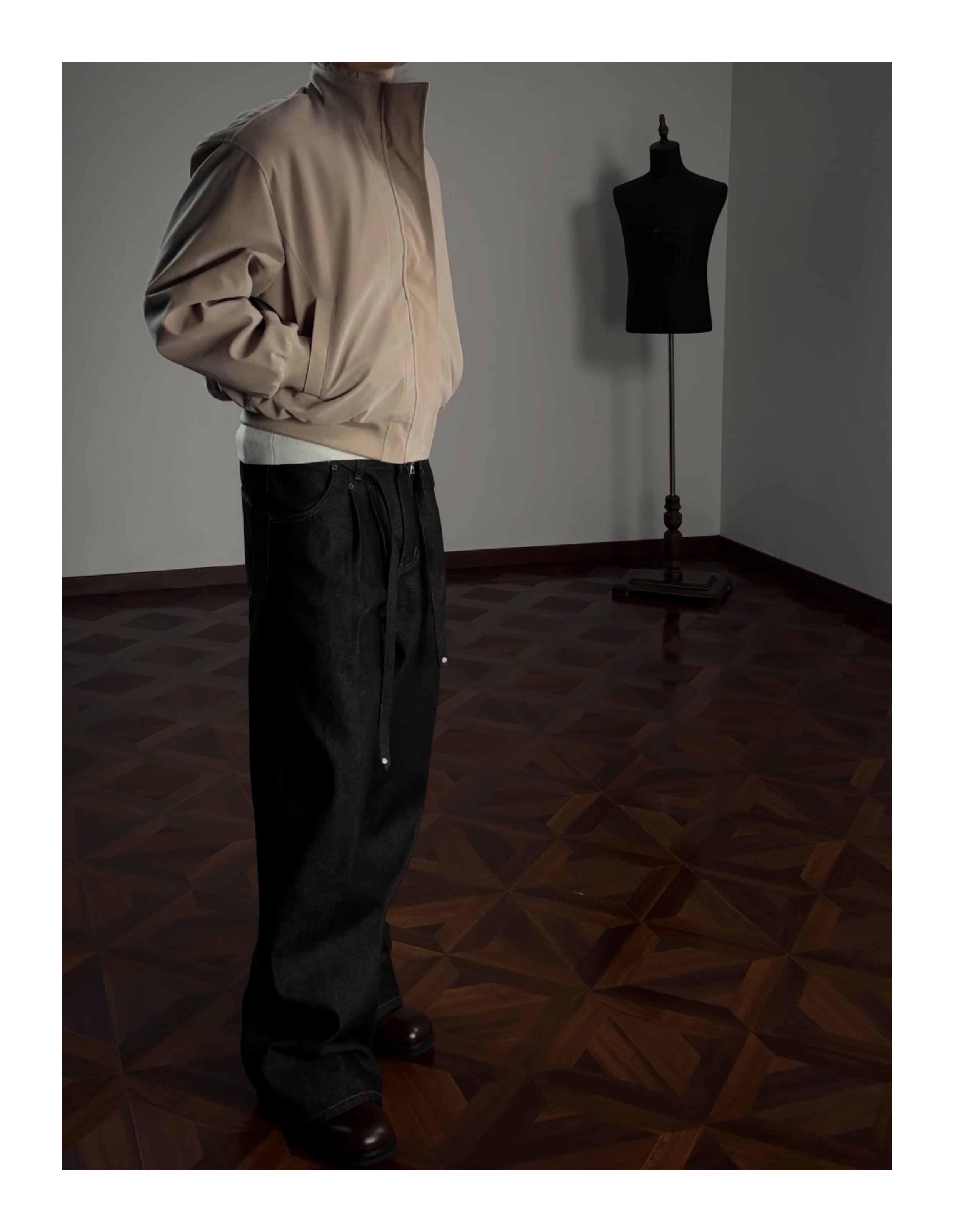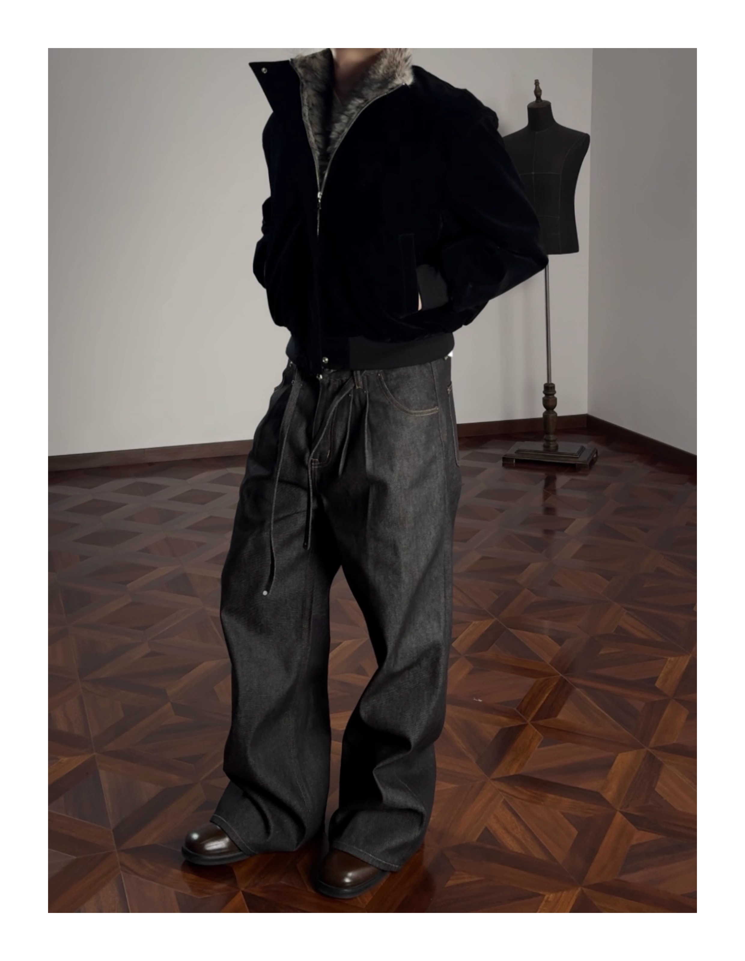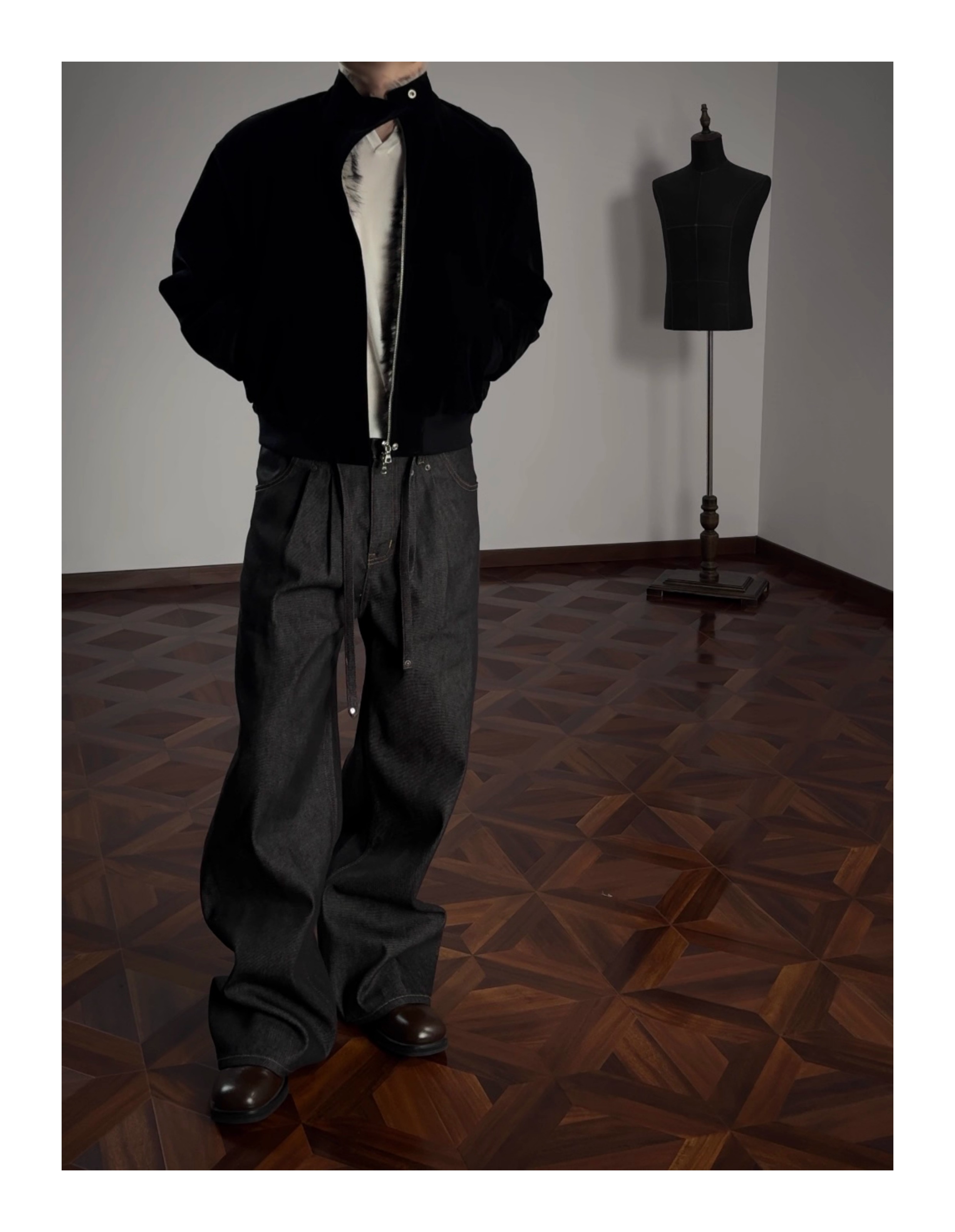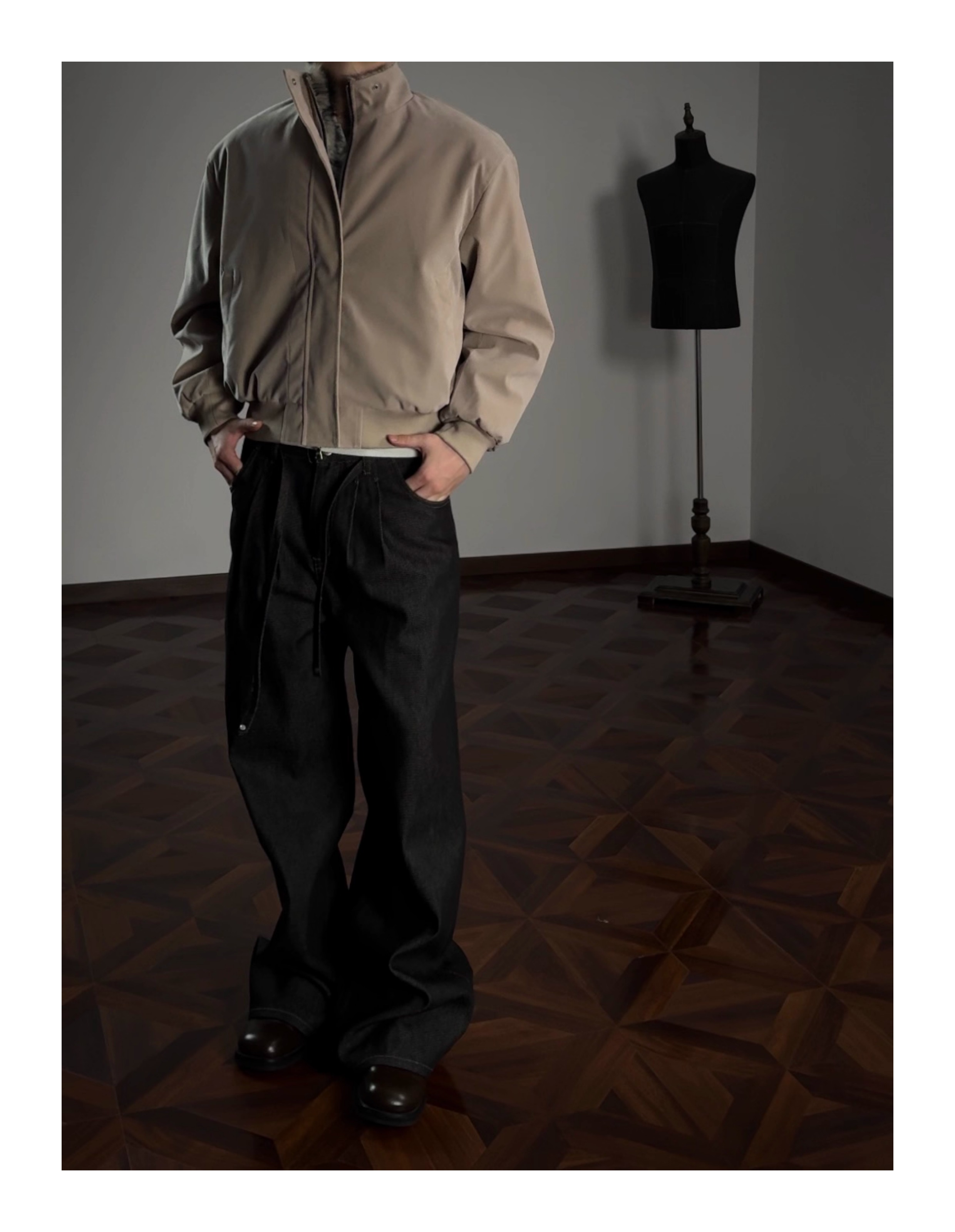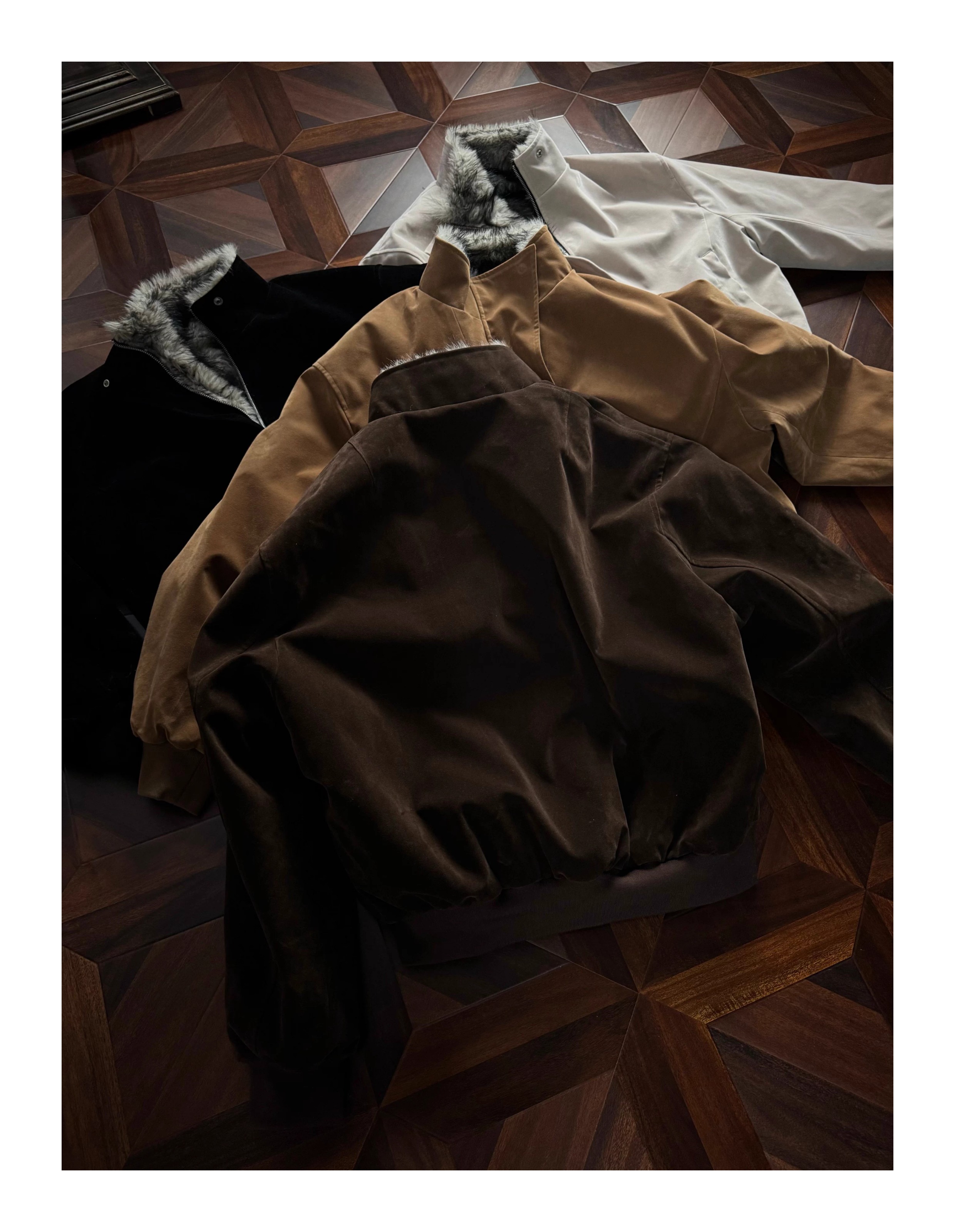 Oclin Hunting-Style Wolf King Jacket, Suede Leather, Mountain Eagle Design, Regular Shoulder, Slightly Oversized Silhouette, Diagonal Placket, Stand Collar, Unique Carved Design