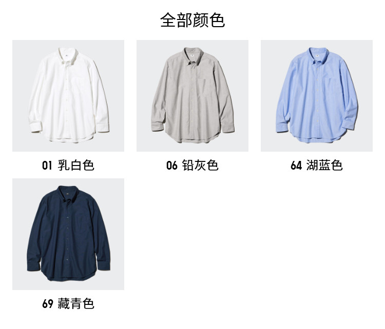 Priority Express Uniqlo Men's and Women's Oxford Textile Shirts Long Sleeve Casual Solid Color Commuting Shirts 482445