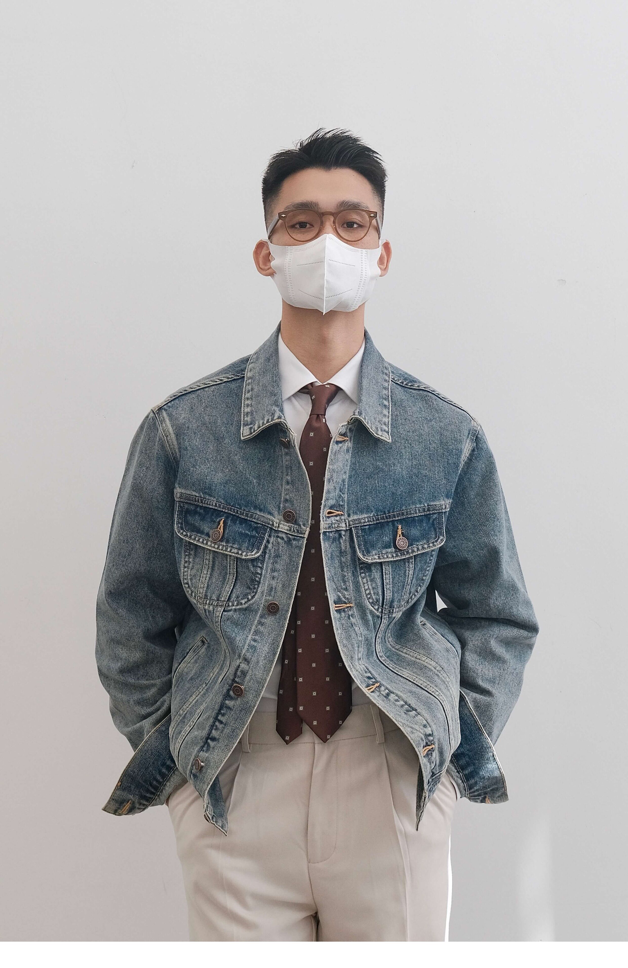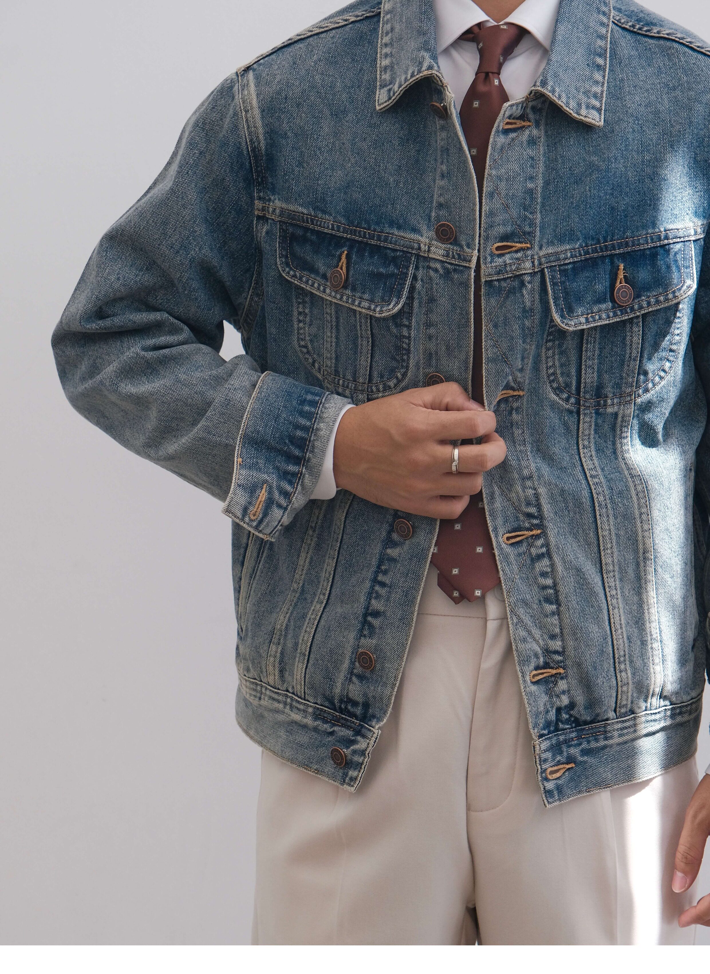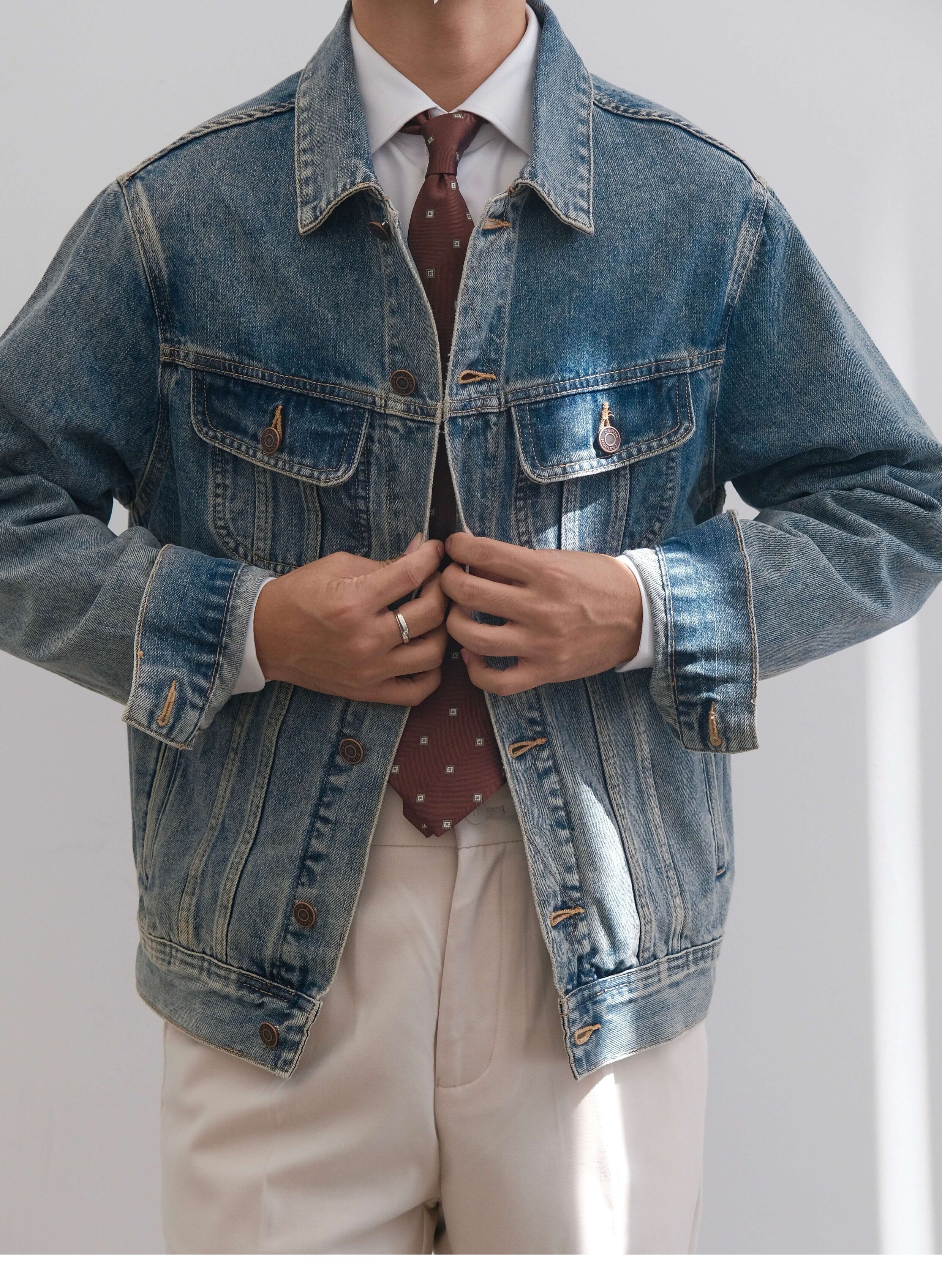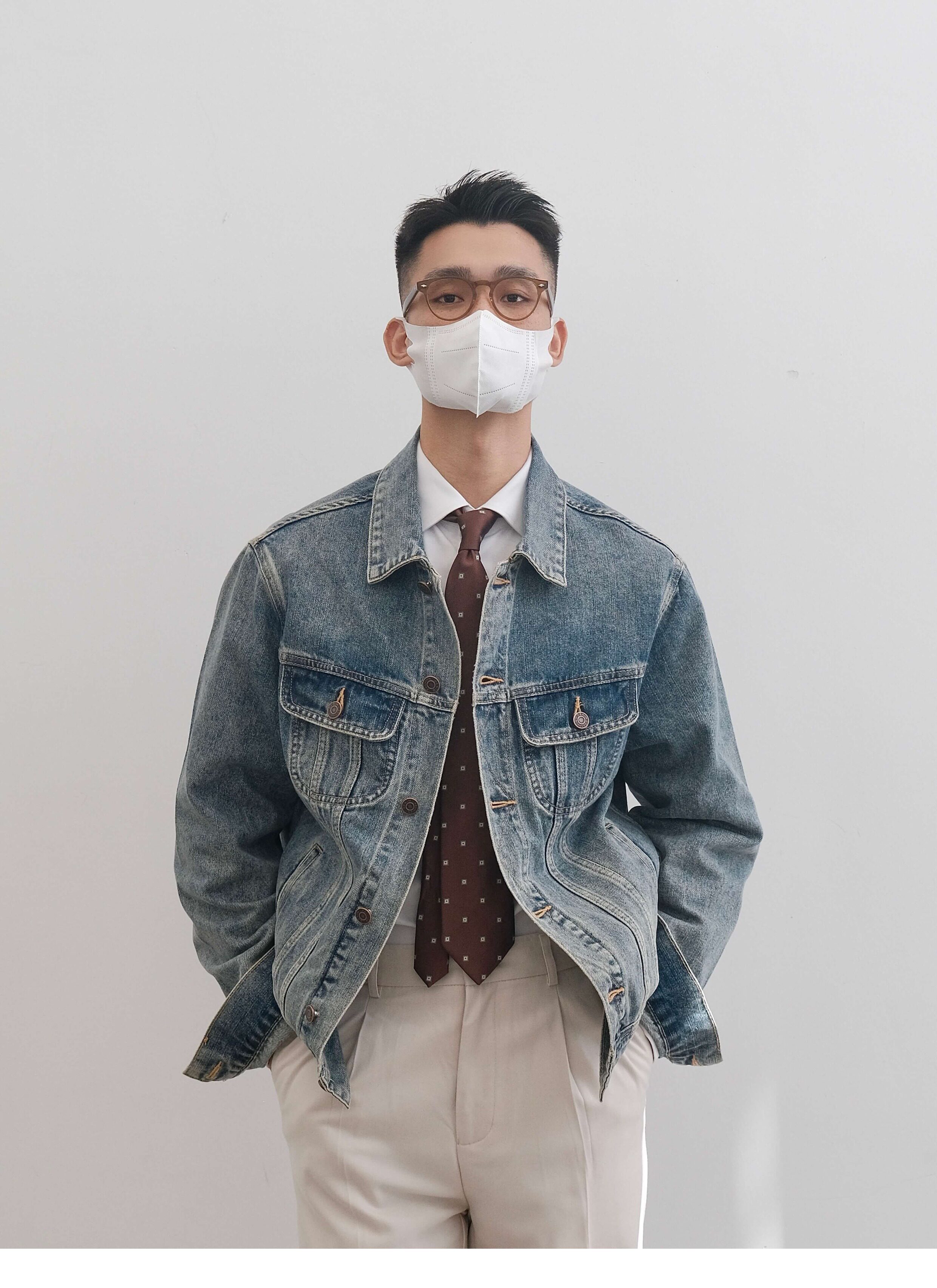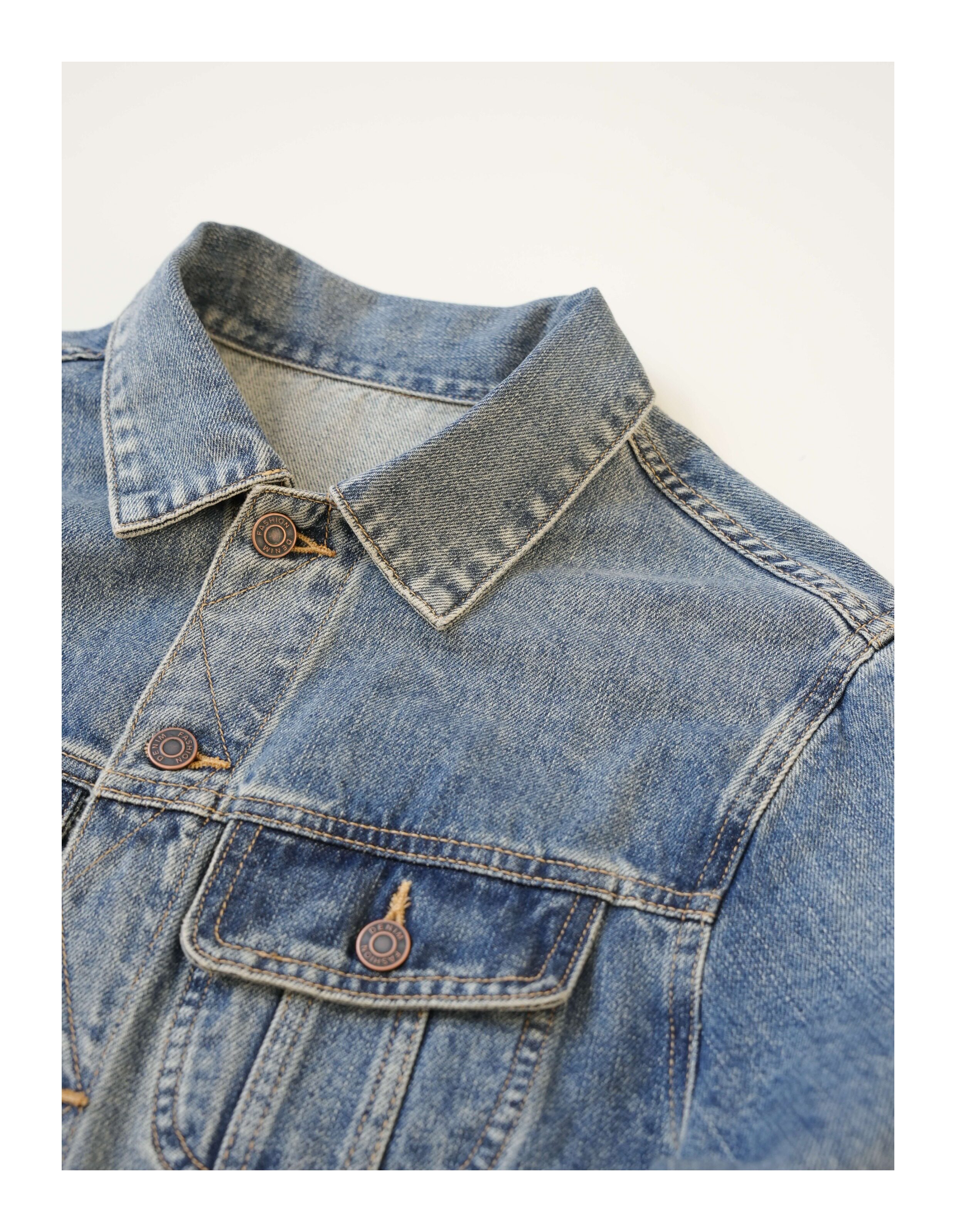He Qingcai/258135 Autumn and Winter New Heavy-Duty Washed and Distressed Denim Jacket for Men, American Retro Workwear Jacket