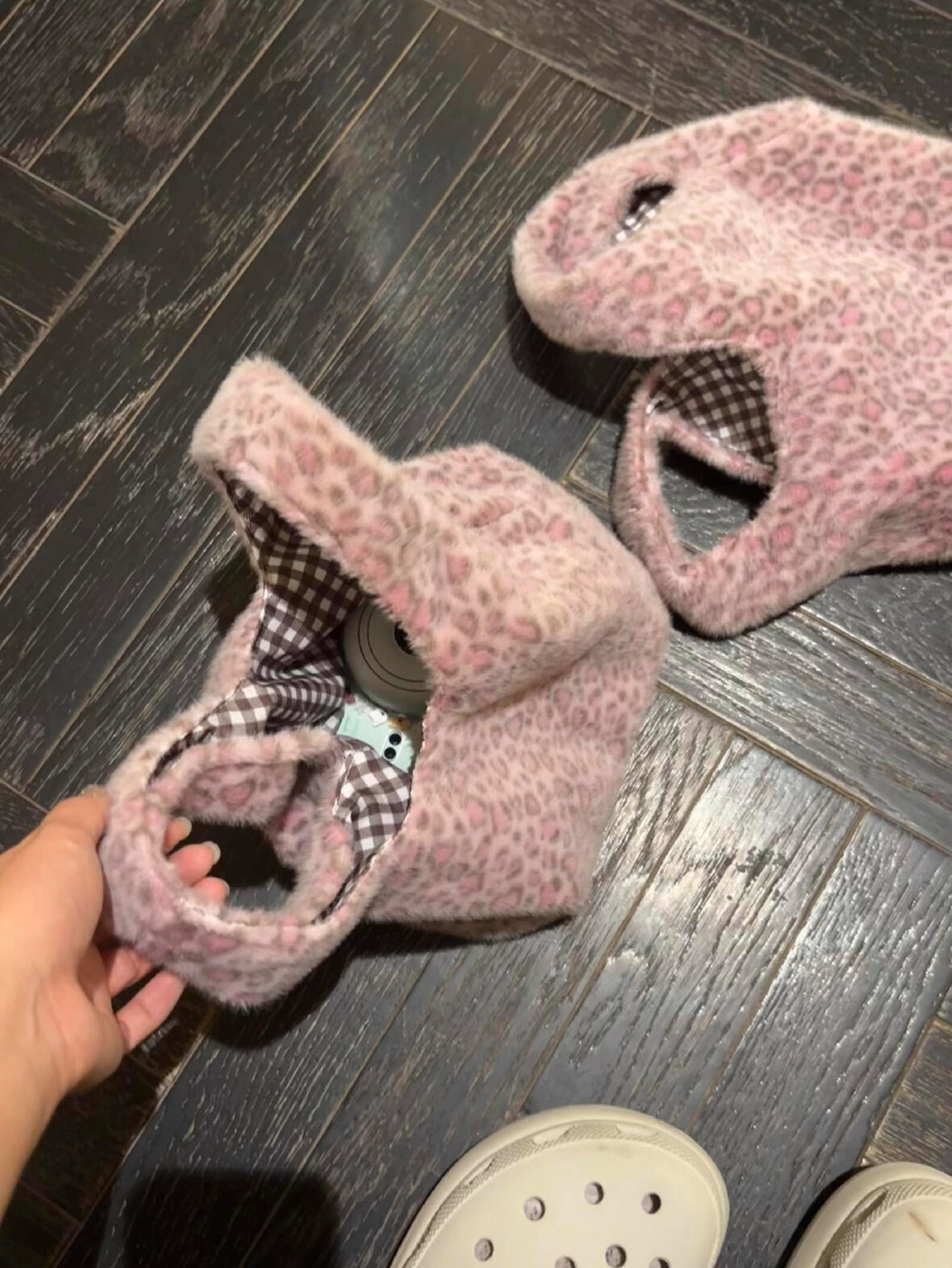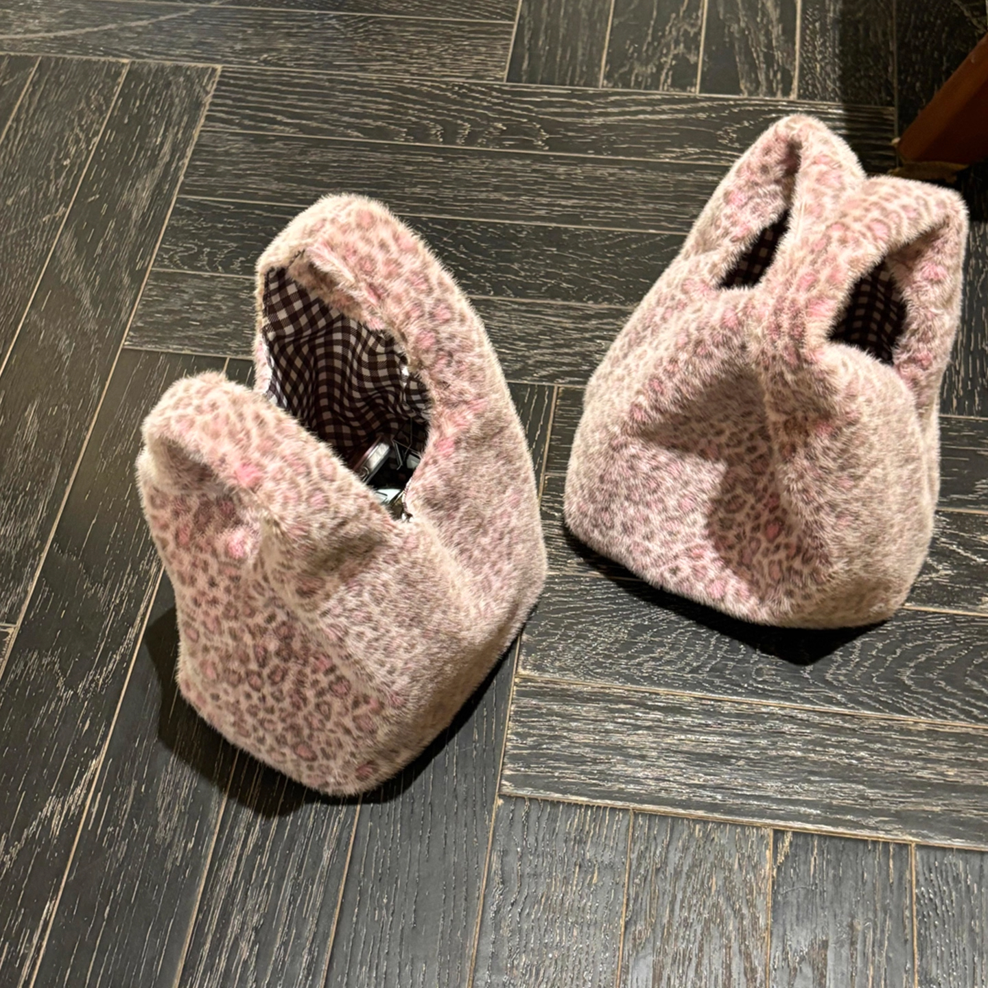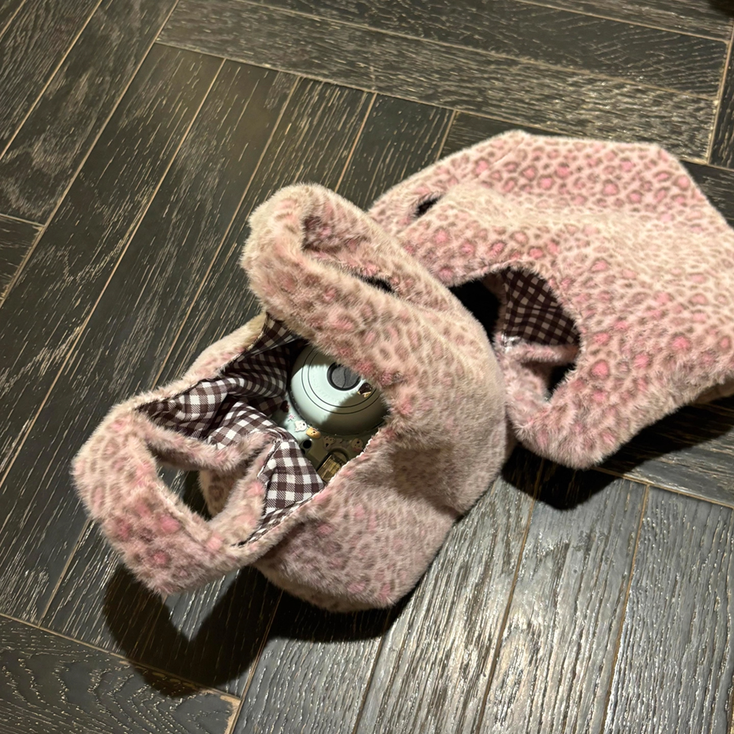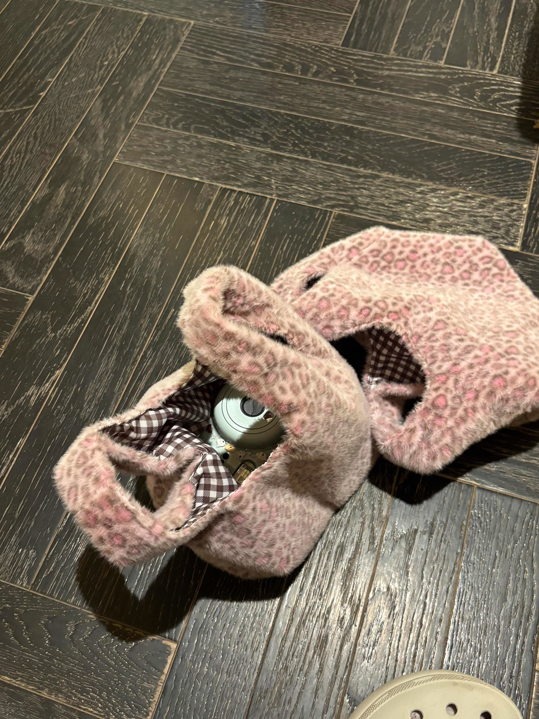 Autumn and Winter New Plush Purple Leopard Print Handbag, Commuter Casual Wrist Bag, Work Miscellaneous Items, Small Handbag for Going Out