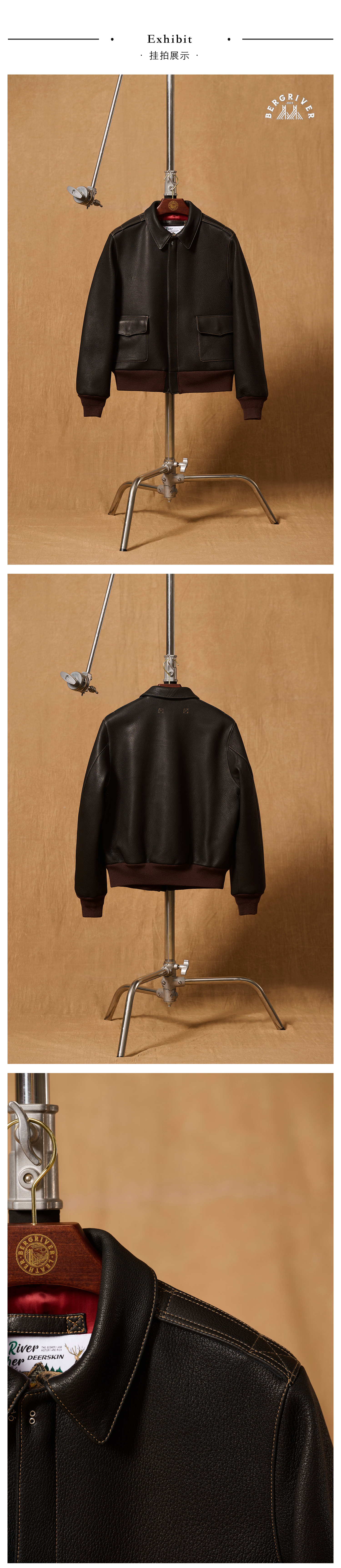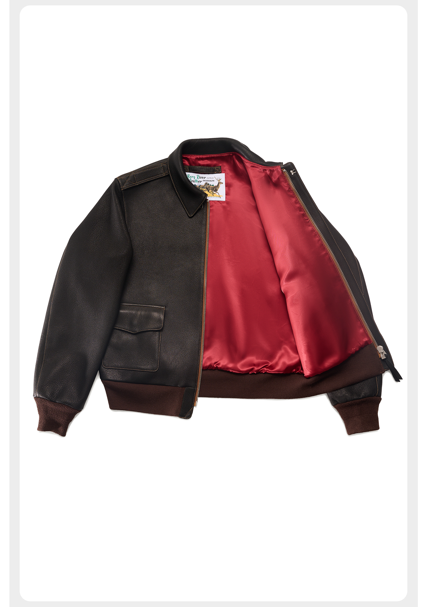 Berg River Is Selling 2.0 Thick Heavy-Duty North American Wild Deer Leather A2 Flight Jacket Short Leather Jacket in Stock
