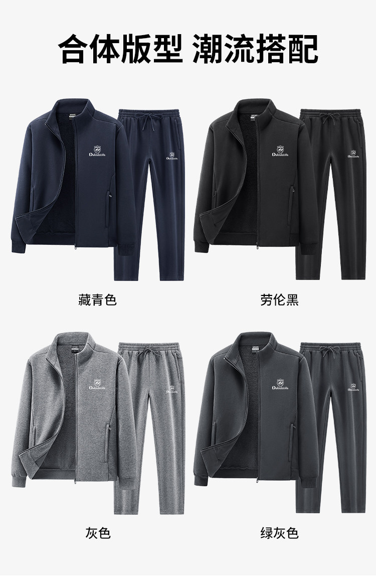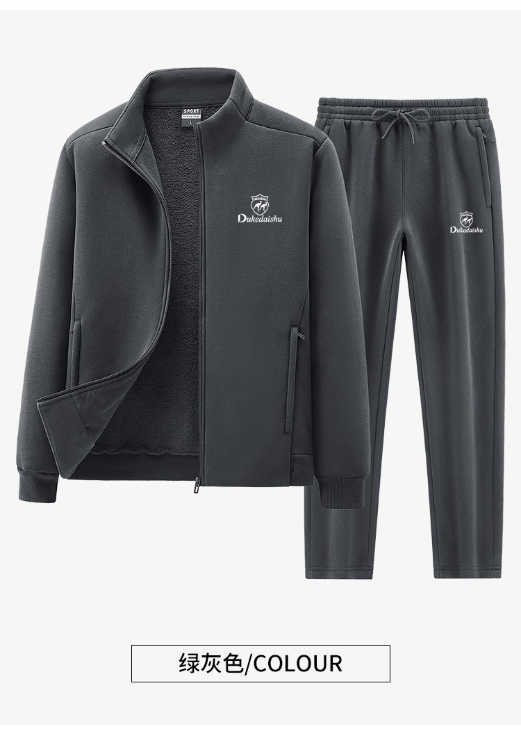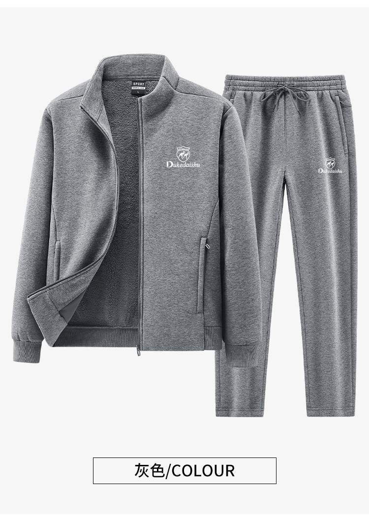 Men's High-End Brand Sportswear 2025 New Autumn and Winter Fleece-Lined Thickened Stand-Up Collar Lamb Wool Sports Suit for Men Trendy
