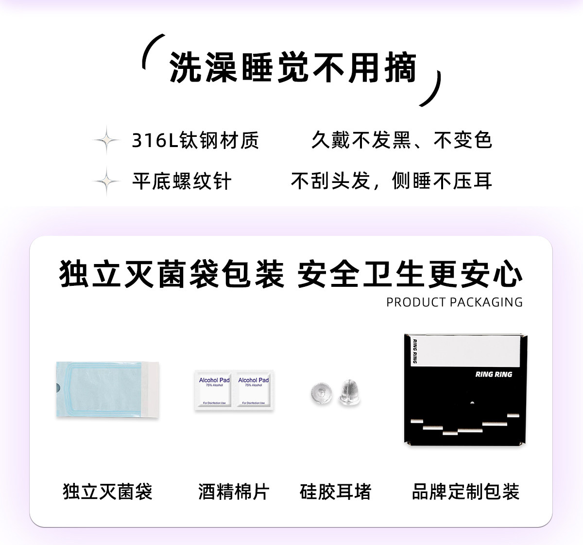 Ear Bone Stud 2mm Mini Pearl Stud for Ear Piercing, Medical Titanium Steel Cochlear Stud, Flat-Bottomed Exquisite High-End Ear Jewelry