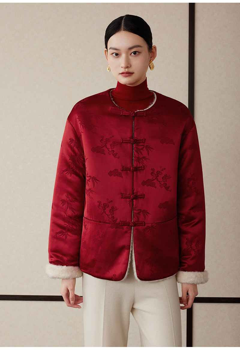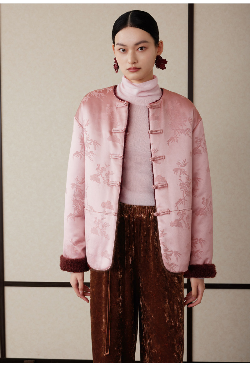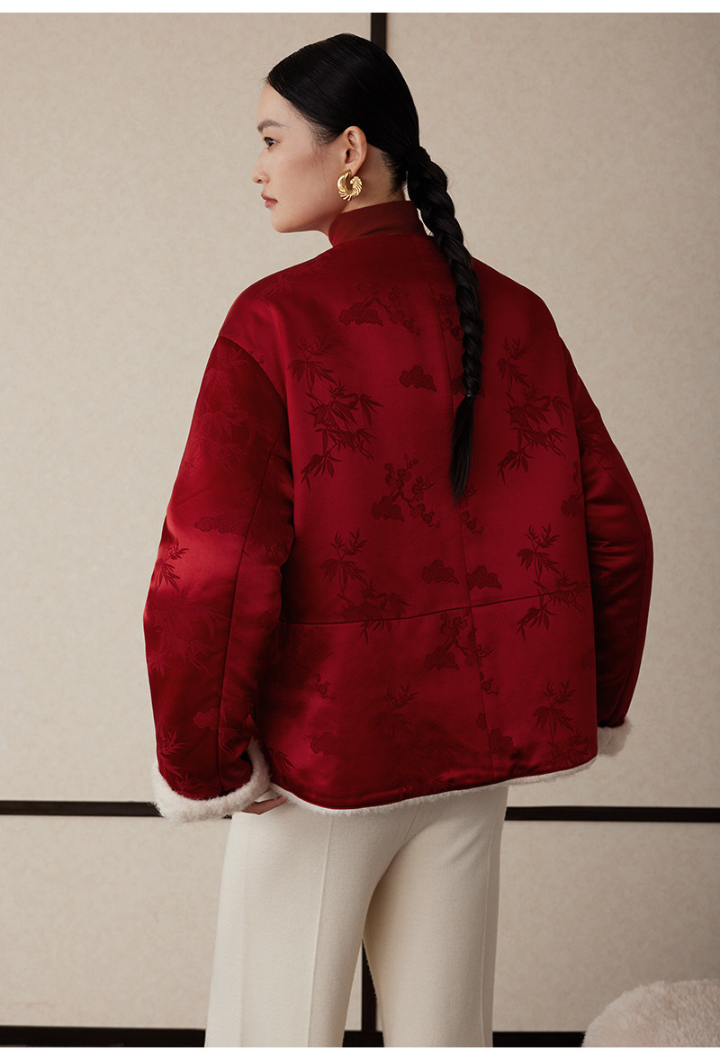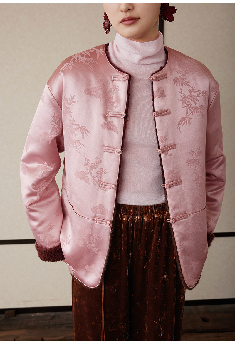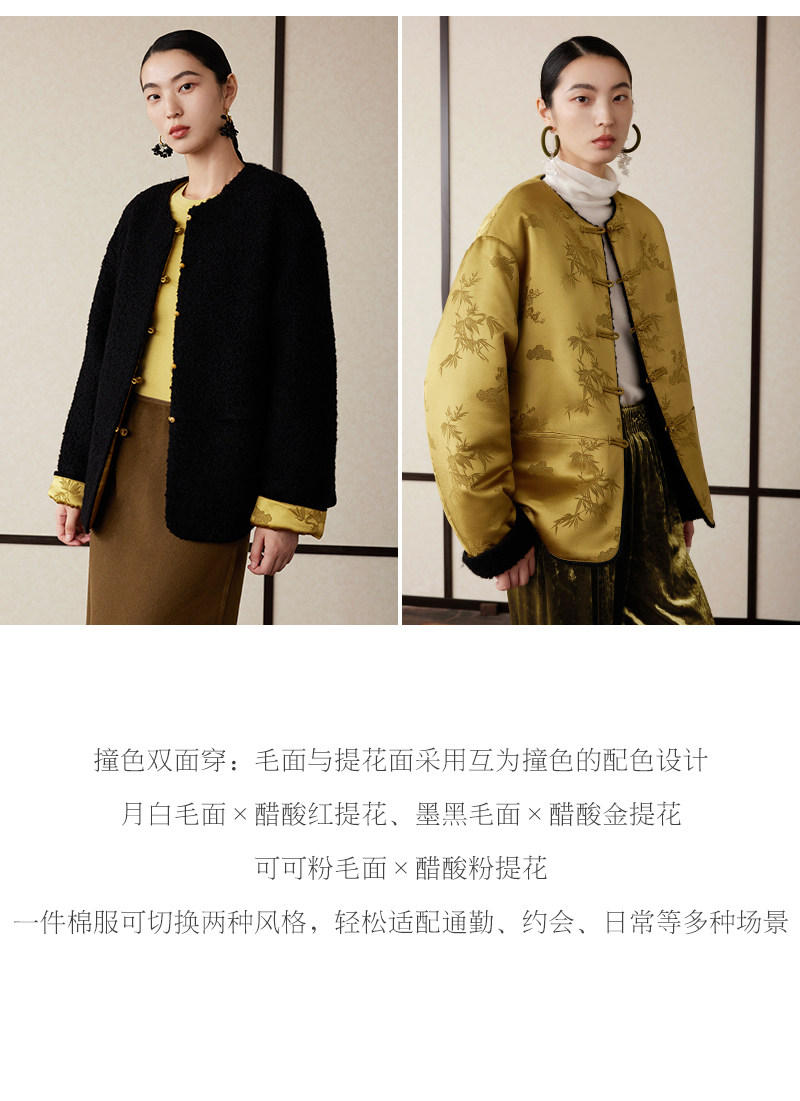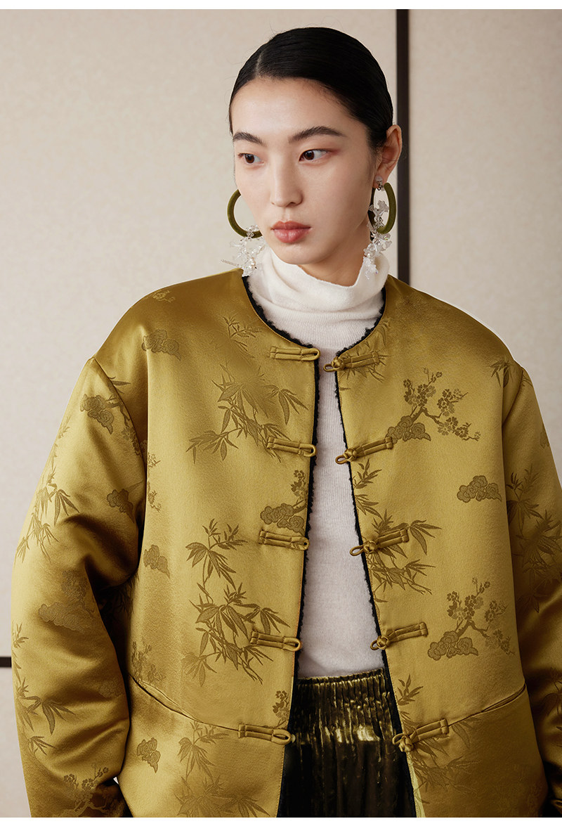 Ruiyi Lianyun*Song Jia's Same Style*【Ruiji】Reversible Acetate Jacquard Cotton Jacket for Women, New Chinese Style Padded Coat