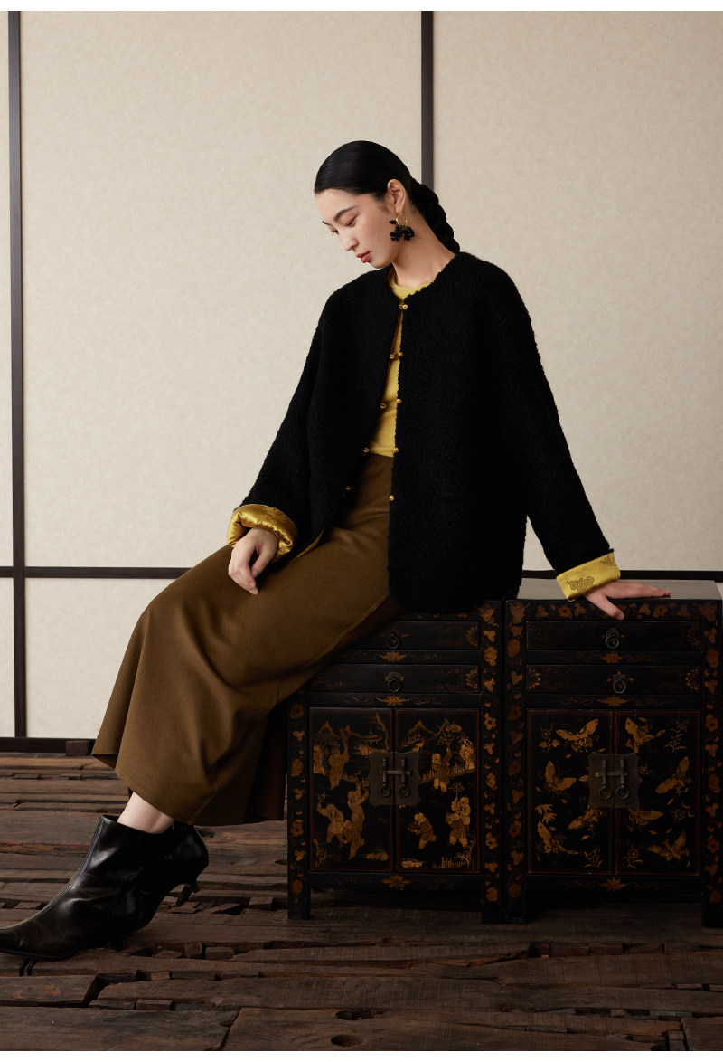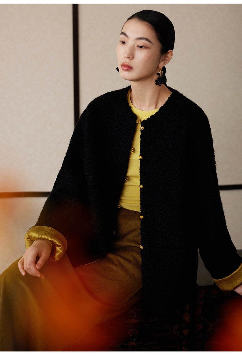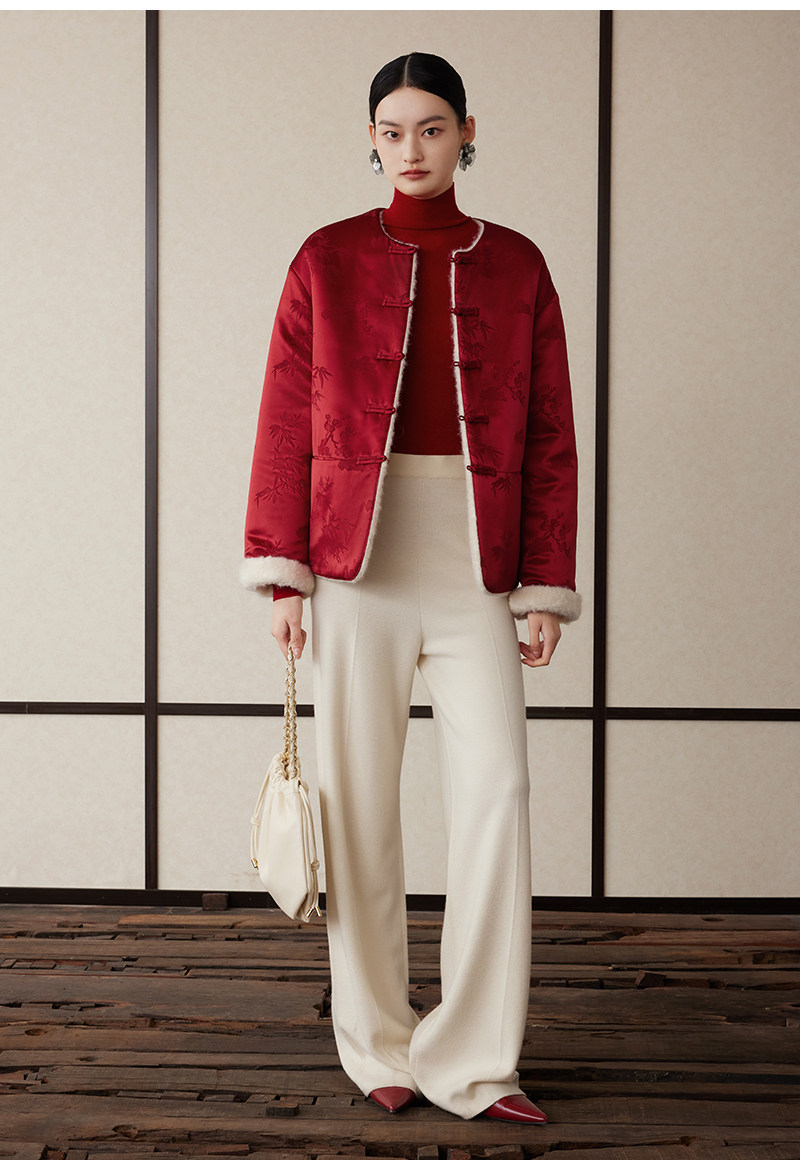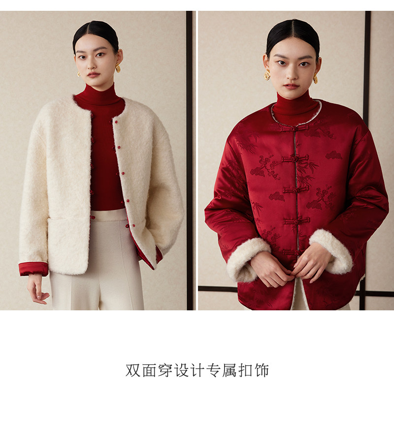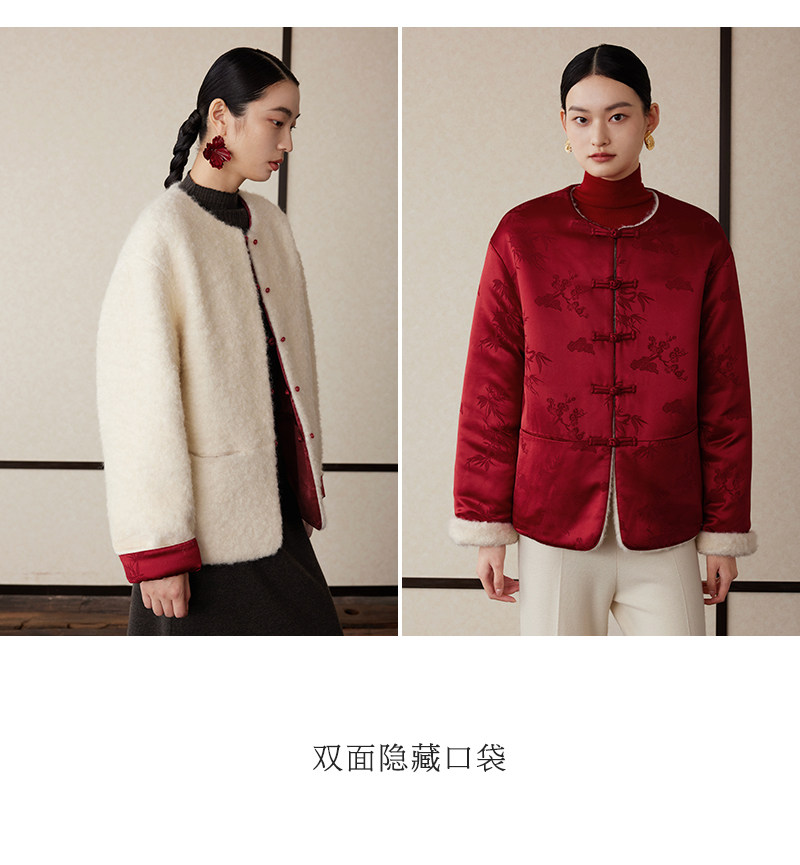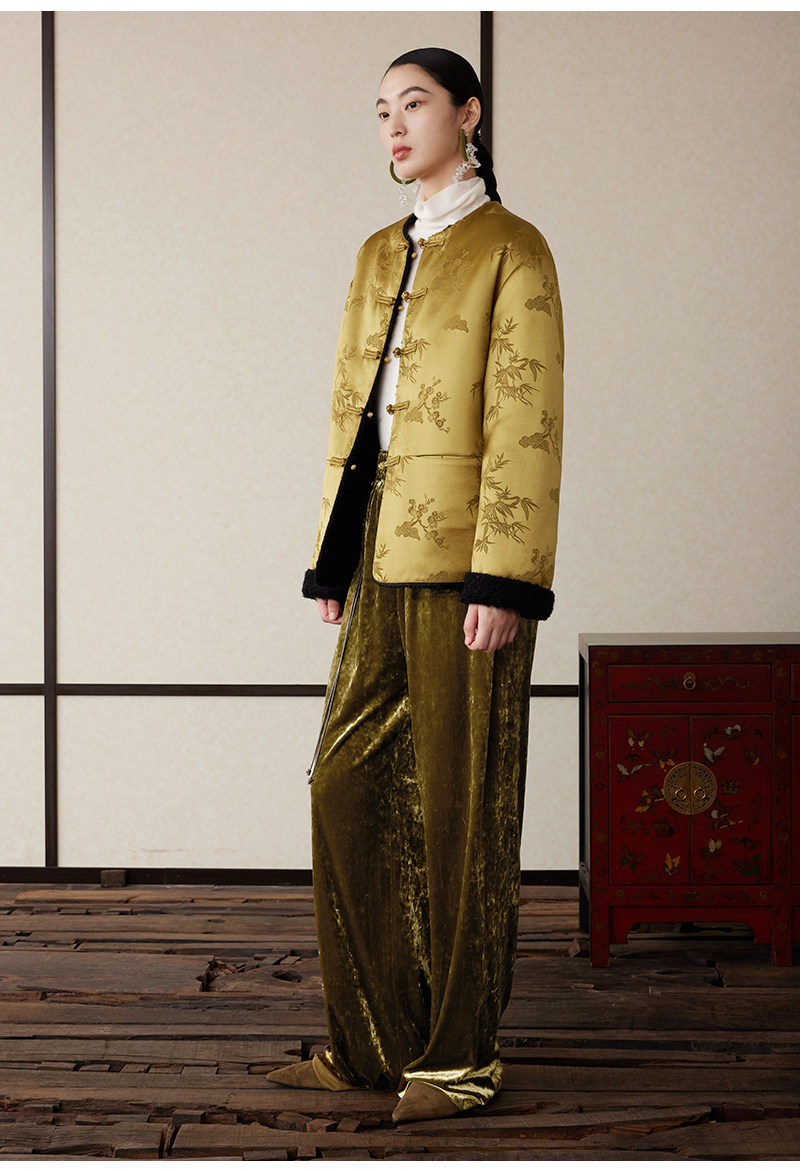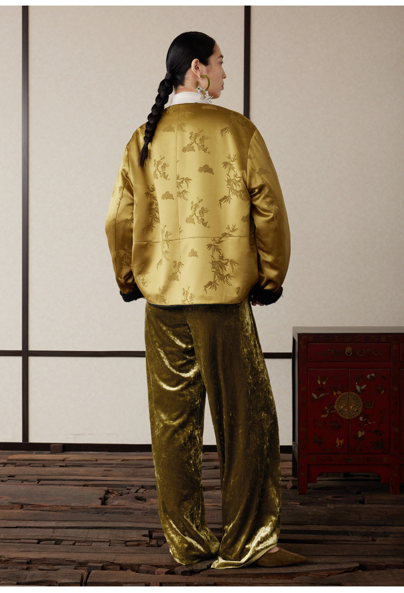 Ruiyi Lianyun*Song Jia's Same Style*【Ruiji】Reversible Acetate Jacquard Cotton Jacket for Women, New Chinese Style Padded Coat