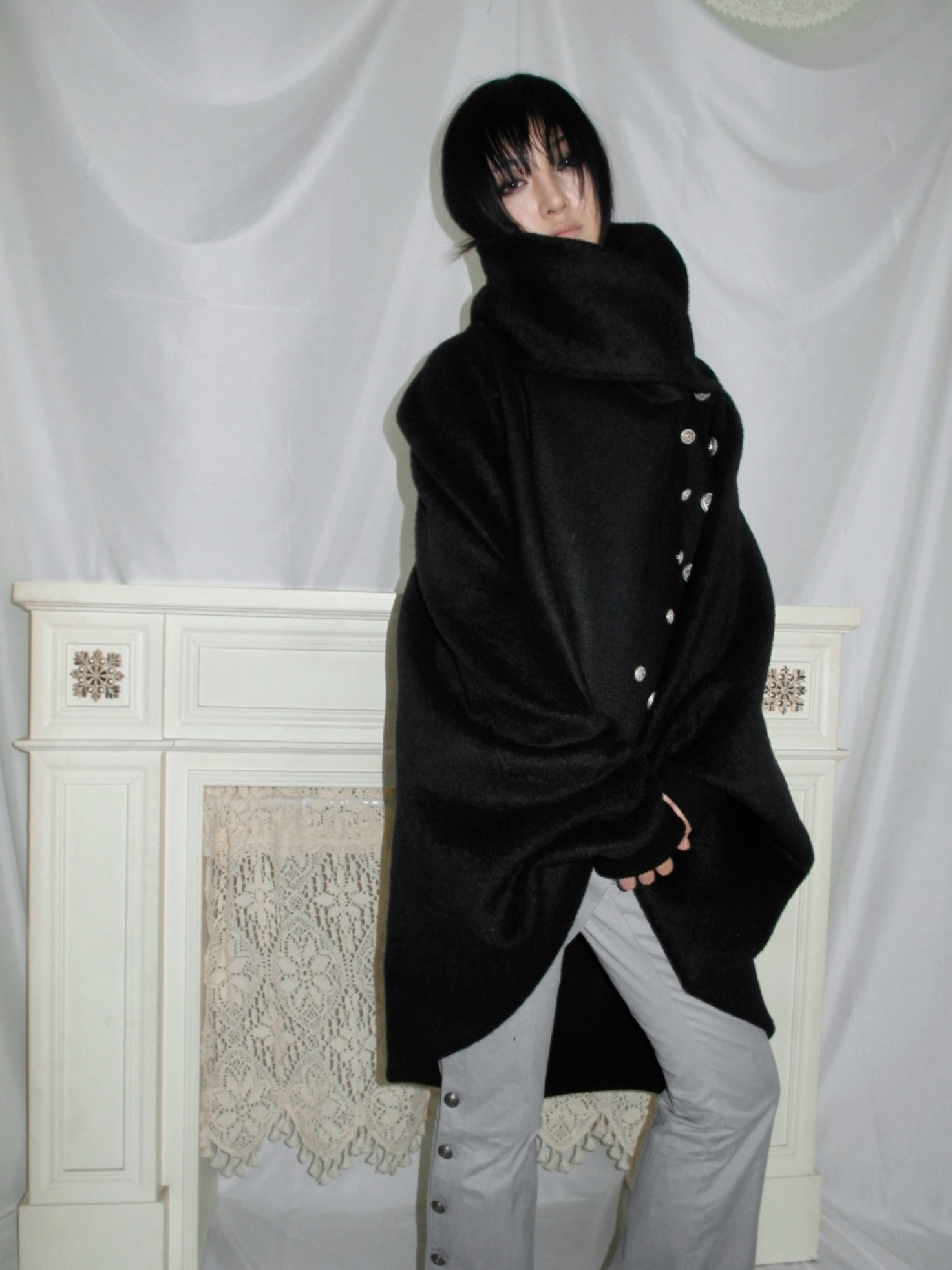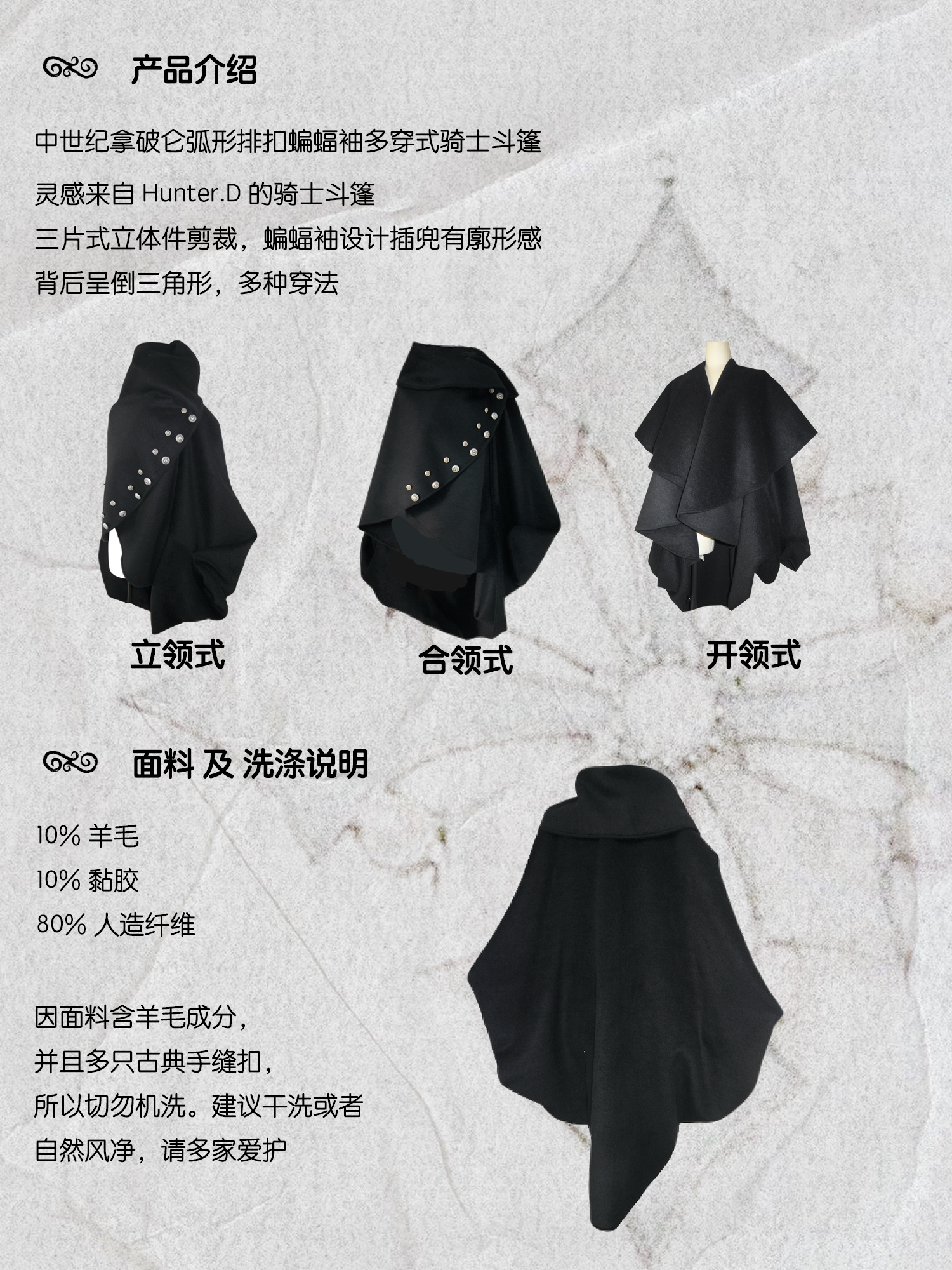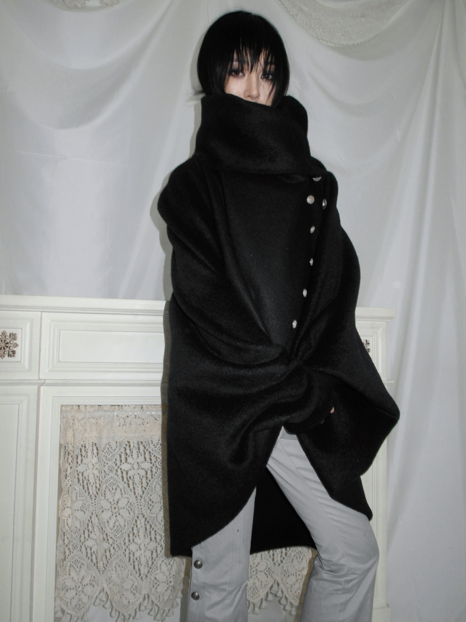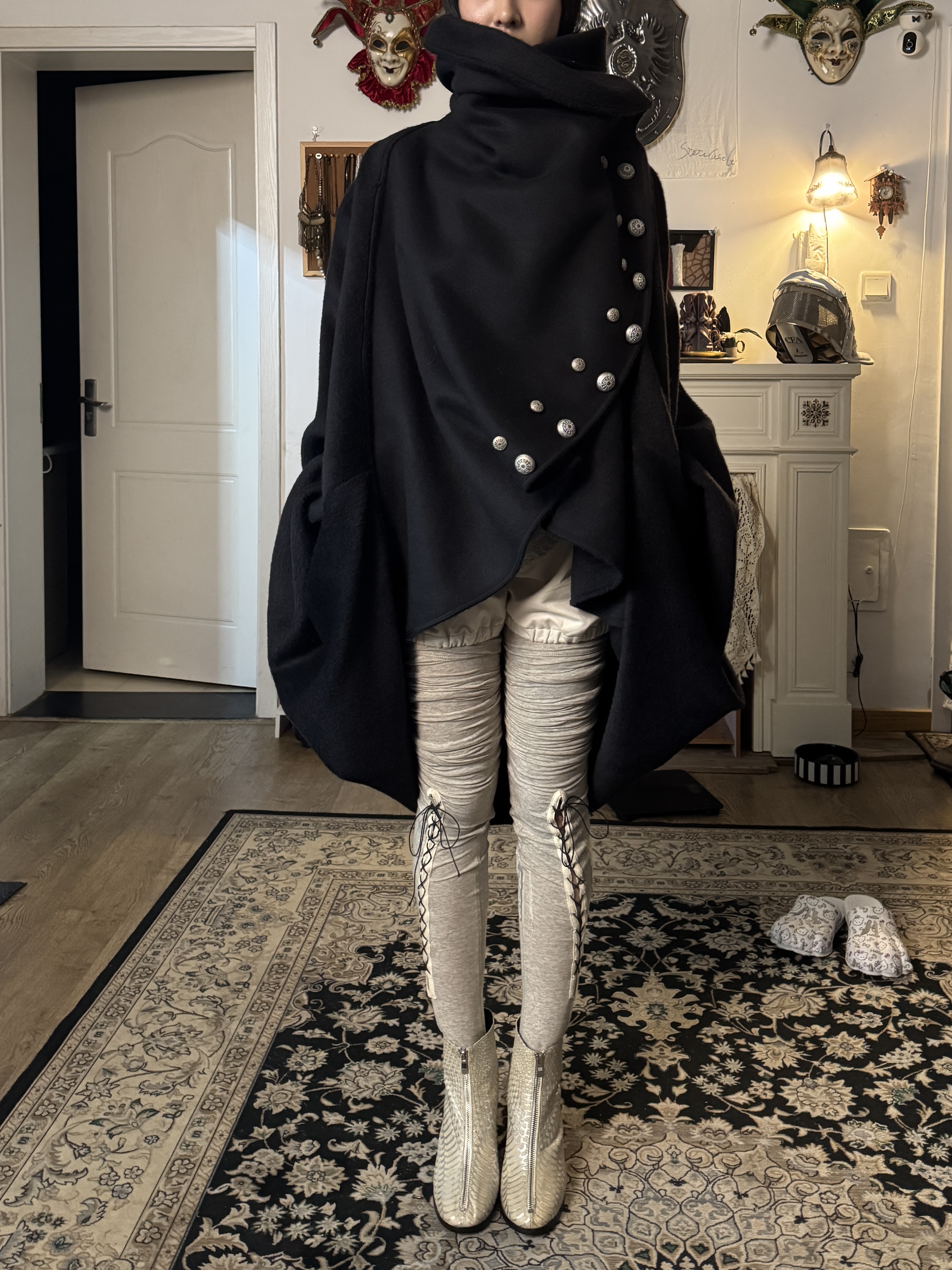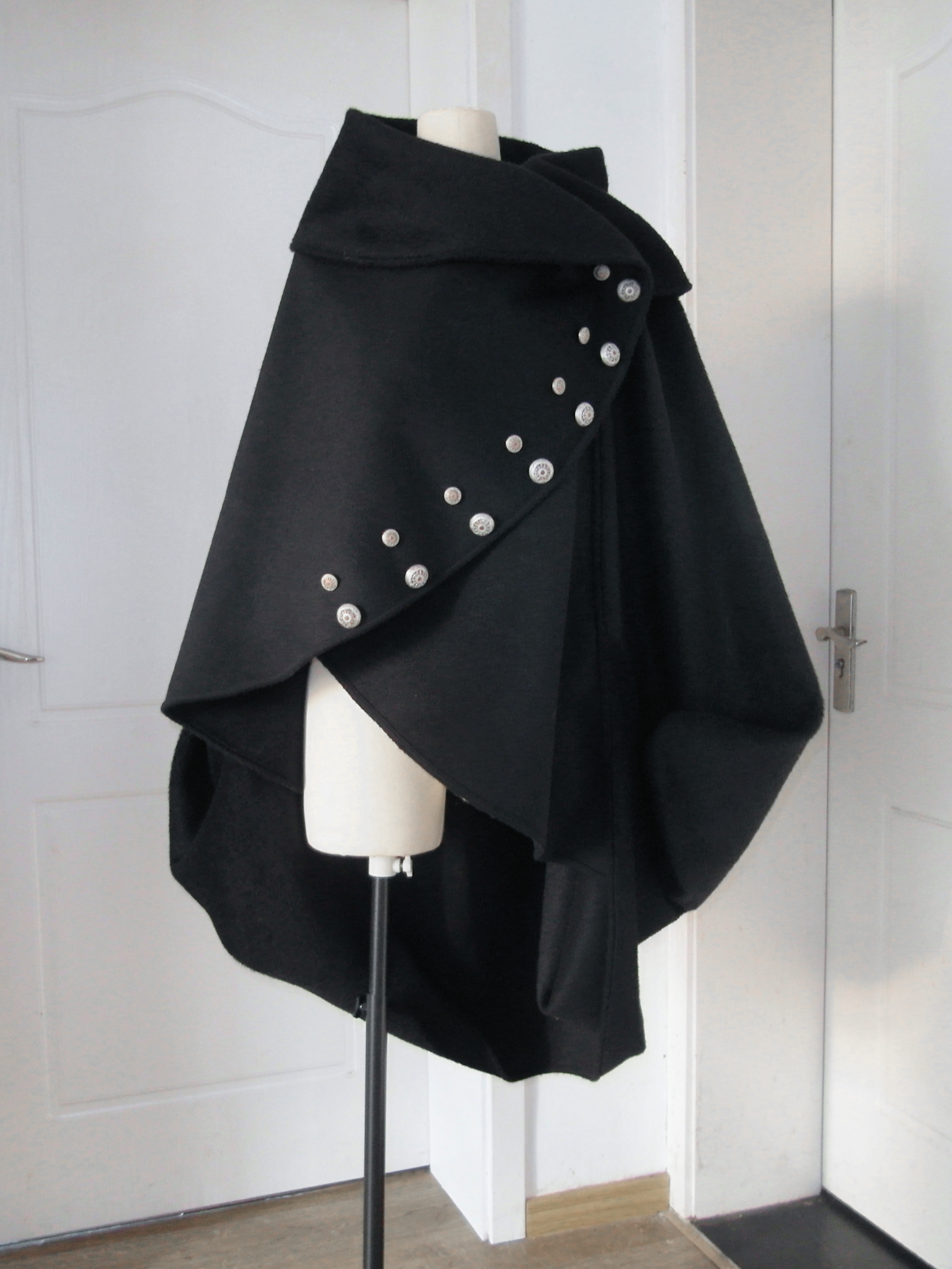 Snowcastle Medieval Napoleon-Style Buttoned Soft Wool-Blend Wrap-Around Multi-Wear Knight's Cloak Coat