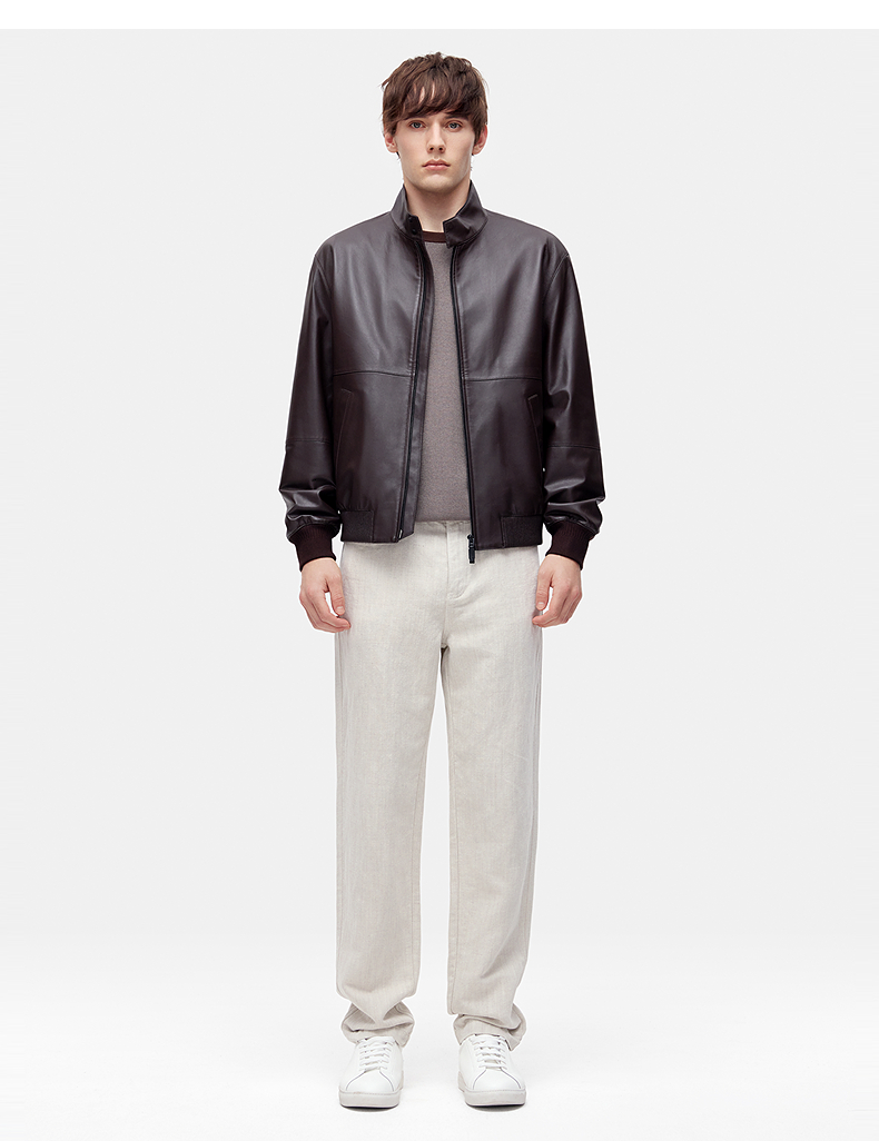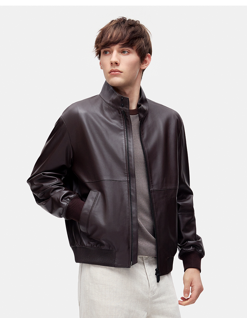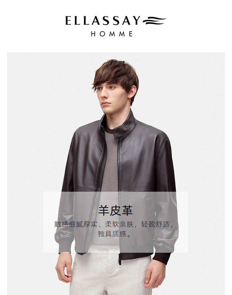 Ellassay Men's New Cotton Sheepskin Leather Stand-Up Collar Genuine Leather Jacket Eme371X00200