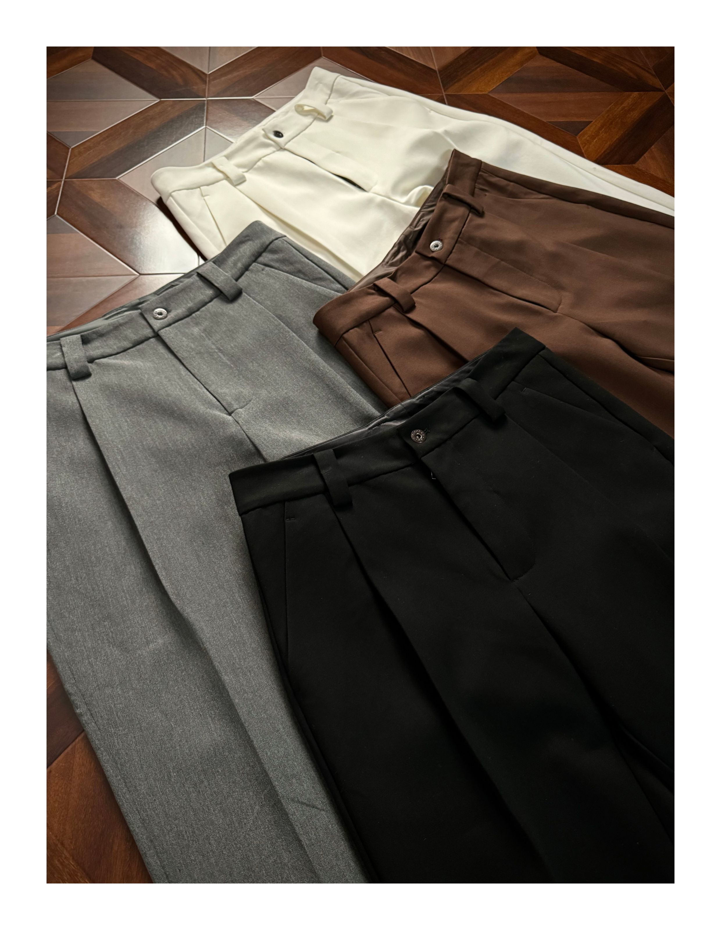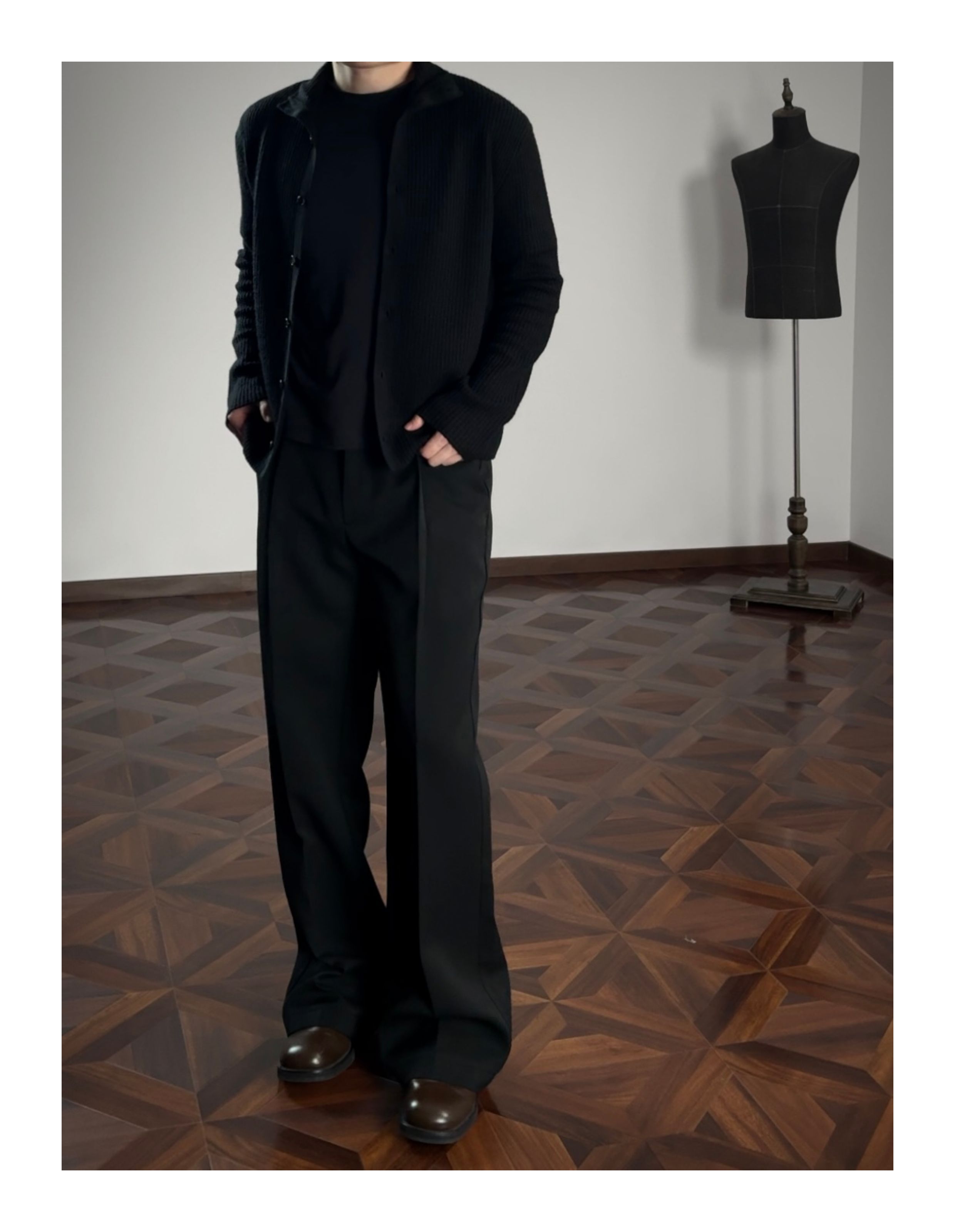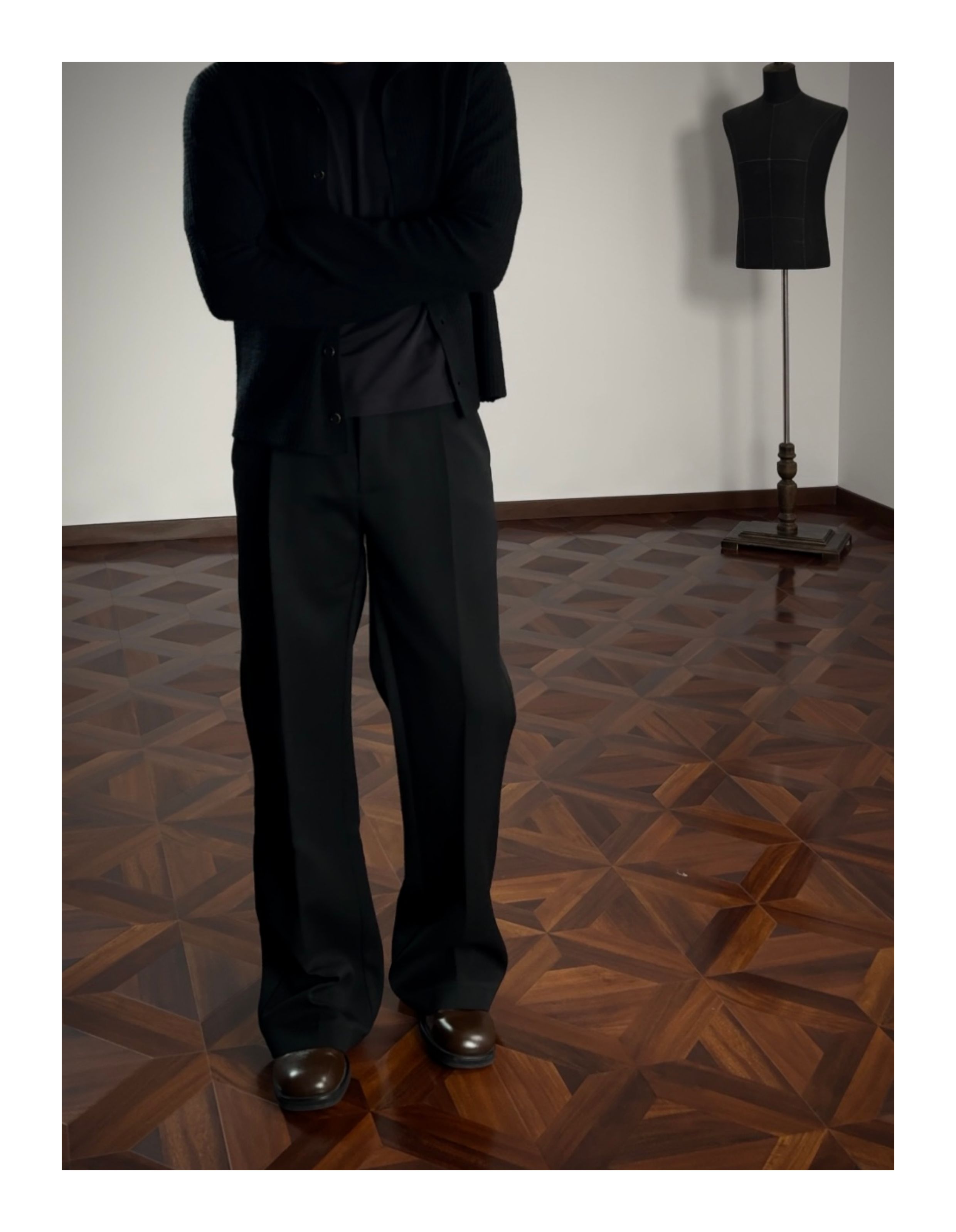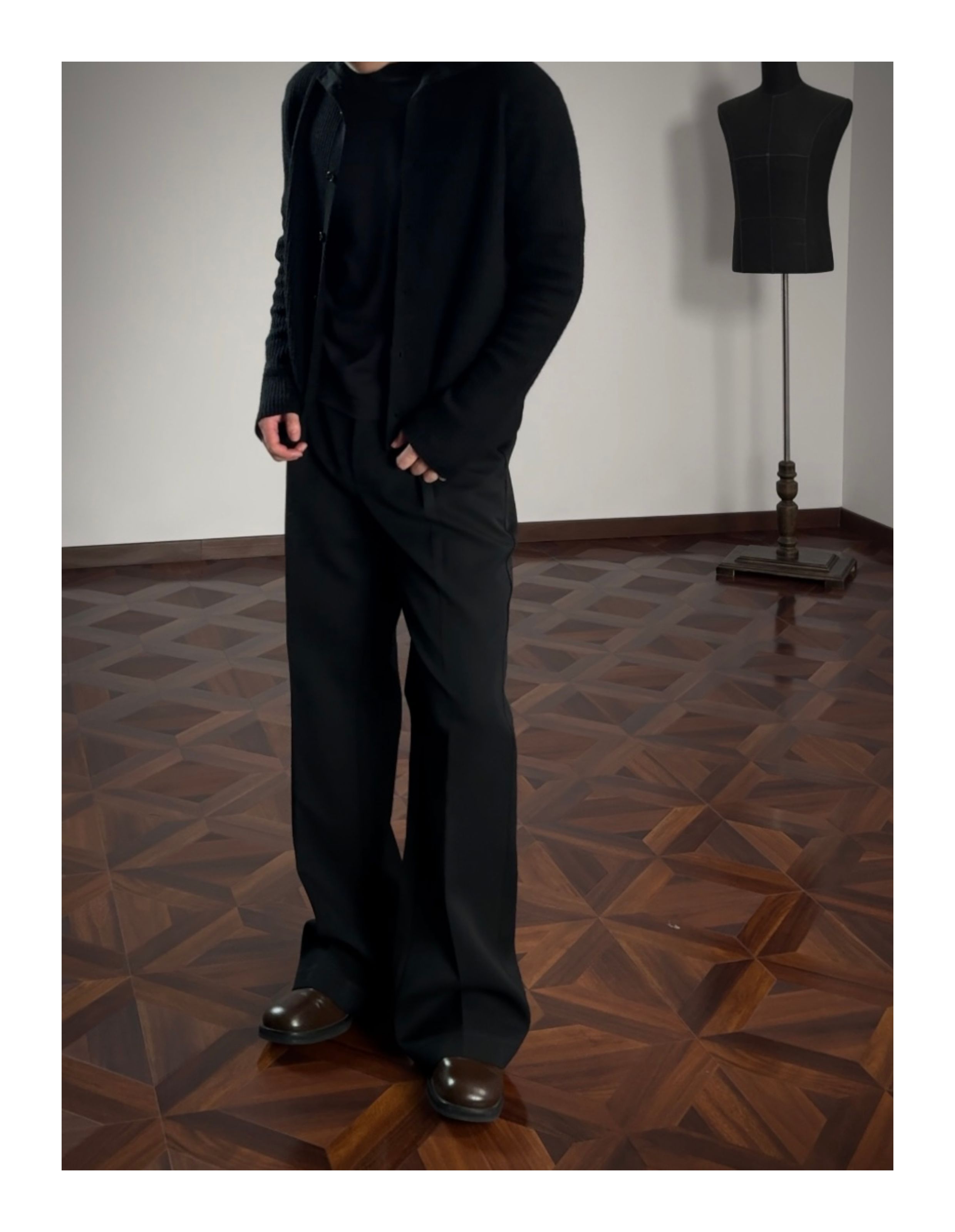 Oclin 646 Micro-Flared Trousers with Pleats, Three-Dimensional Center Seam, Loose Fit, Slightly Wide, Wrinkle-Resistant, Suitable for Commuting, Fully Hemmed Lining