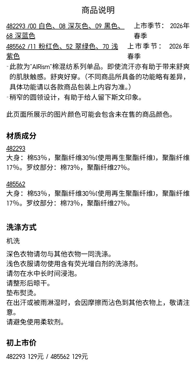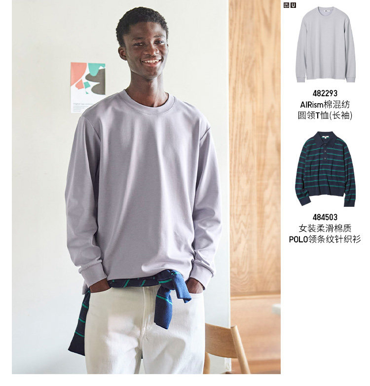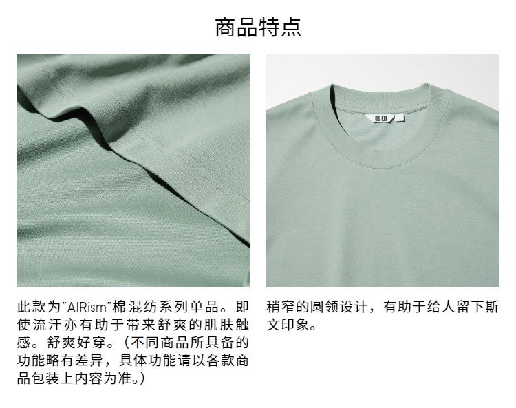 Priority Express Uniqlo Men's and Women's Airism Cotton Blend Crew Neck T-Shirt/Long Sleeve 482293 485562
