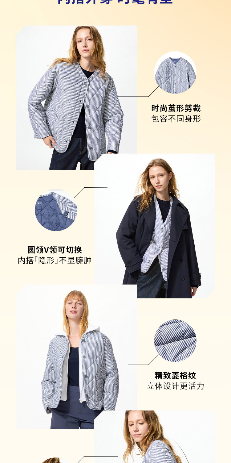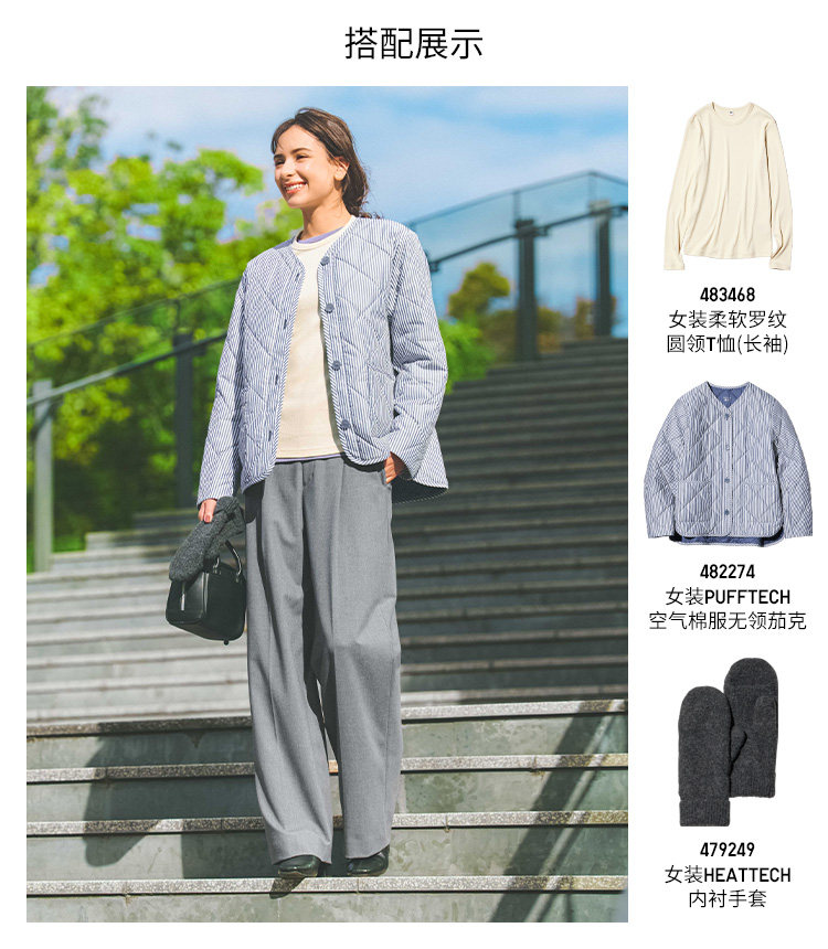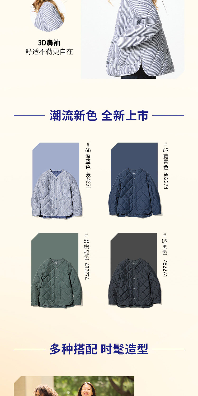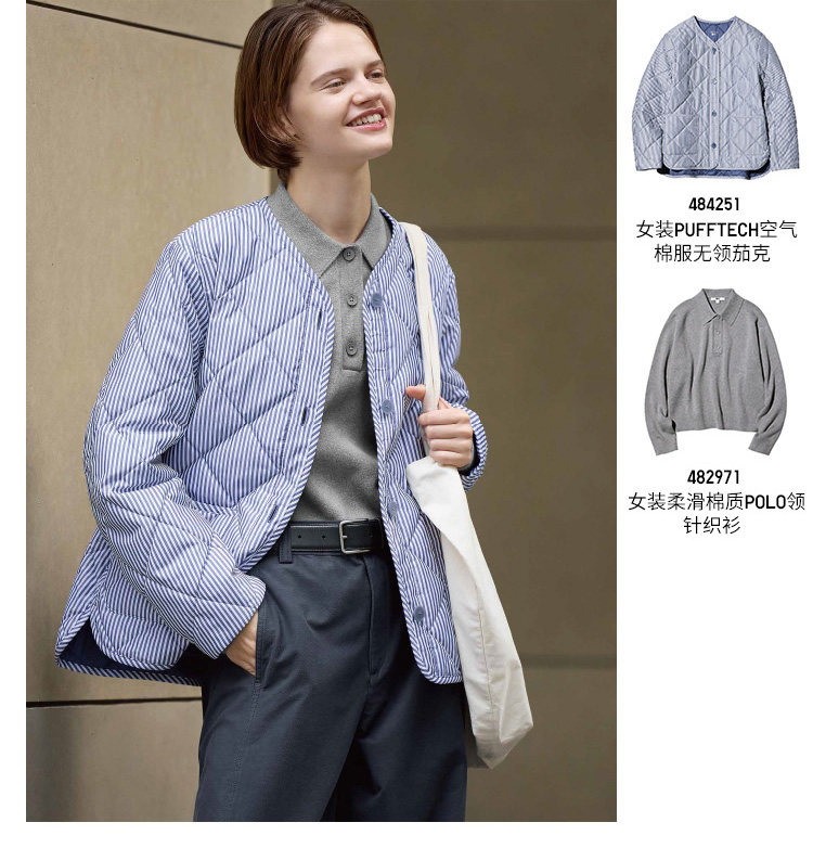Uniqlo Women's Pufftech Air Cotton Collarless Jacket/Coat 482274 484251