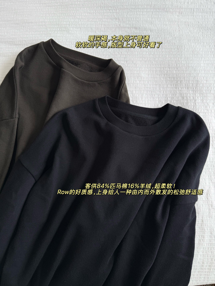 84pima匹马棉和16cashmere羊绒,超柔,混纺的羊绒是15.5微米(非常ding),连螺纹、袖口、下摆都是百分百纯绒,超级重磅!!
