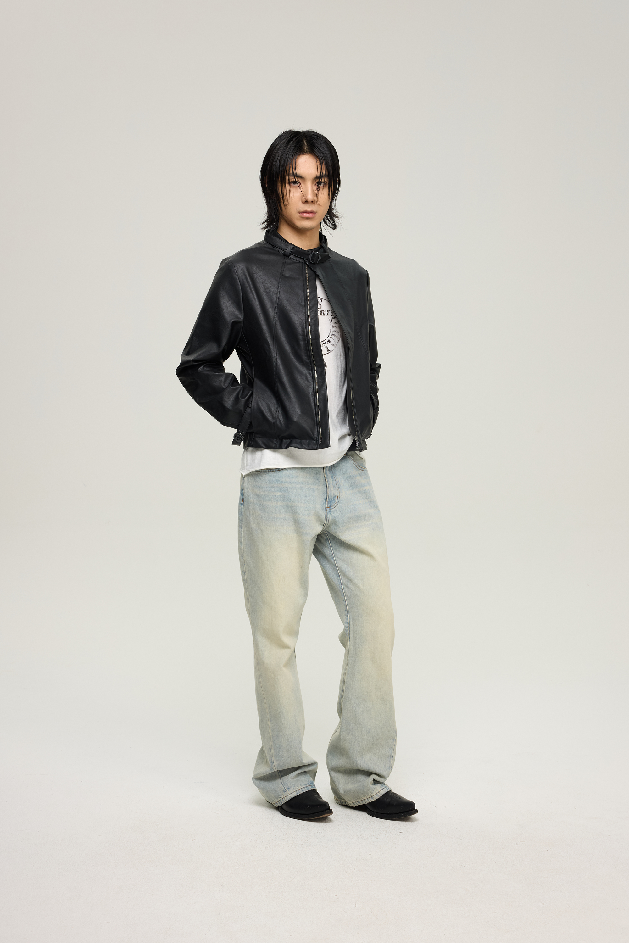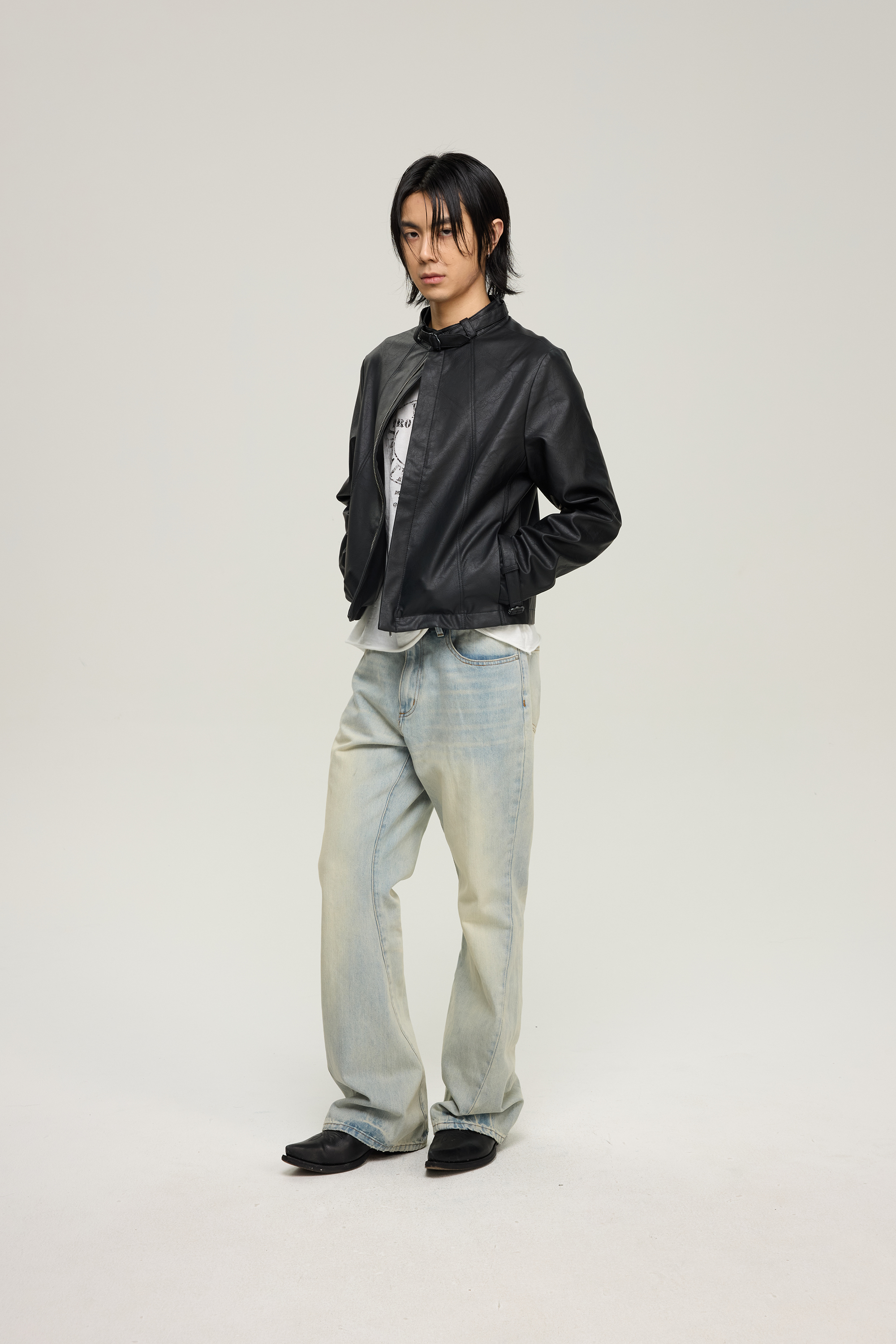 Insait 25Aw Knights Vintage Leather Jacket Short Eco-Friendly Leather Jacket