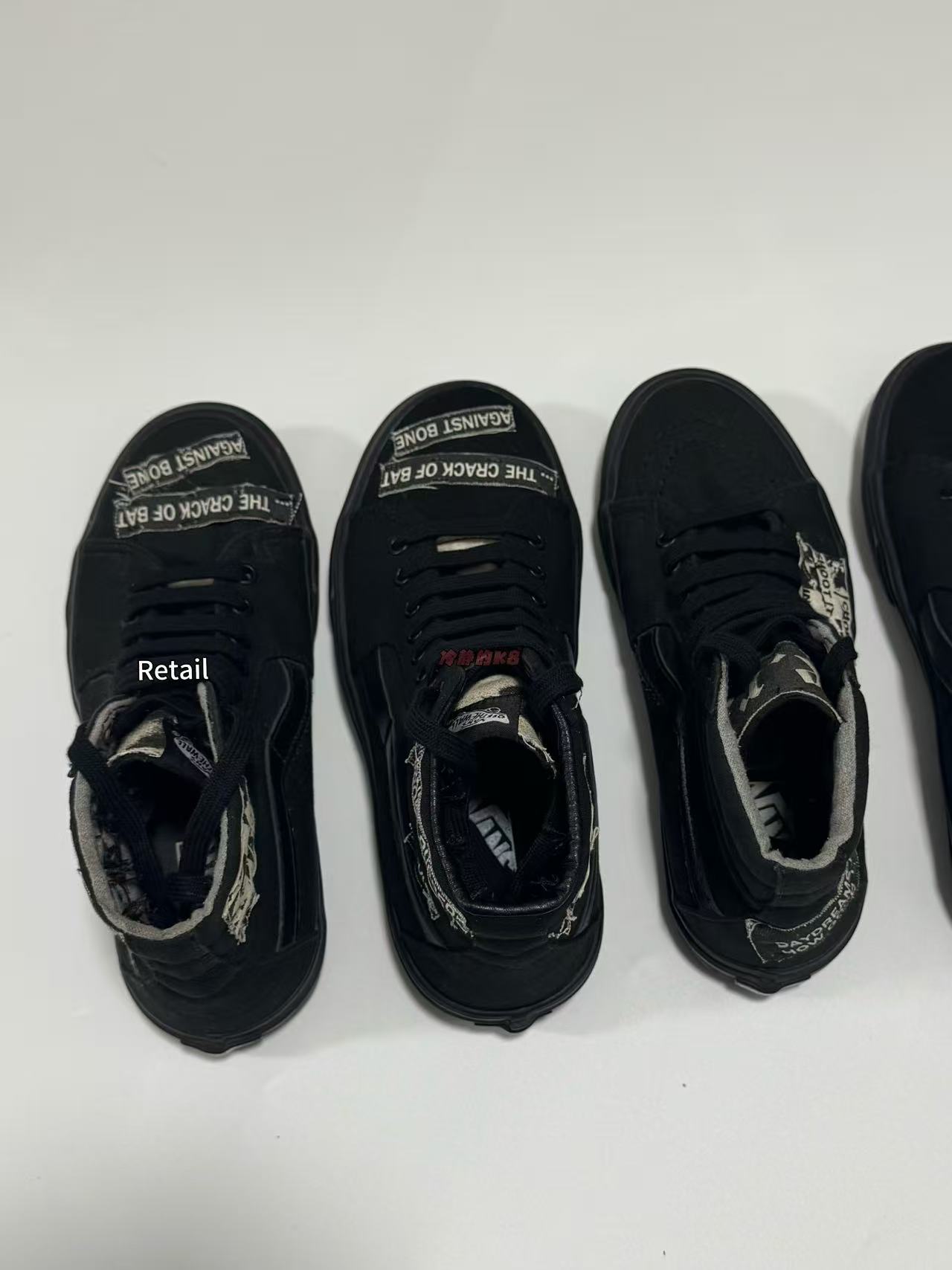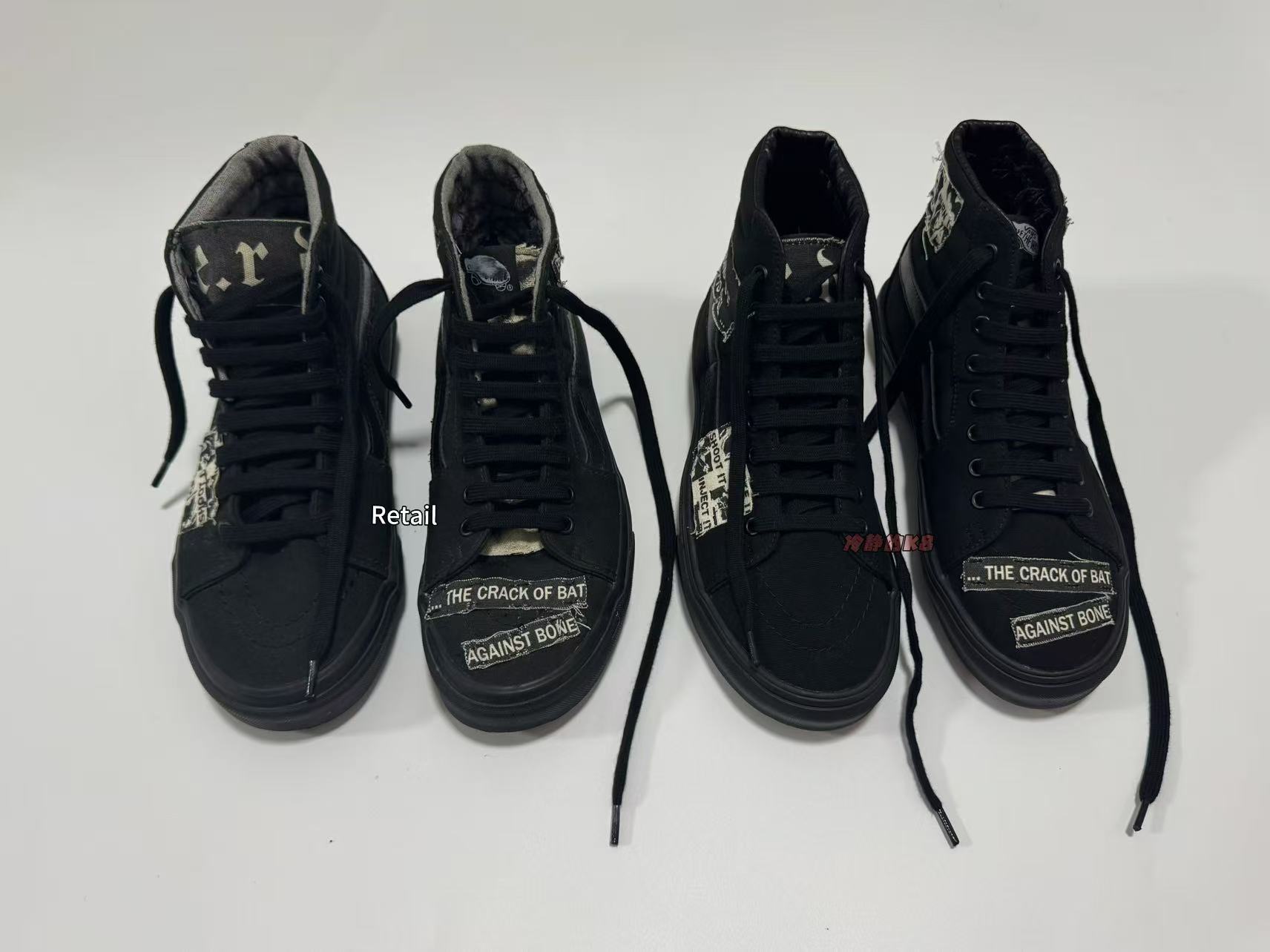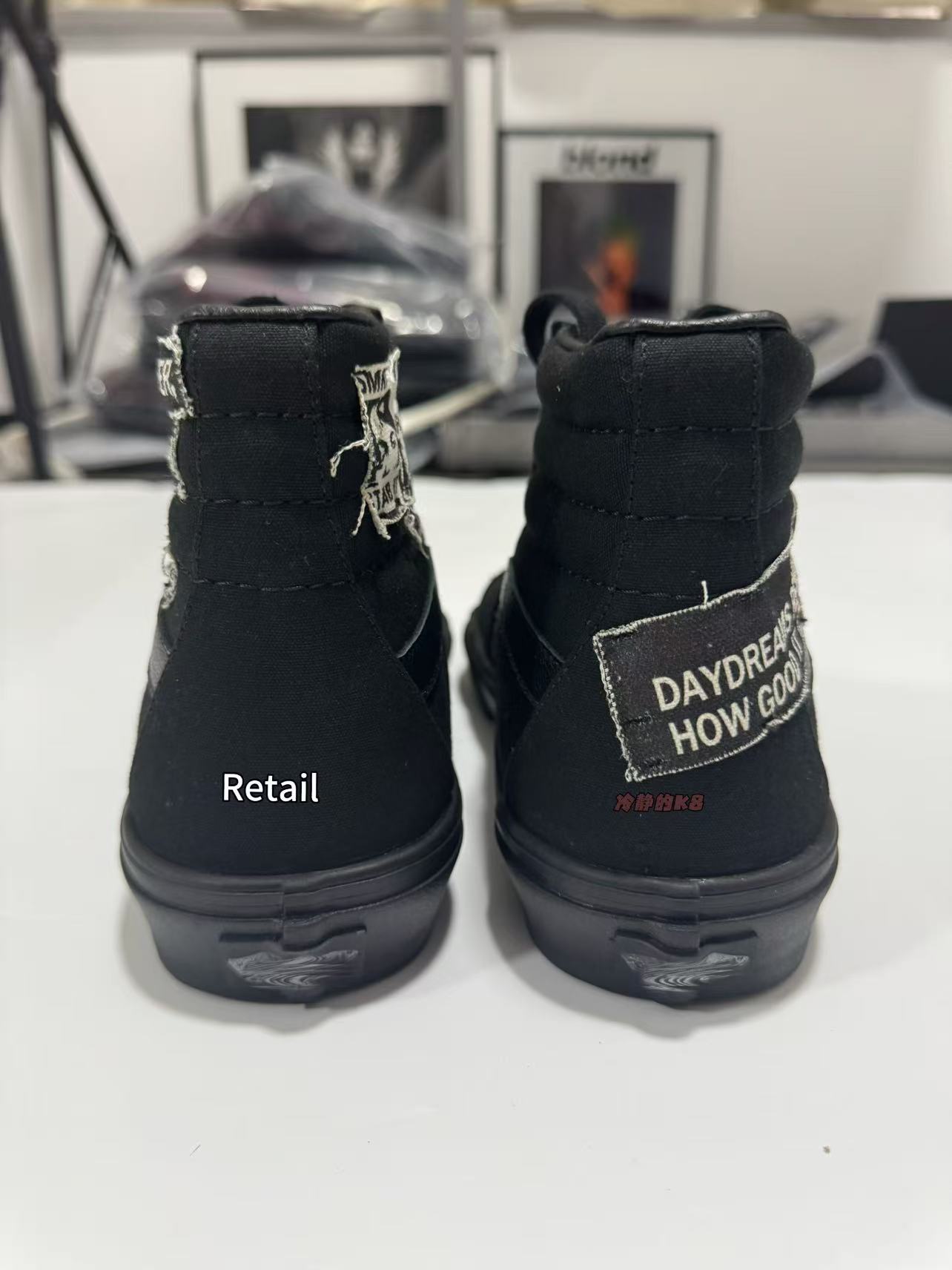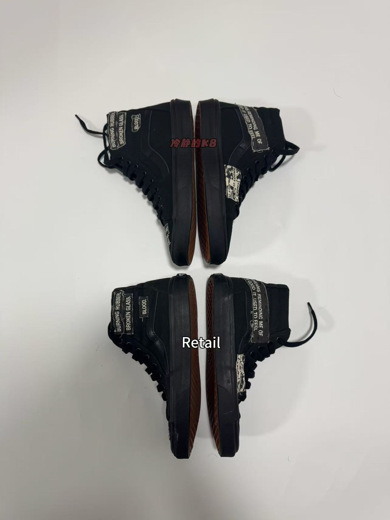 采用早期标志性厌世烟女和梵文logo标语贴布于鞋舌鞋身