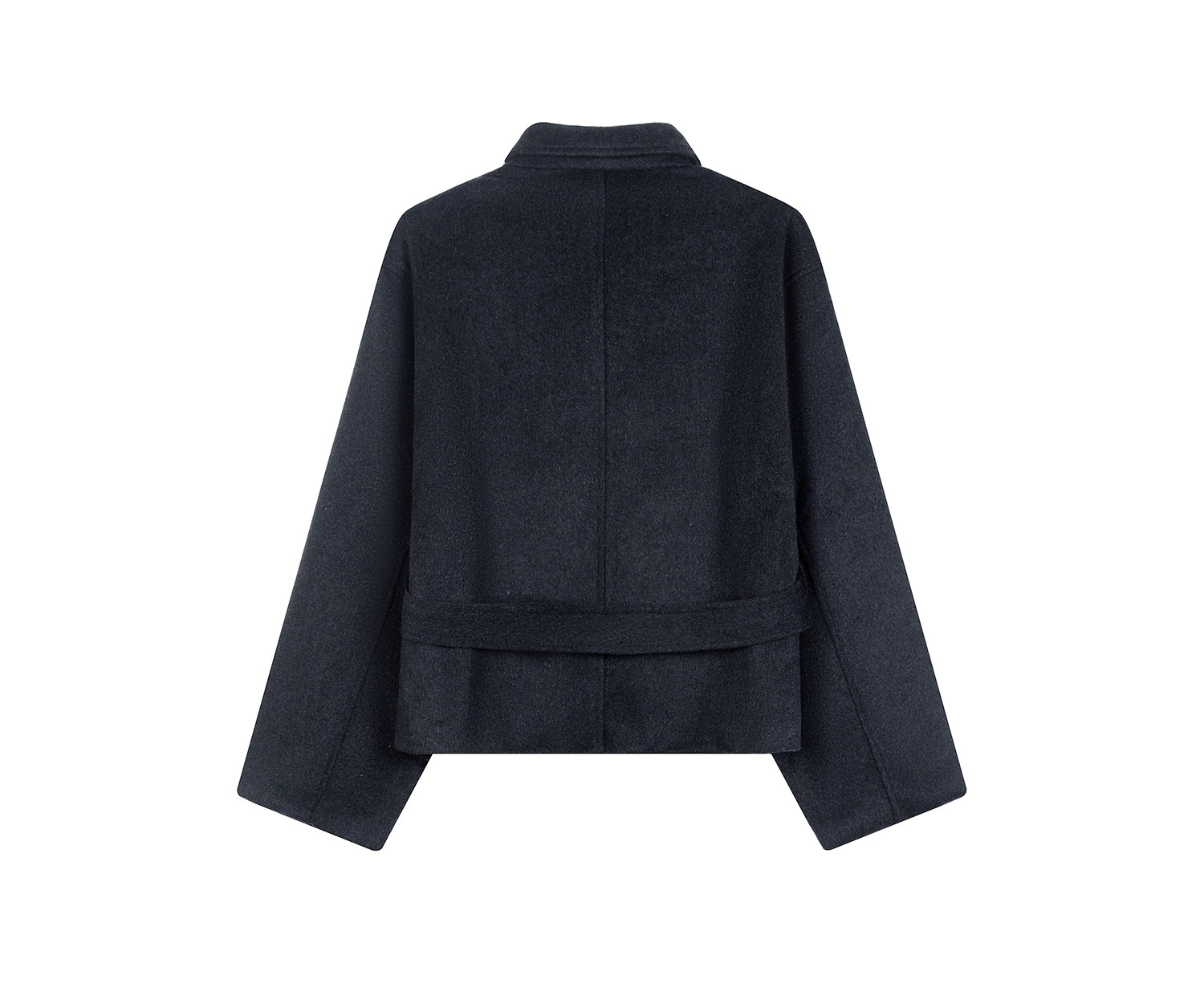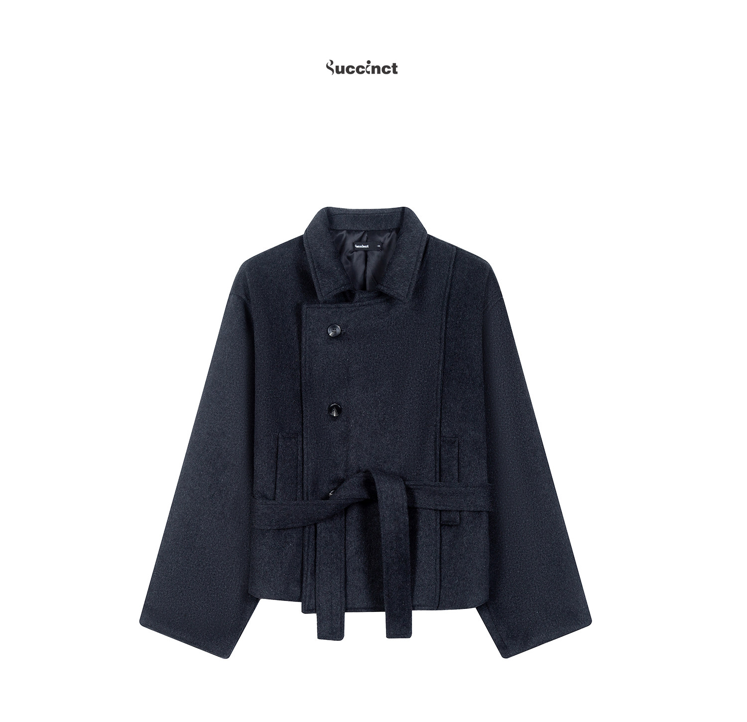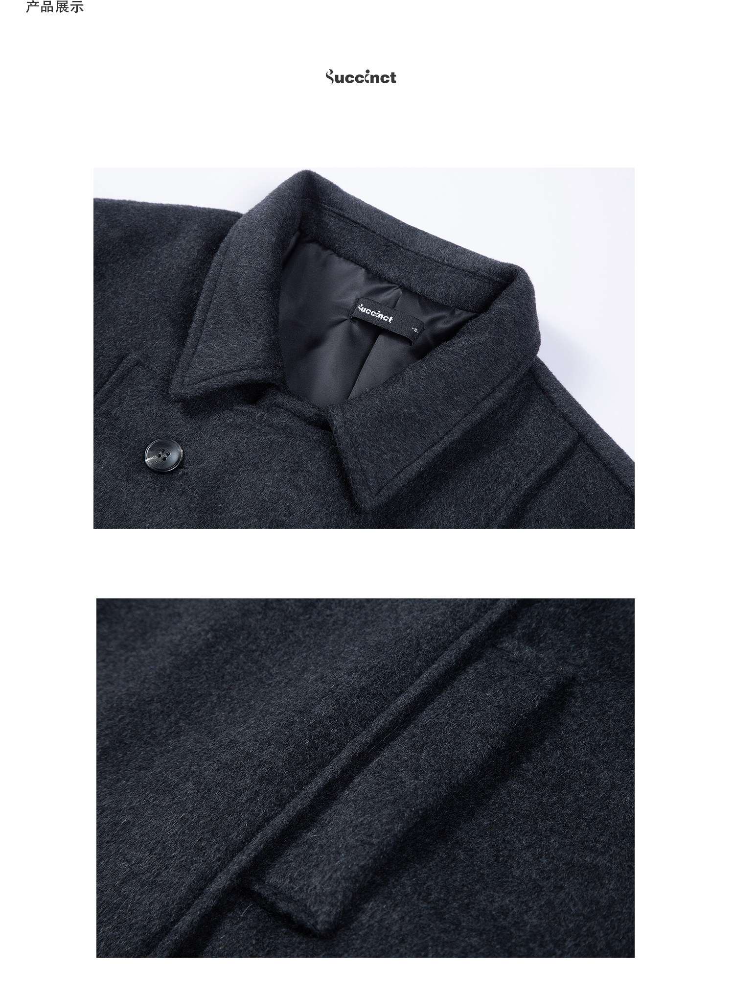 Succinct Wool Cocoon-Shaped Double-Breasted Woolen Mid-Length Jacket with Lapel, Thickened for Autumn and Winter