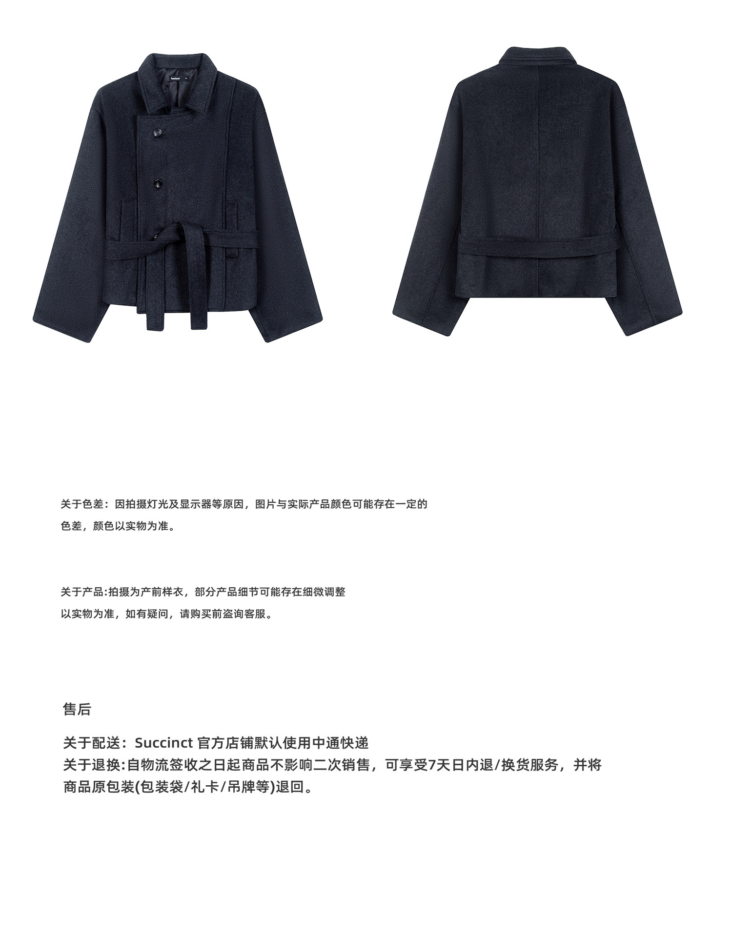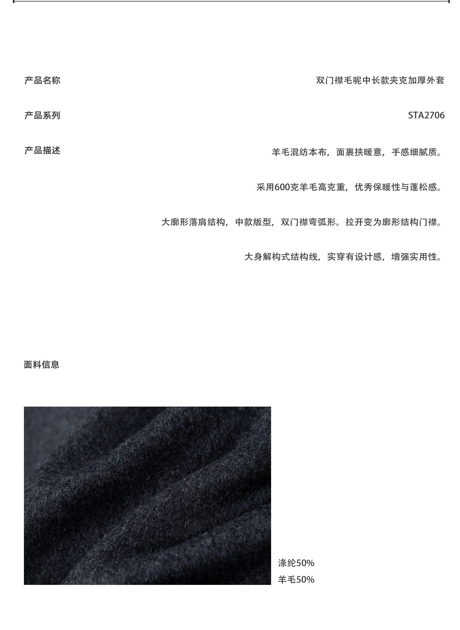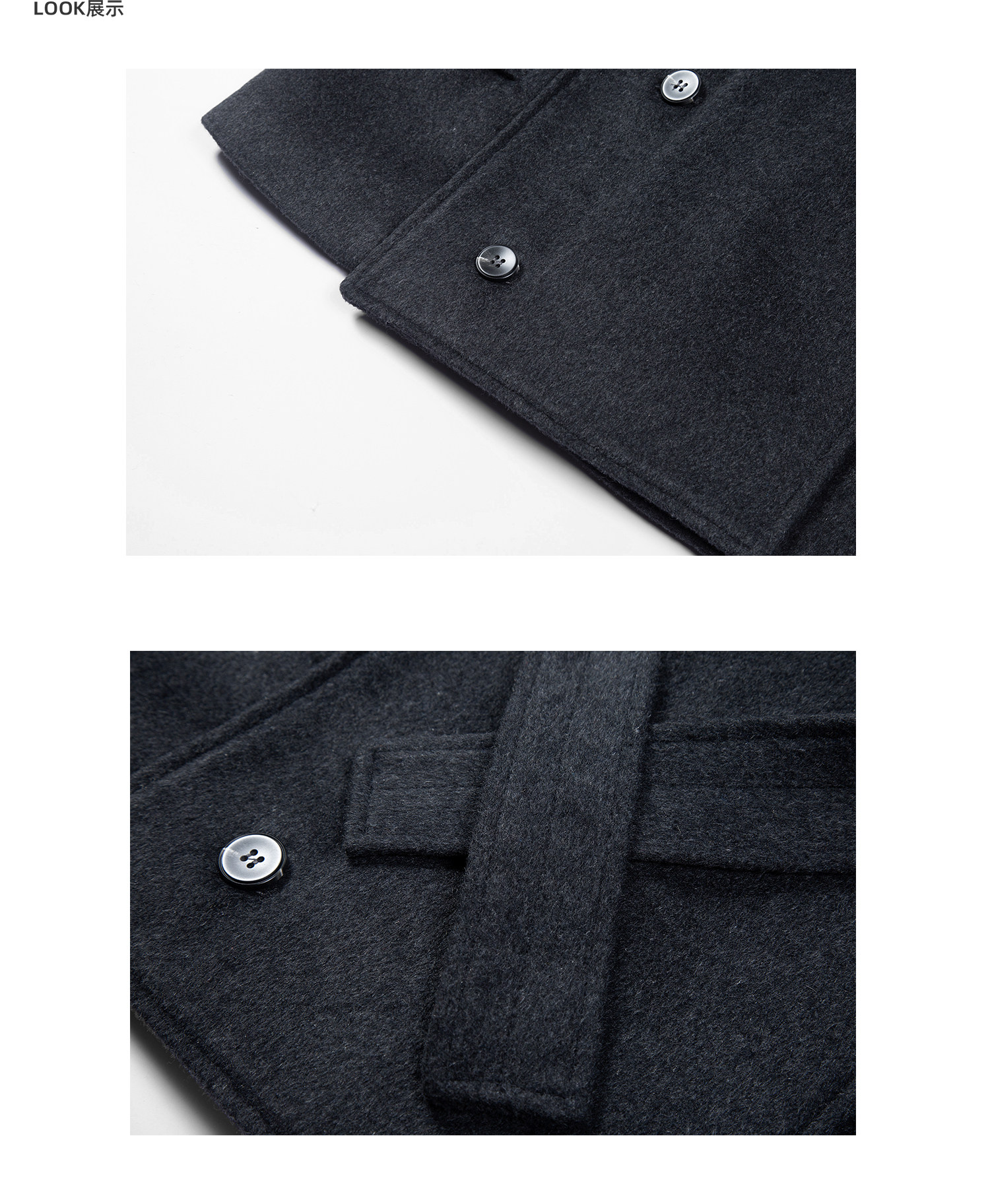 Succinct Wool Cocoon-Shaped Double-Breasted Woolen Mid-Length Jacket with Lapel, Thickened for Autumn and Winter