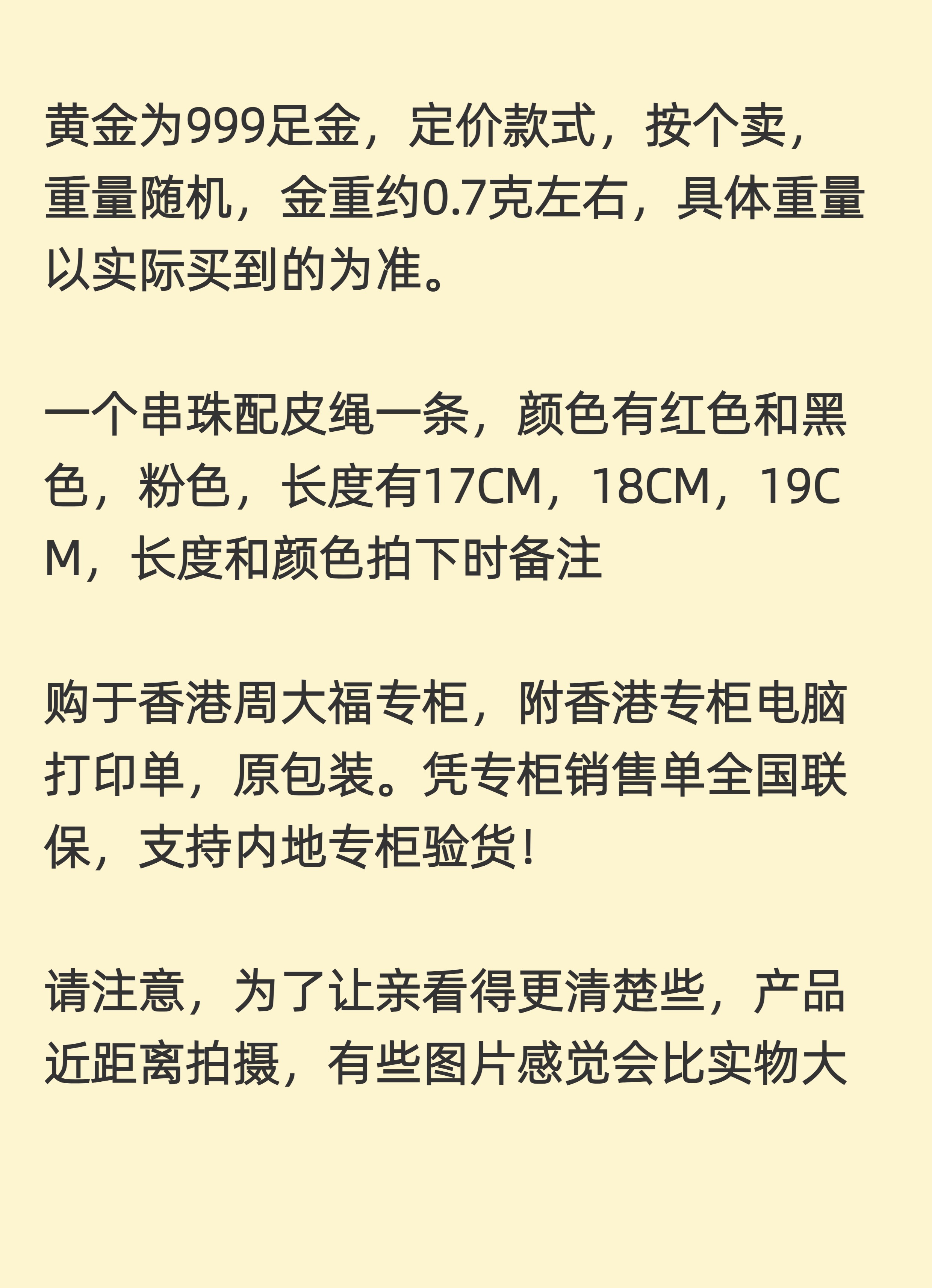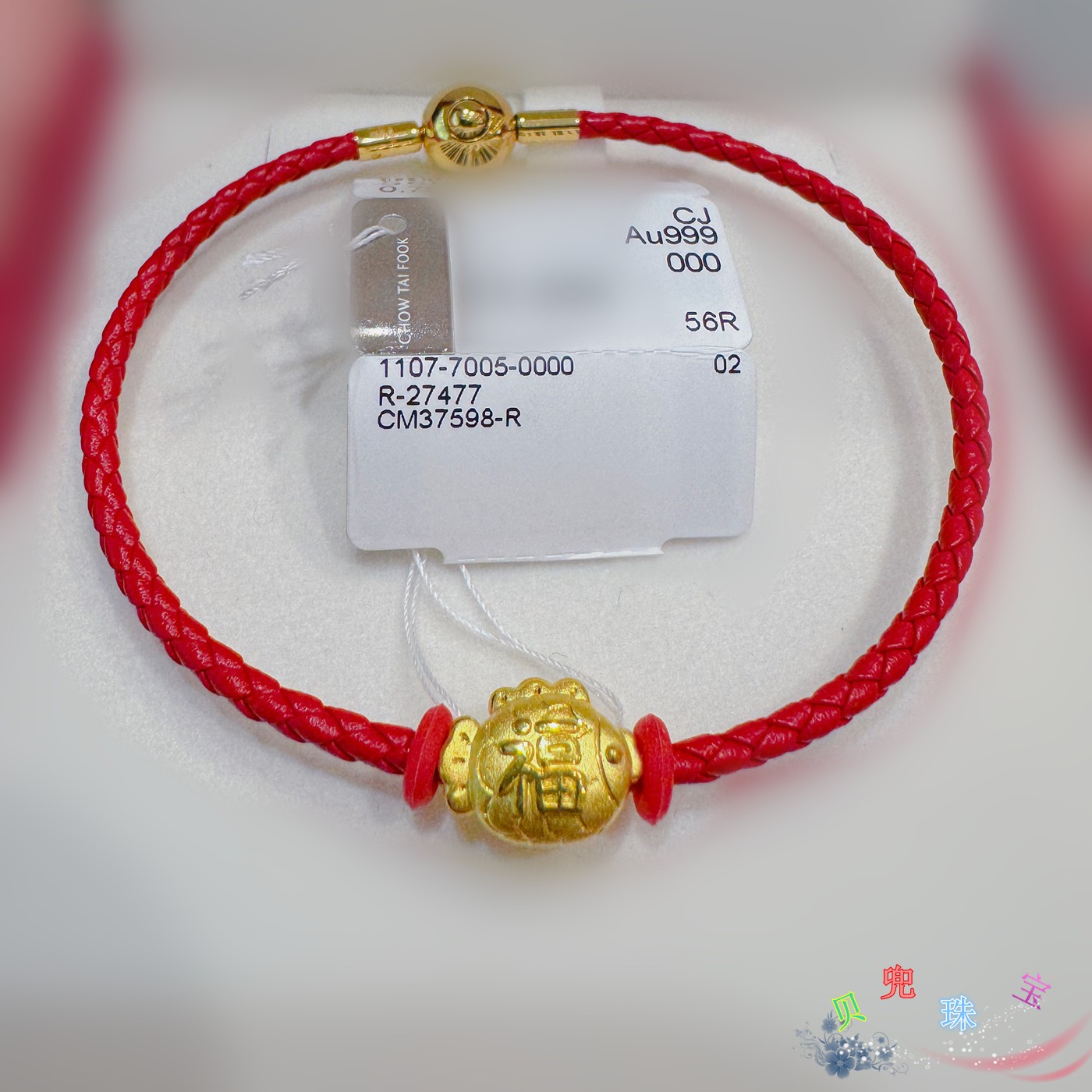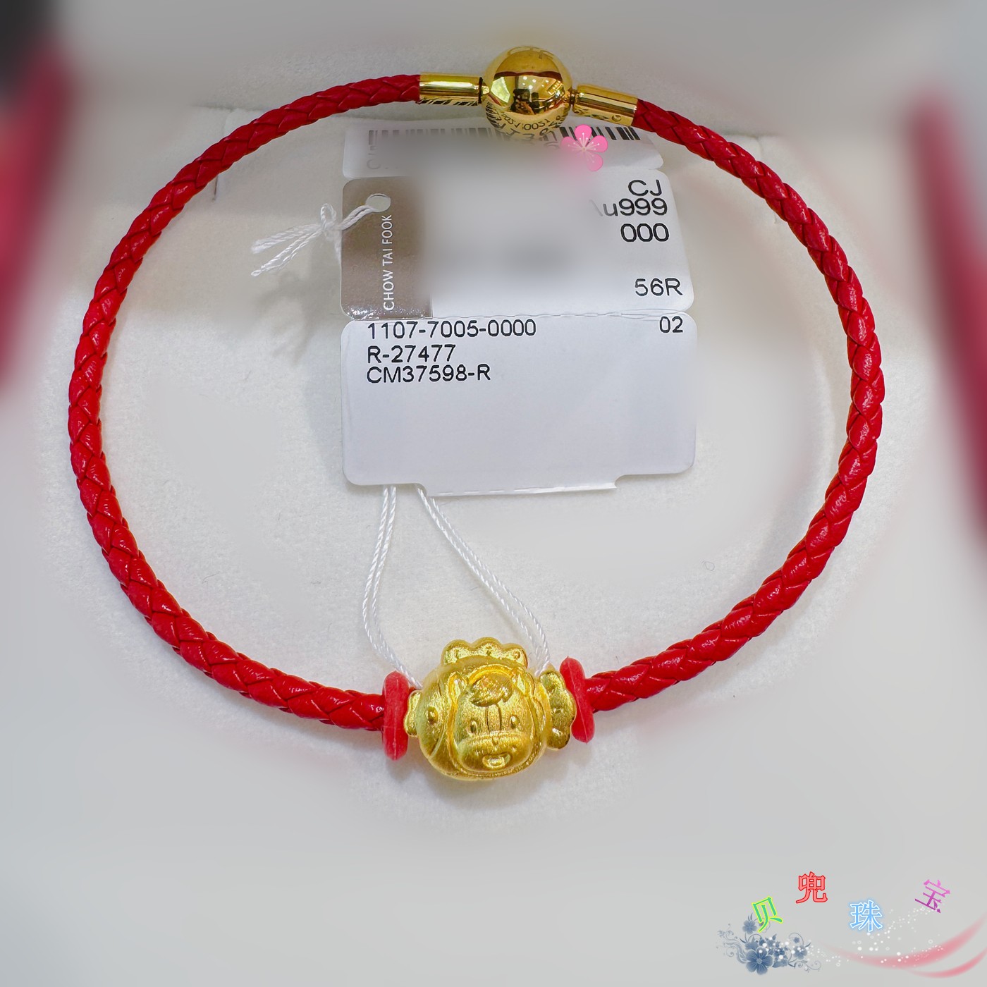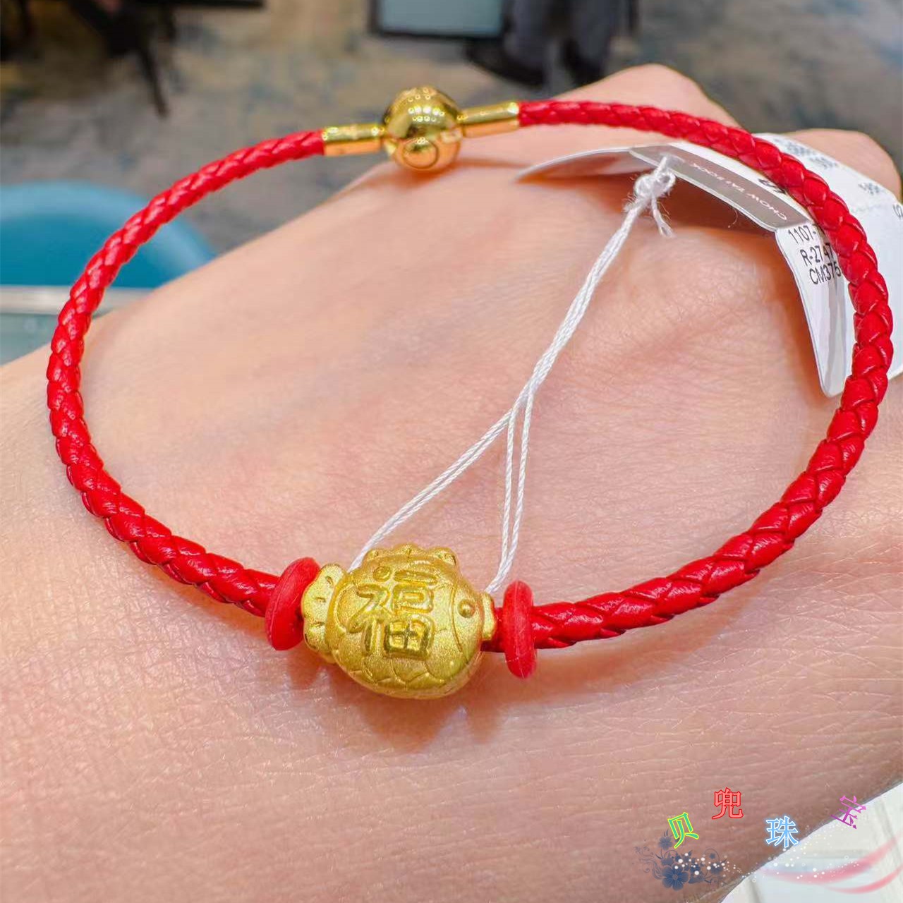 Hong Kong Chow Tai Fook Counter Authentic 999 Gold Carp Zodiac Horse Gold Transfer Beads Beaded Leather Rope Bracelet