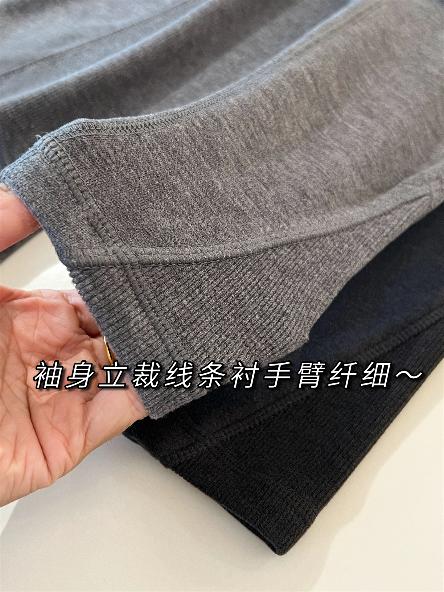二本针锁边!做工细致利落,贴合整体身形不紧绷!