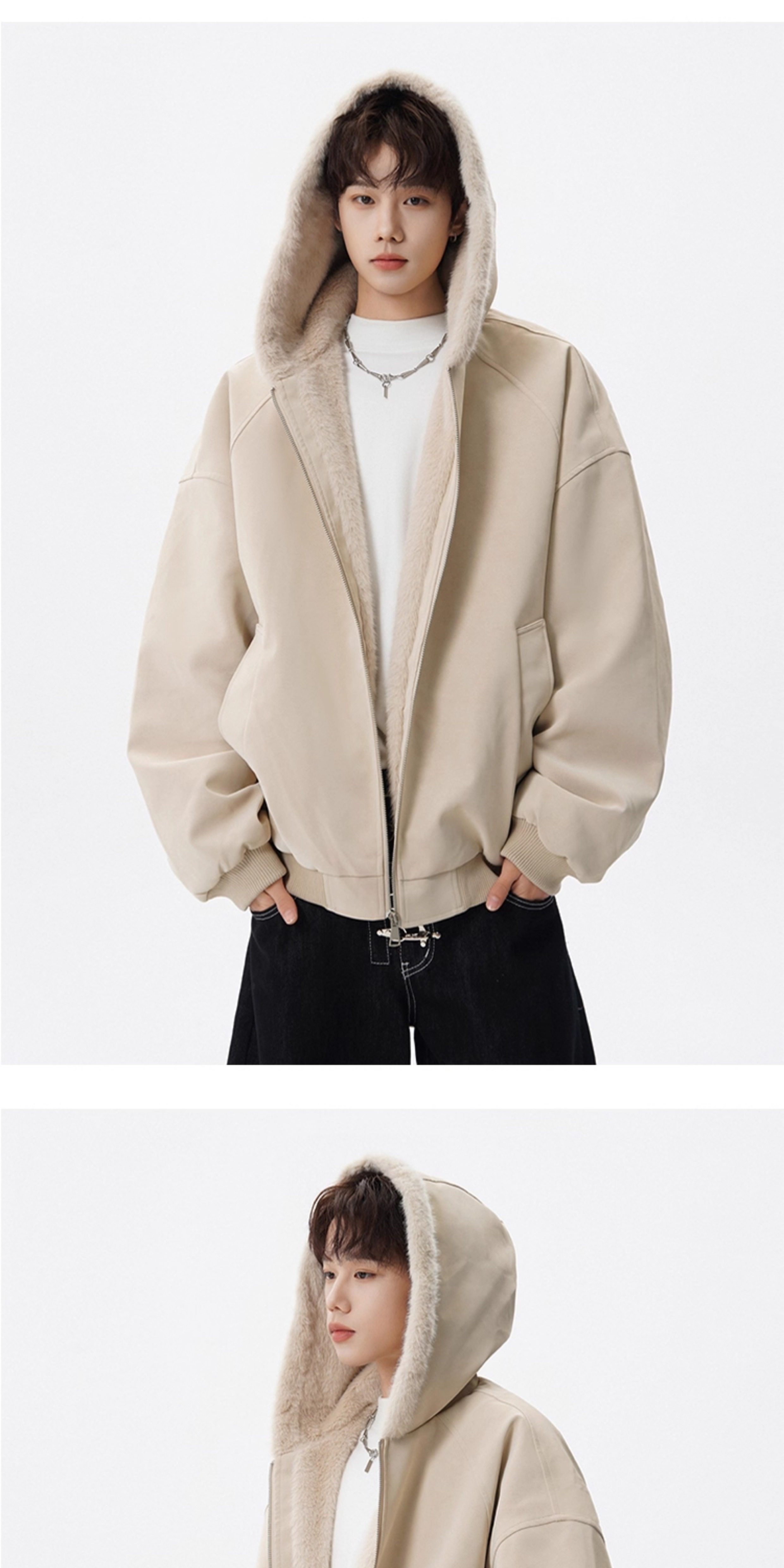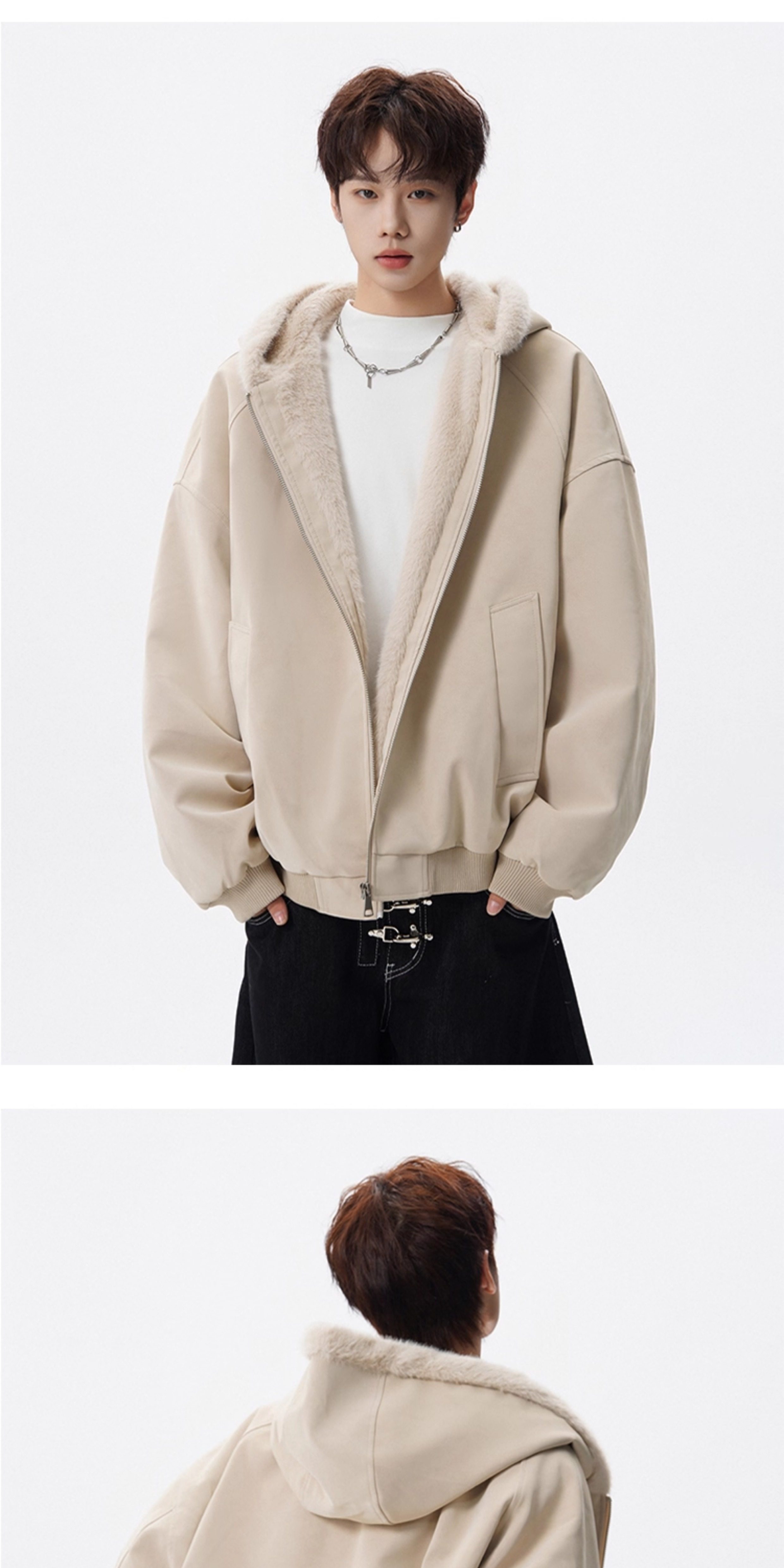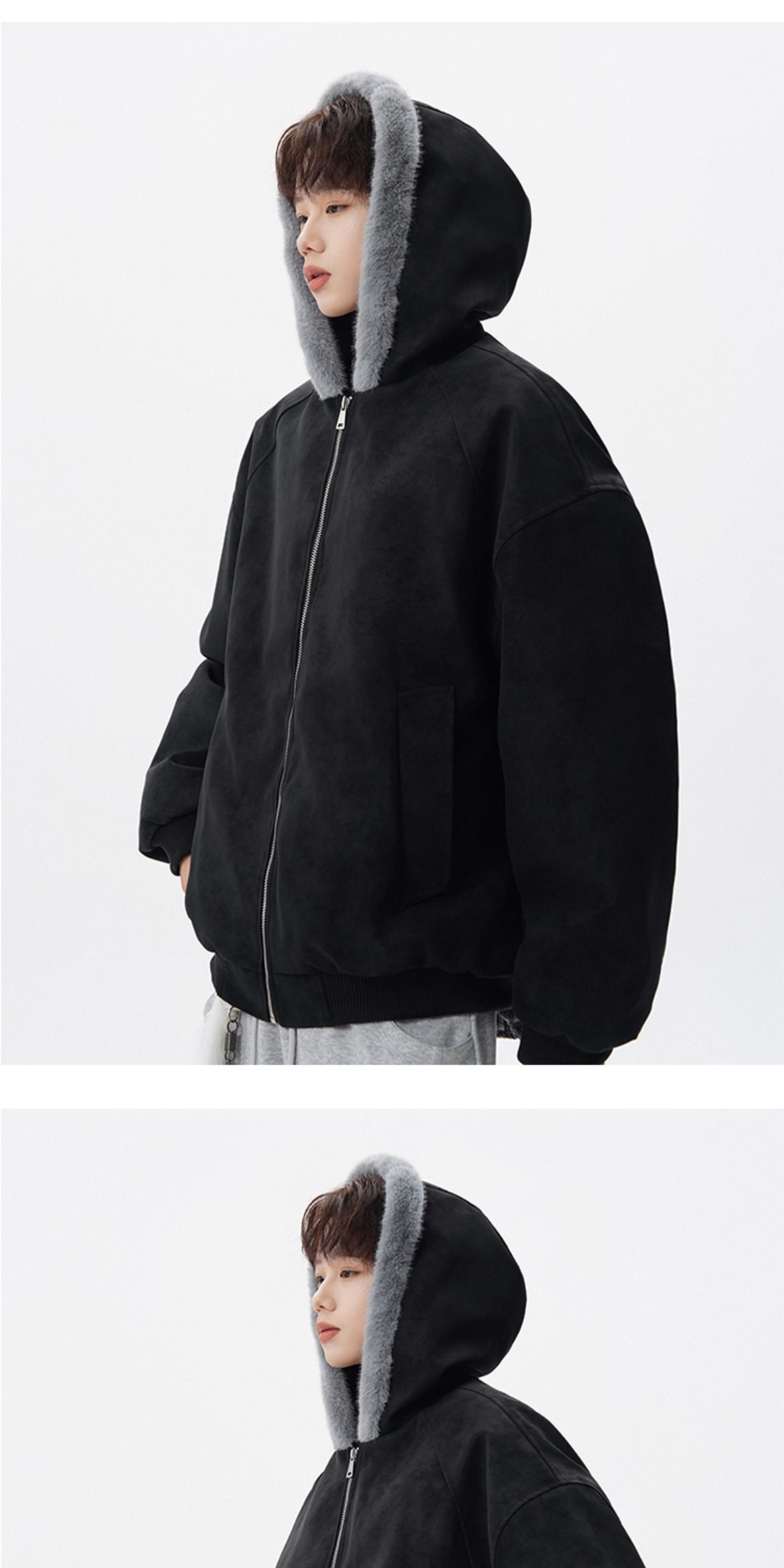 American-Style Mountain Carving Fur Collar Cotton Coat for Men, Winter Trendy Brand Deconstructed Thickened Hooded Cotton Jacket, High Street Warm Couple's Leather Jacket