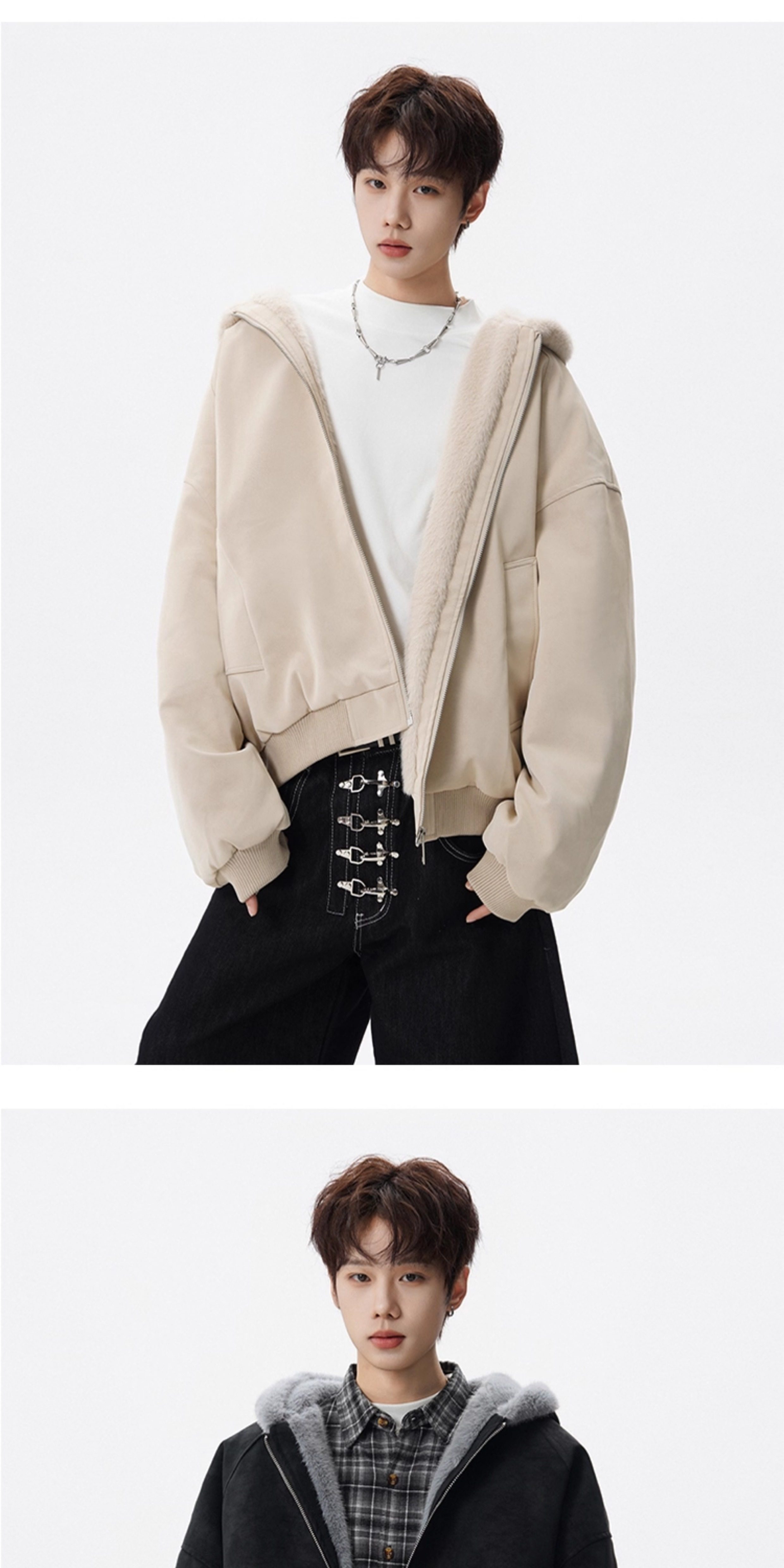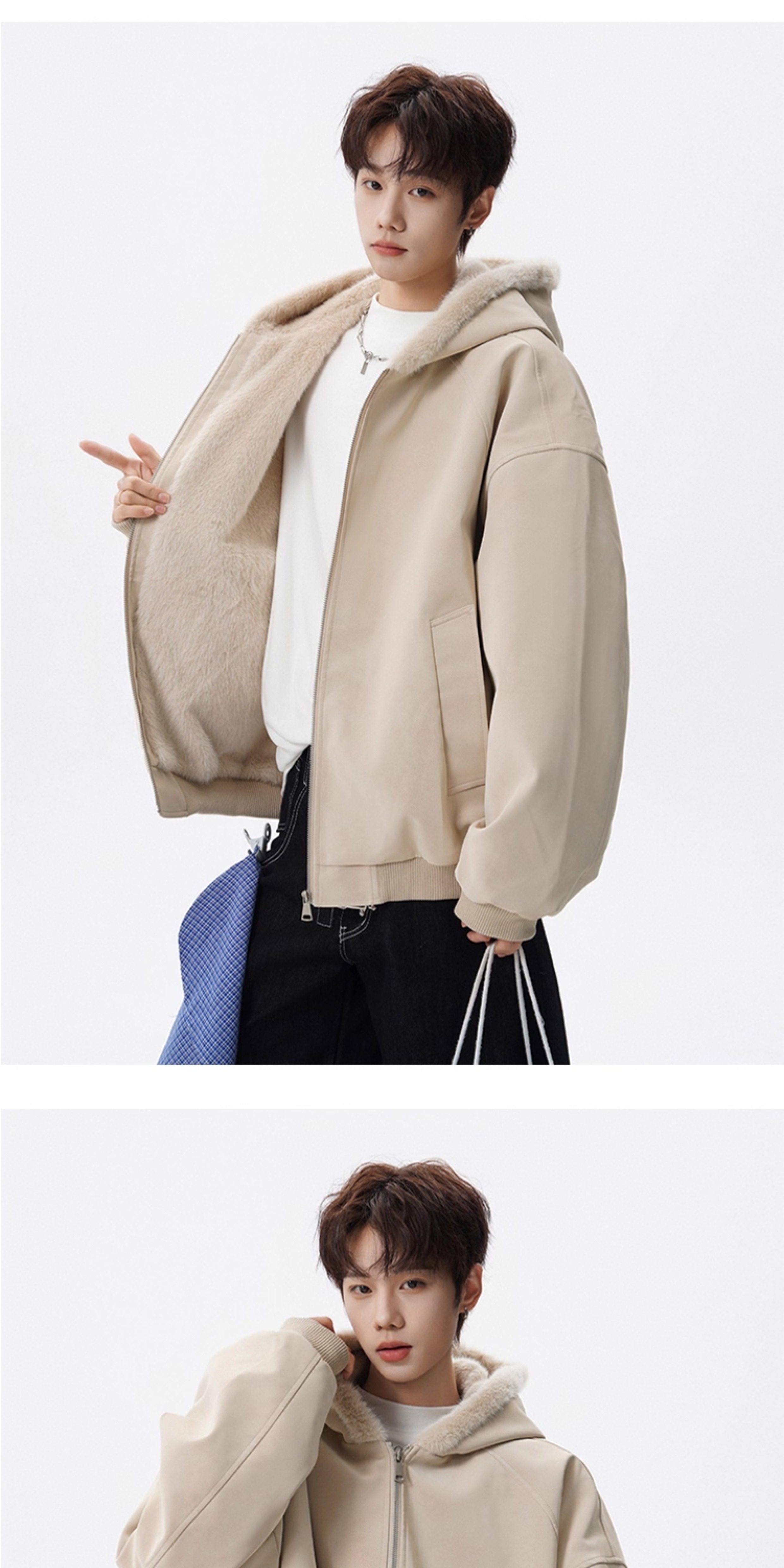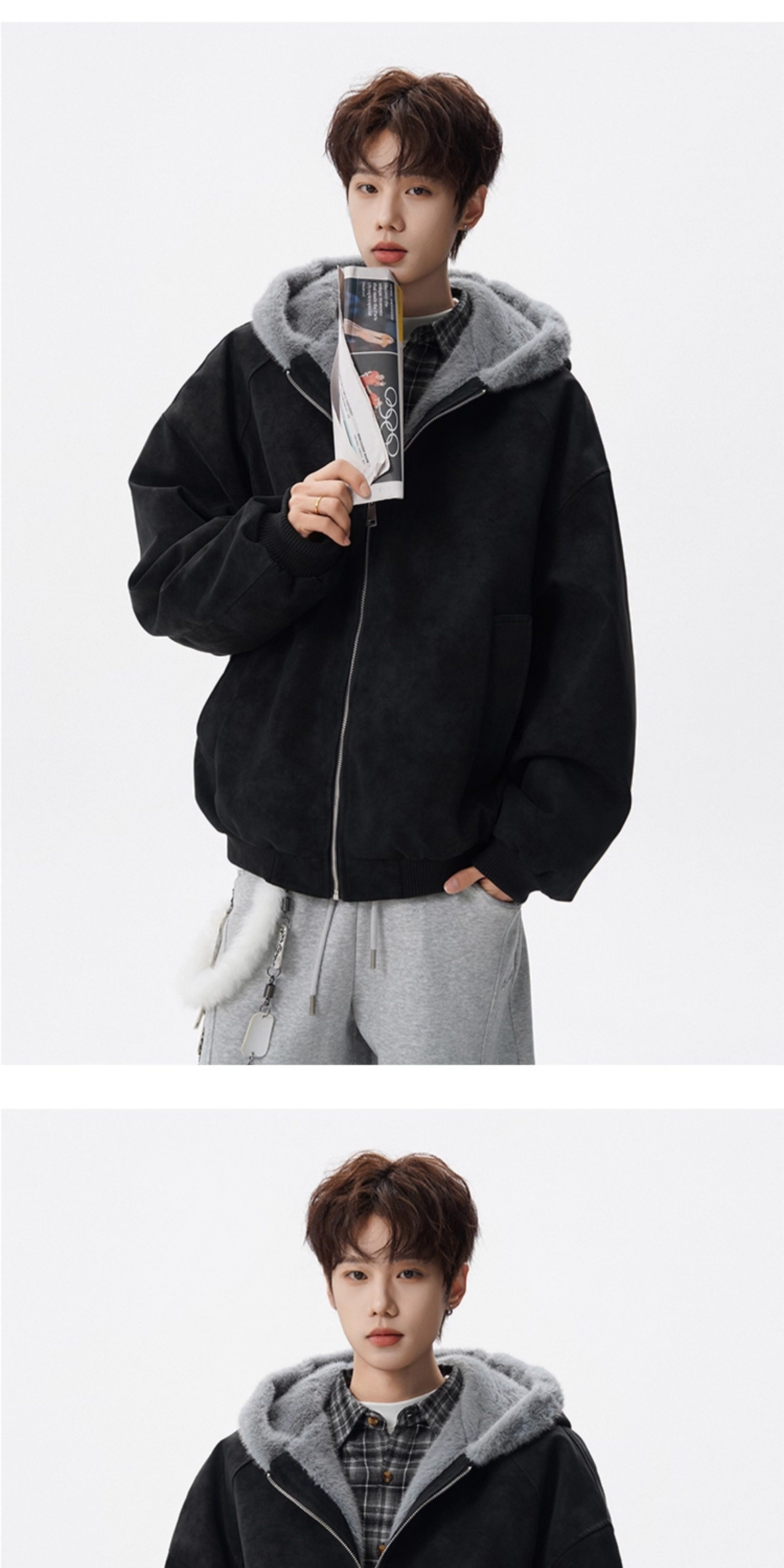 American-Style Mountain Carving Fur Collar Cotton Coat for Men, Winter Trendy Brand Deconstructed Thickened Hooded Cotton Jacket, High Street Warm Couple's Leather Jacket