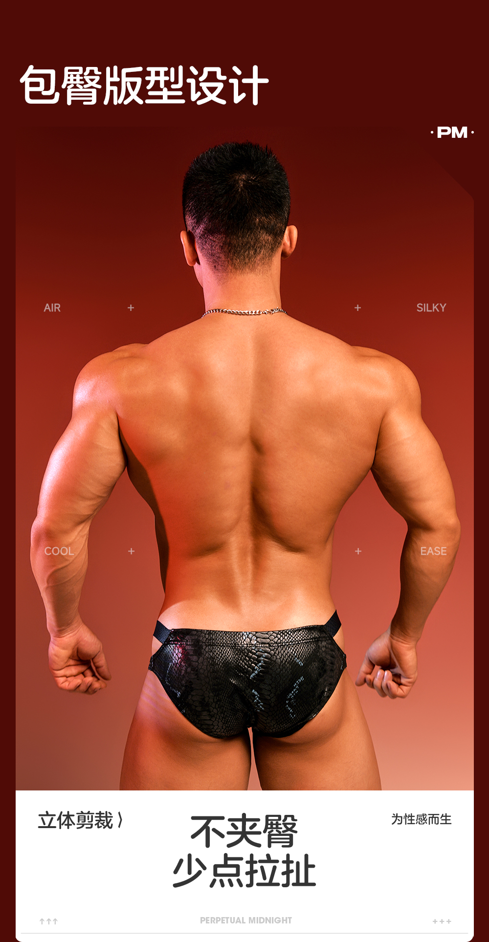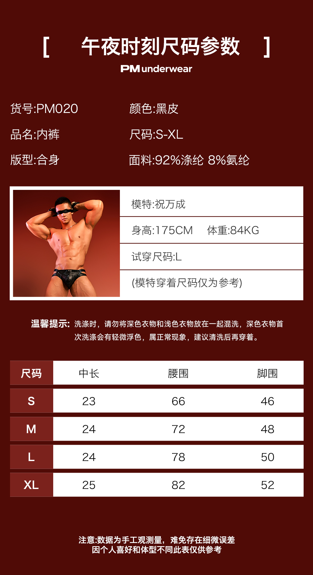 Pm Midnight Double Belt Hollow Out Underwear Men's Imitation Snakeskin Sexy Trendy Fashion Python Print Briefs